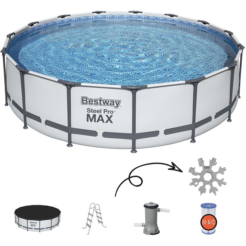 Piscina Bestway 56686 de estructura redonda, capacidad 14970 litros, largo 4,57m x ancho 4,57m, diámetro 4,57m