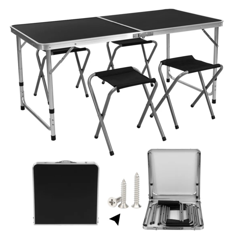 Mesa Plegable Tipo Portafolio 1.20 M Con 4 Sillas Portátiles-clavo