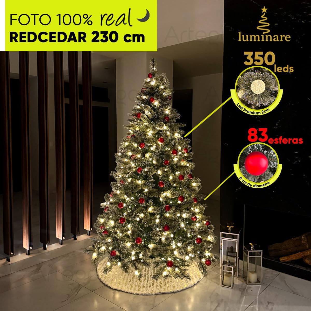 - Árbol cuenta con 350 LEDS PREMIUM (2cm diámetro) integradas. | 83 esferas de 8cm de diámetro integradas | Luces LED con 7 modos de iluminación de luz cálida y cable verde obscuro. | Puntas congeladas blancas y brillantes.
