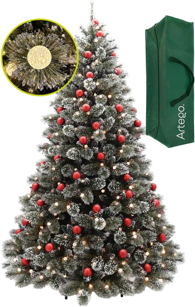 - Árbol ARTIFICIAL NEVADO con ramas premium PINE, PE y PVC. | Incluye Maleta de tela resistente para mejor almacenamiento. | Ancho de árbol de rama a rama en la parte más ancha: 150cm.