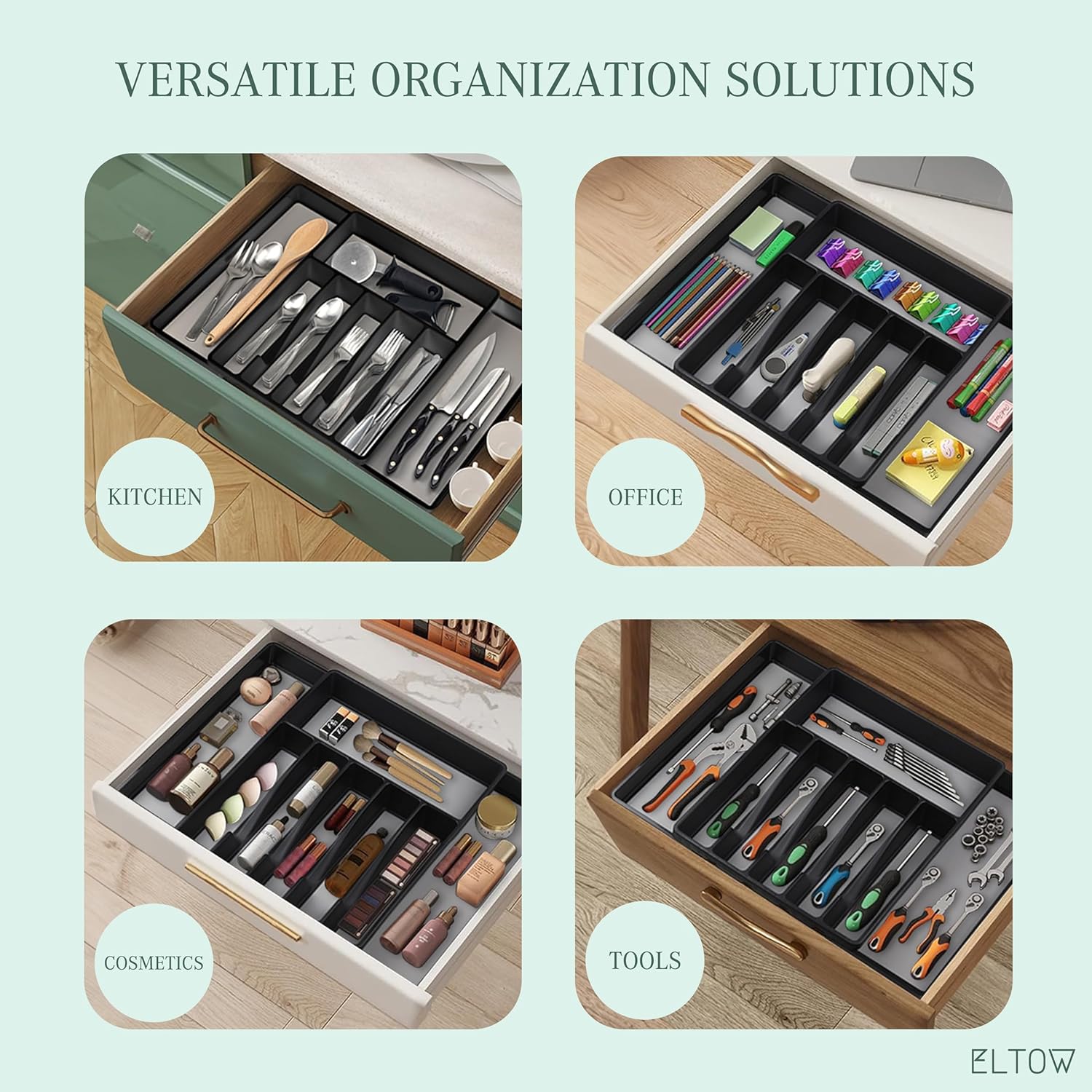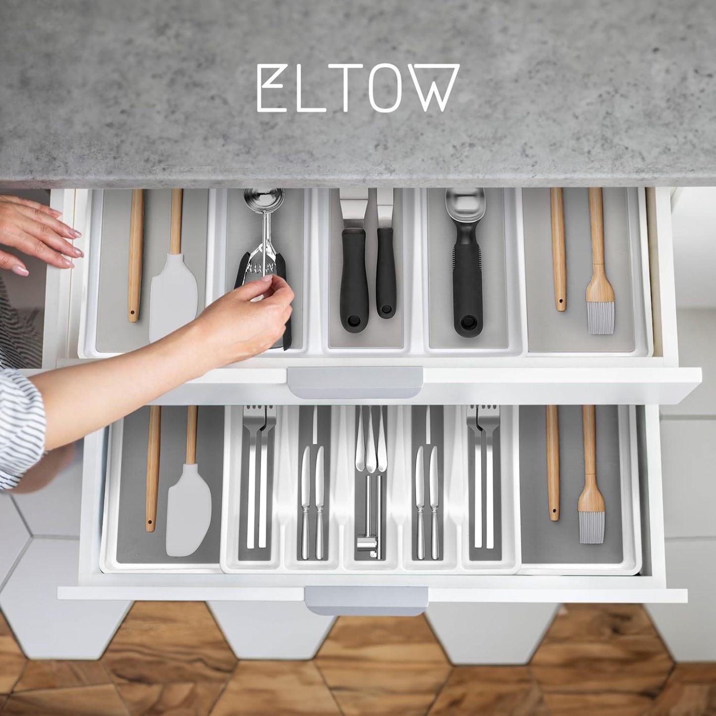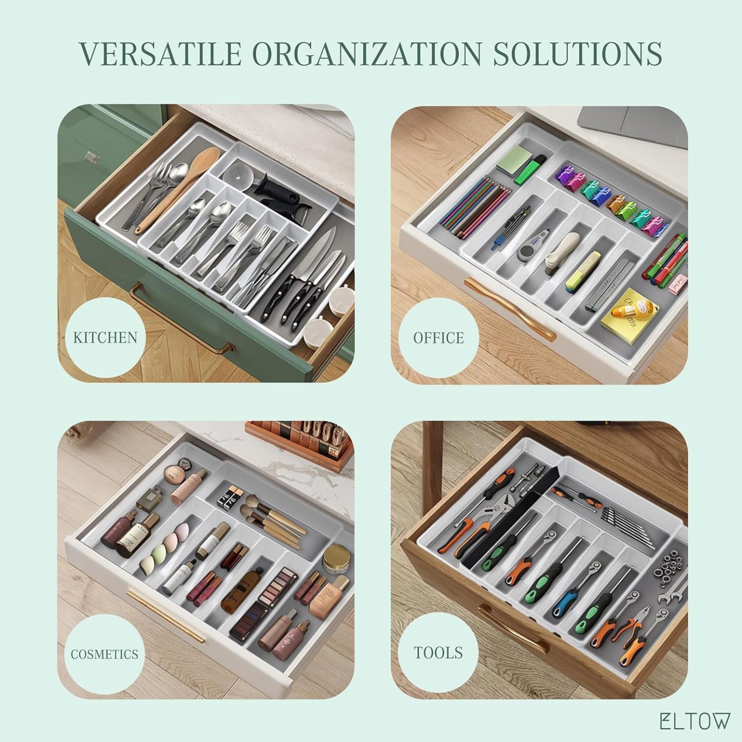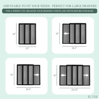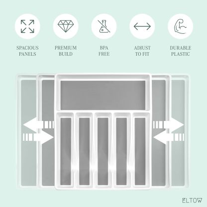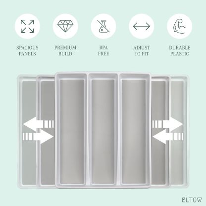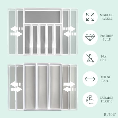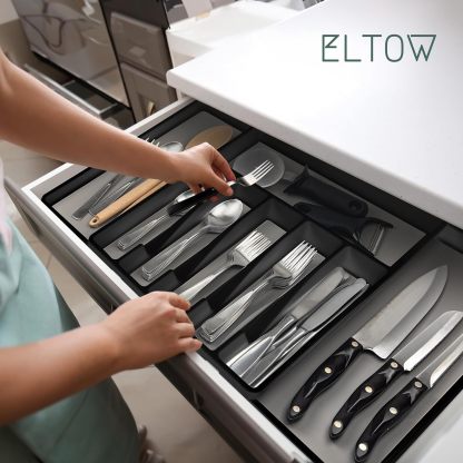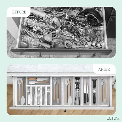 ELTOW - Juego de organizador de cajones y bandejas de utensilios expandibles, organizadores y almacenamiento de cajones de cocina, organización de cocina para utensilios, cubiertos, suministros de