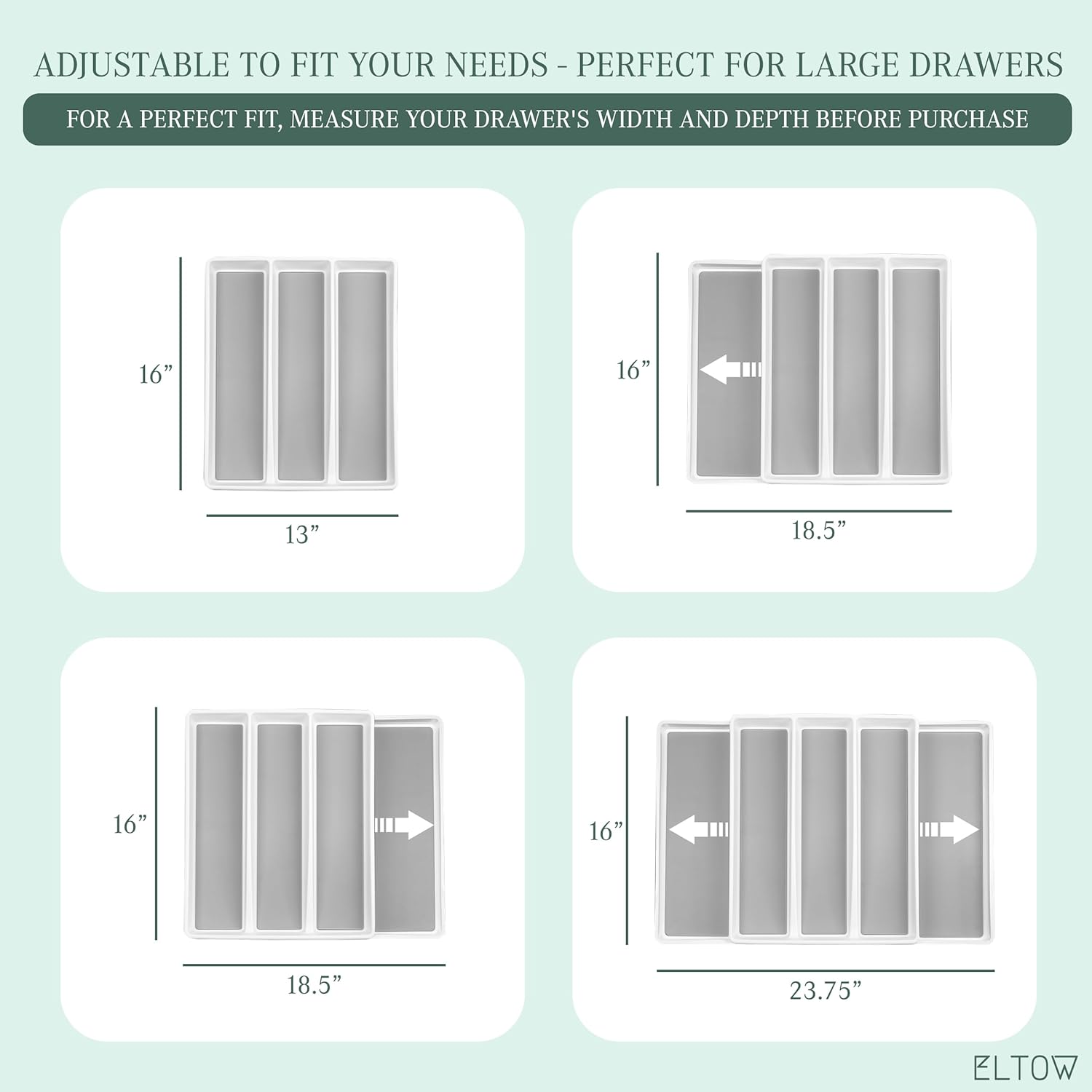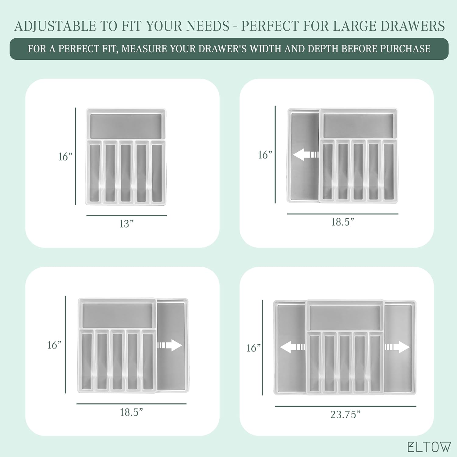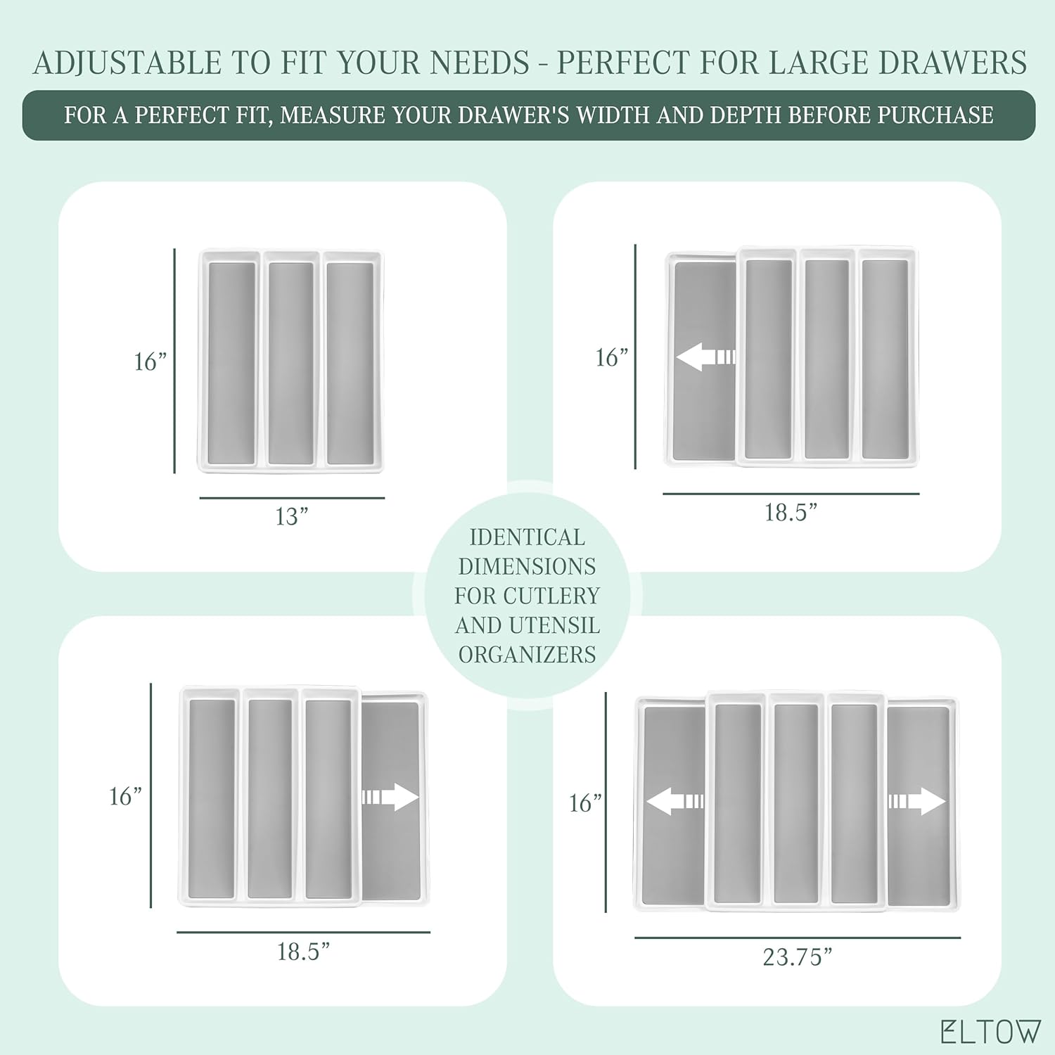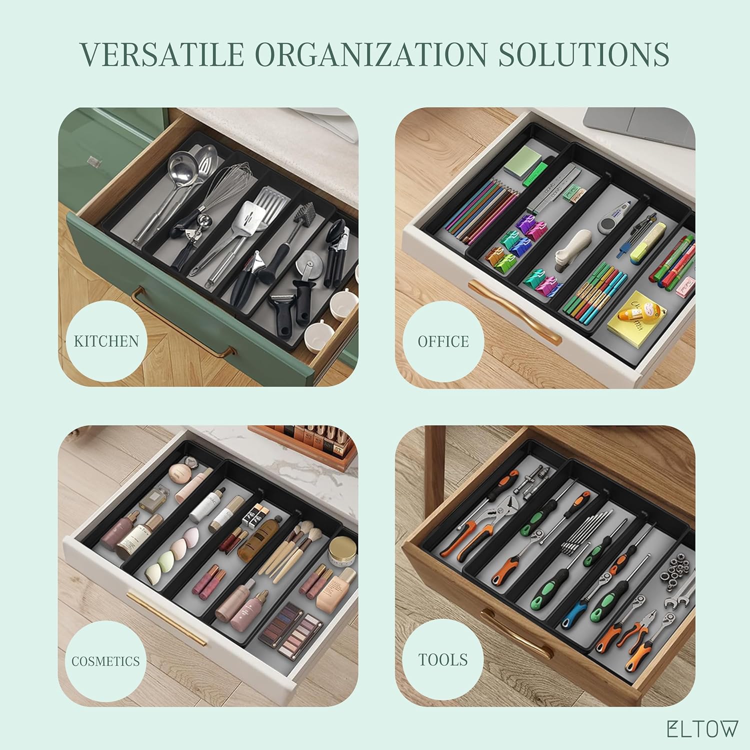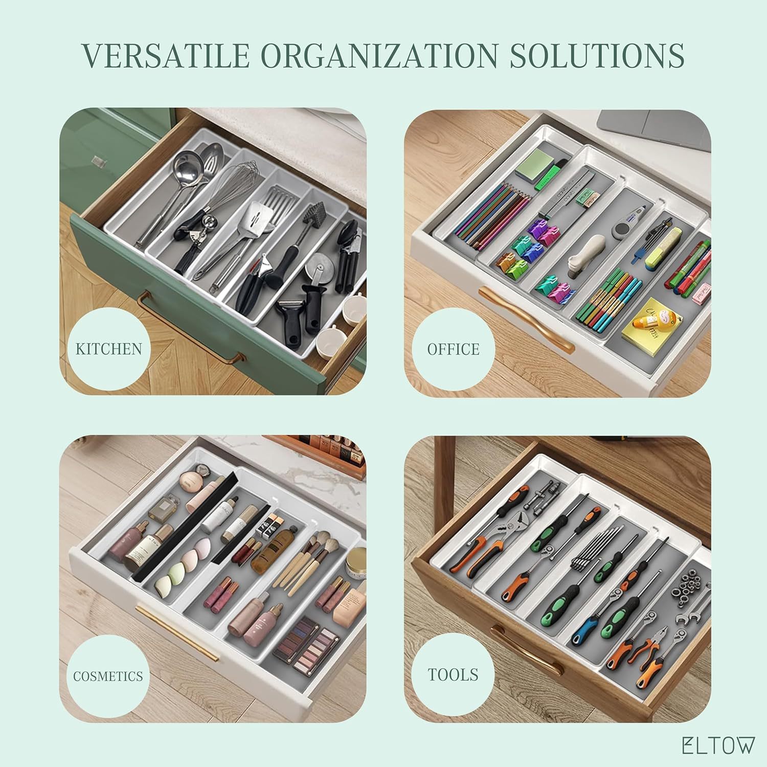ELTOW - Juego de organizador de cajones y bandejas de utensilios expandibles, organizadores y almacenamiento de cajones de cocina, organización de cocina para utensilios, cubiertos, suministros de