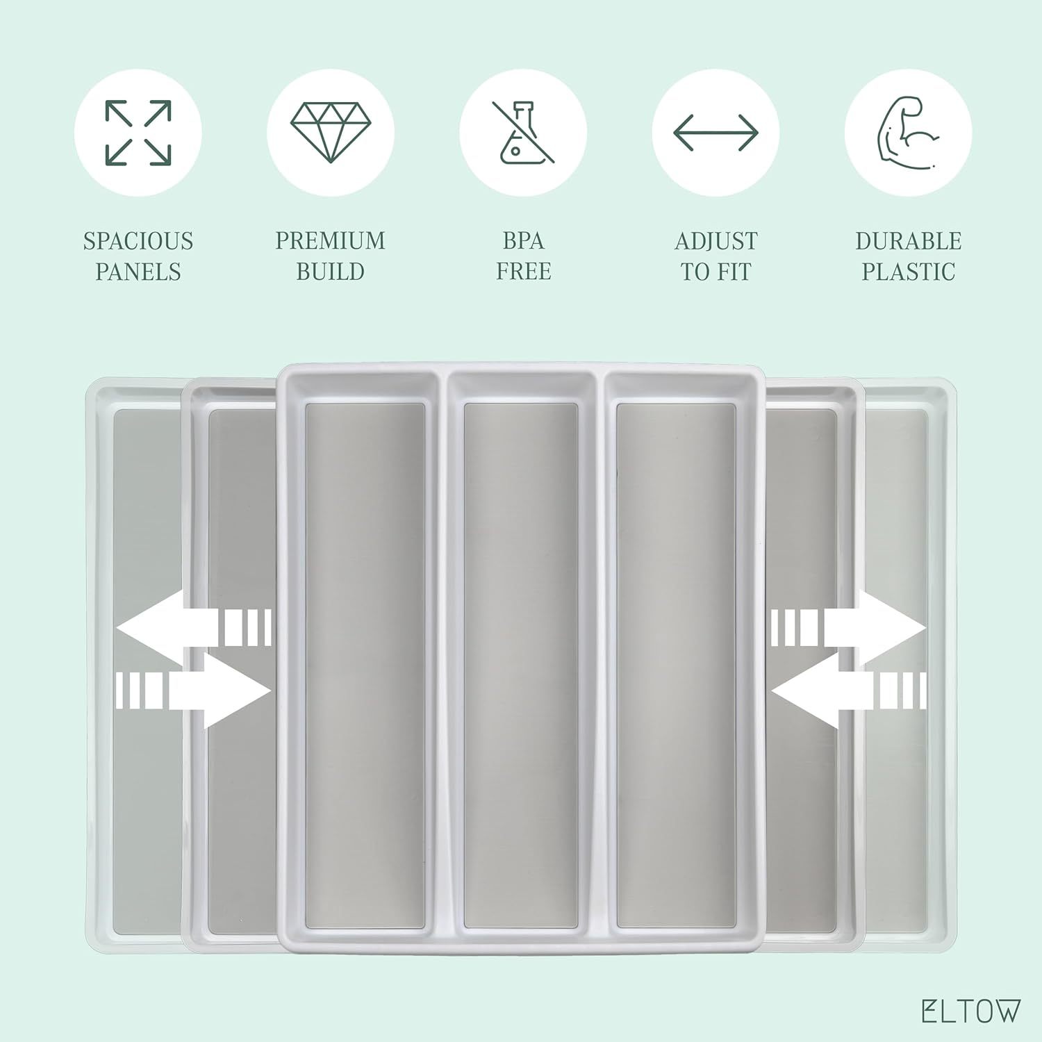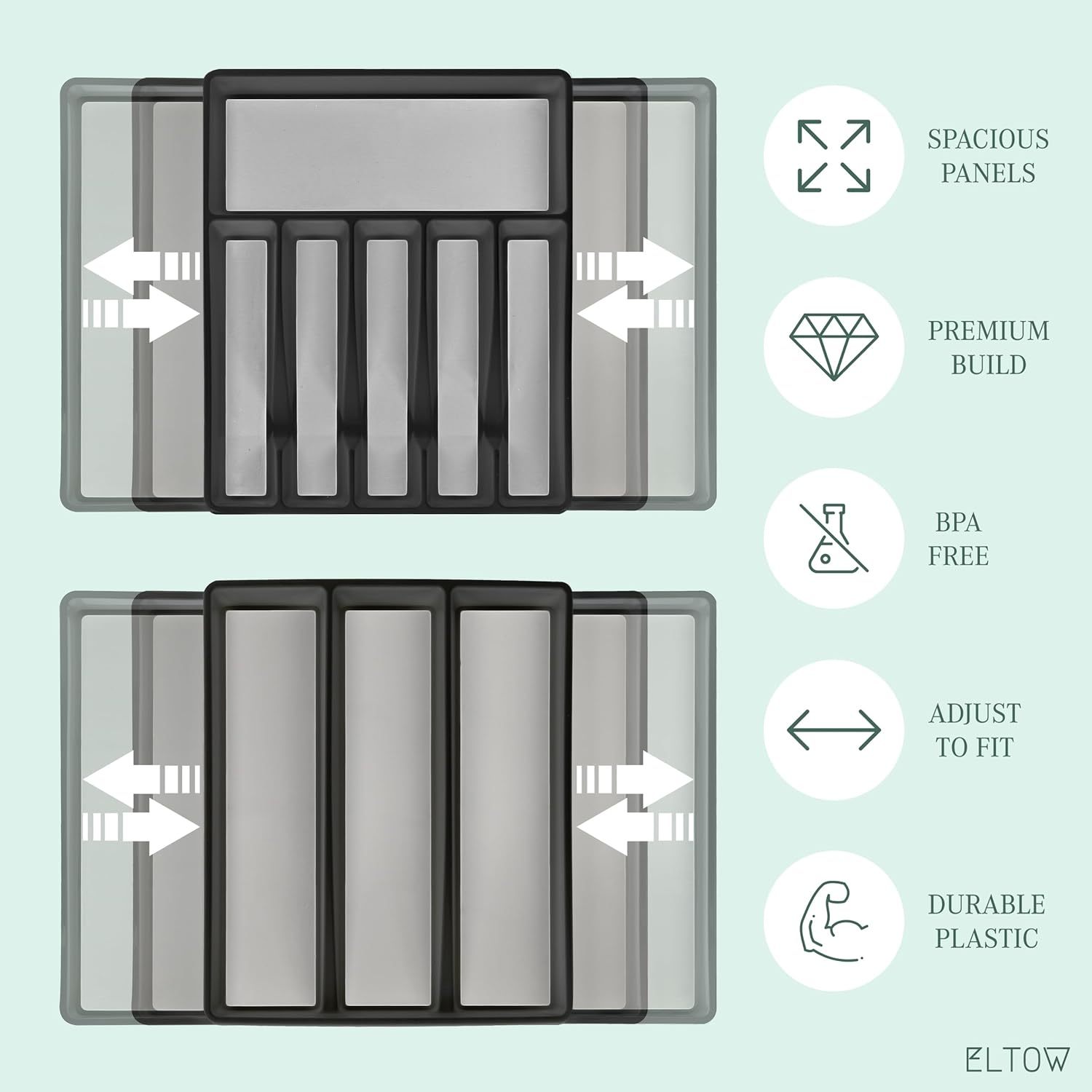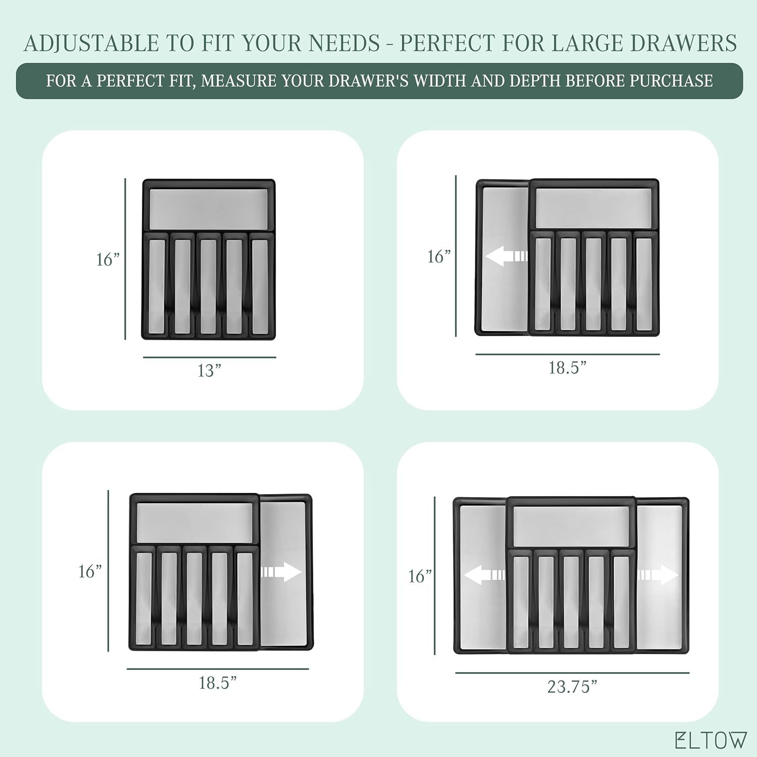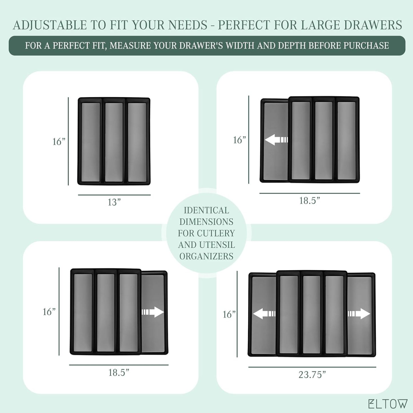 ELTOW - Juego de organizador de cajones y bandejas de utensilios expandibles, organizadores y almacenamiento de cajones de cocina, organización de cocina para utensilios, cubiertos, suministros de