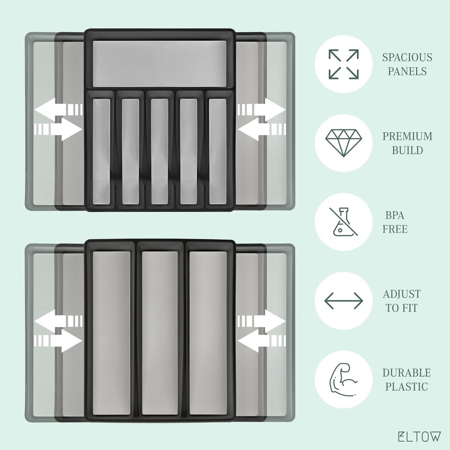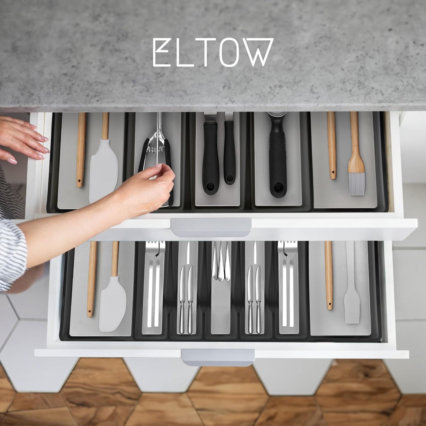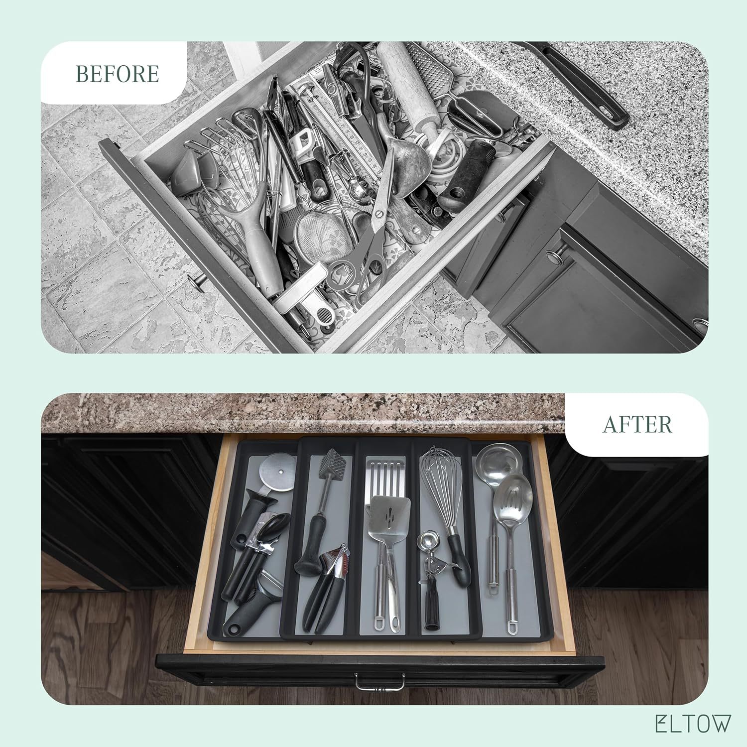 Es hora de que tengas tus cajones de cocina en perfecto orden, de una vez por todas. El soporte para cubiertos y utensilios Eltow de 2 piezas te mostrará cómo