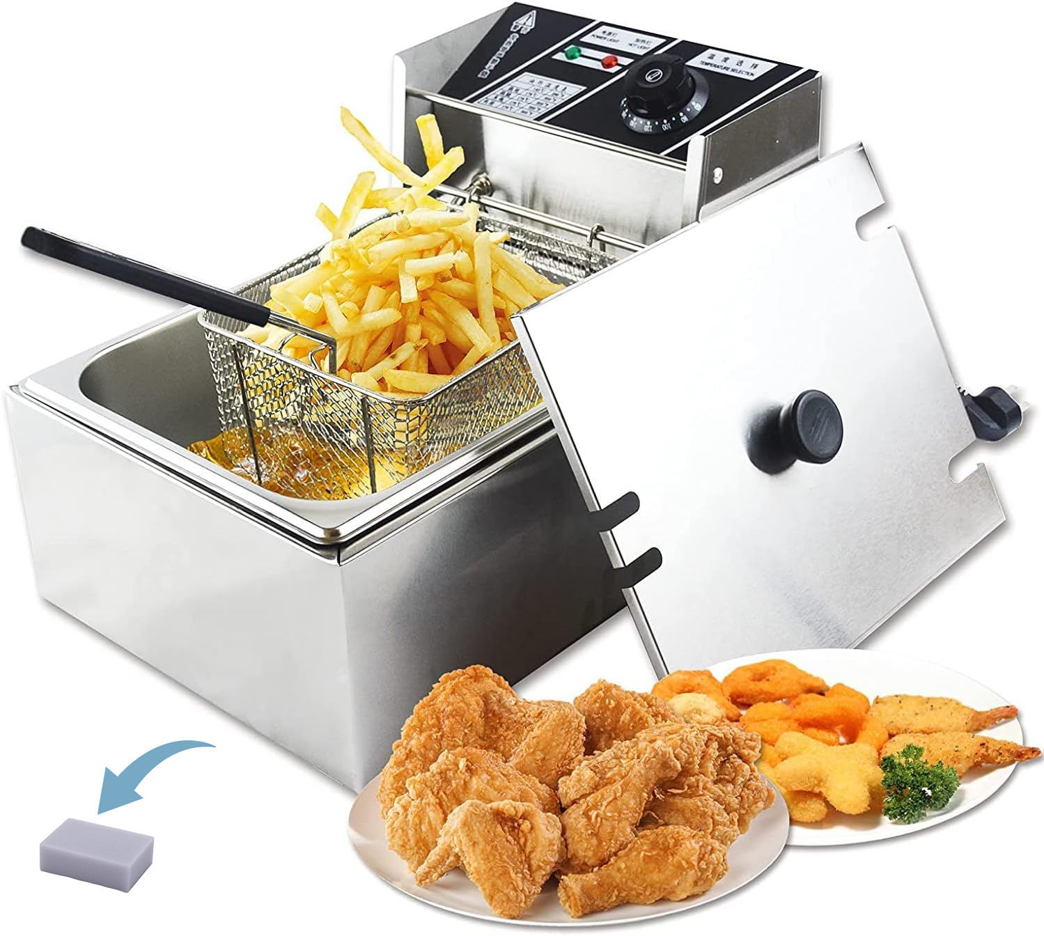 - 2. Gran capacidad de 12L, permite freir hasta dos pollo entero a la vez, o poner muchas papas fritas.