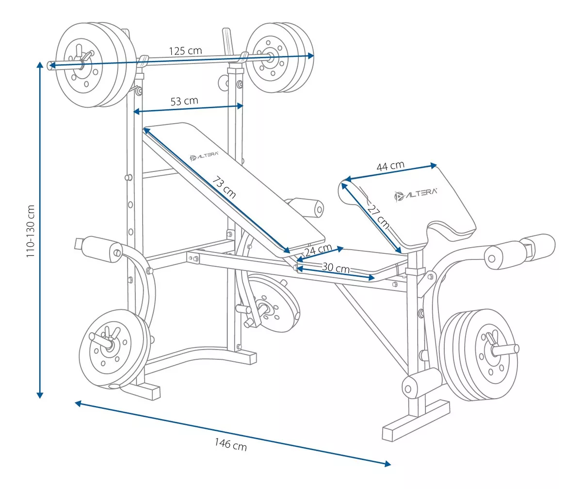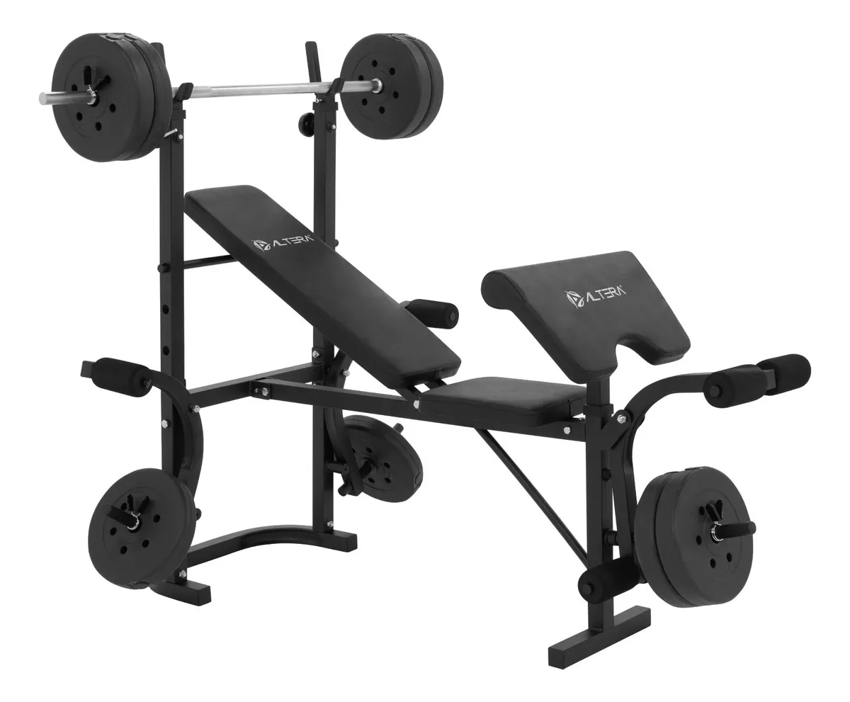 Características especiales: - Entrenamiento completo - Incluye 8 Discos de 4.53 kg y barra de entrenamiento - Hasta 5 niveles de ajuste en las estructuras laterales - Hasta 3 niveles de ajuste en el respaldo - Multifuncional para ejercicios de brazos y piernas - Diseño confortable - Resistente