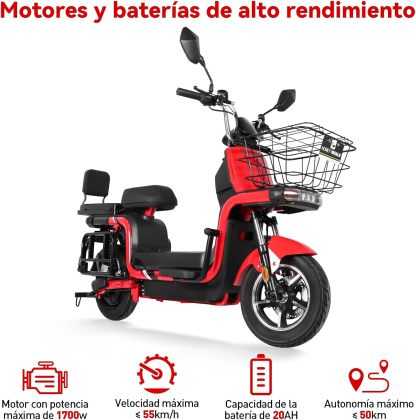 - 【Potencia fuerte】El motor de la U7S tiene una potencia máxima de 1700W, la velocidad máxima alcanza los 55km/h, proporciona una potencia estable y potente para su trayecto diario. Utiliza una batería de plomo-ácido de gran capacidad (48V, 20Ah), puede recorrer 50km con una carga completa de batería. (La velocidad máxima de viaje depende de las condiciones del camino y del peso del conductor).