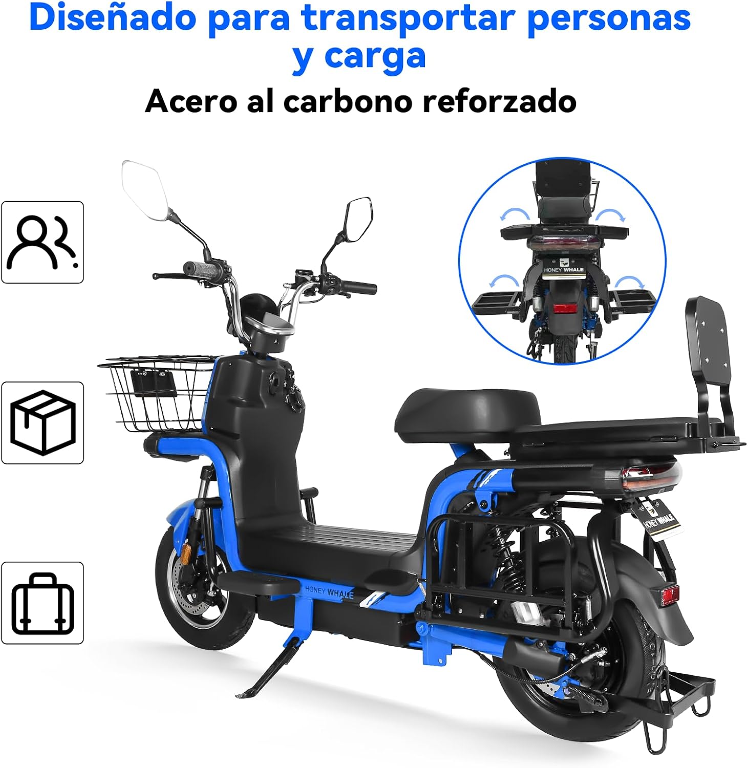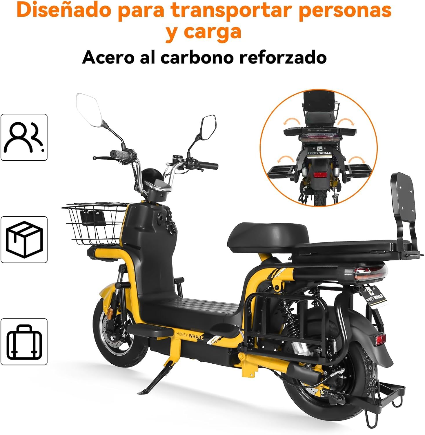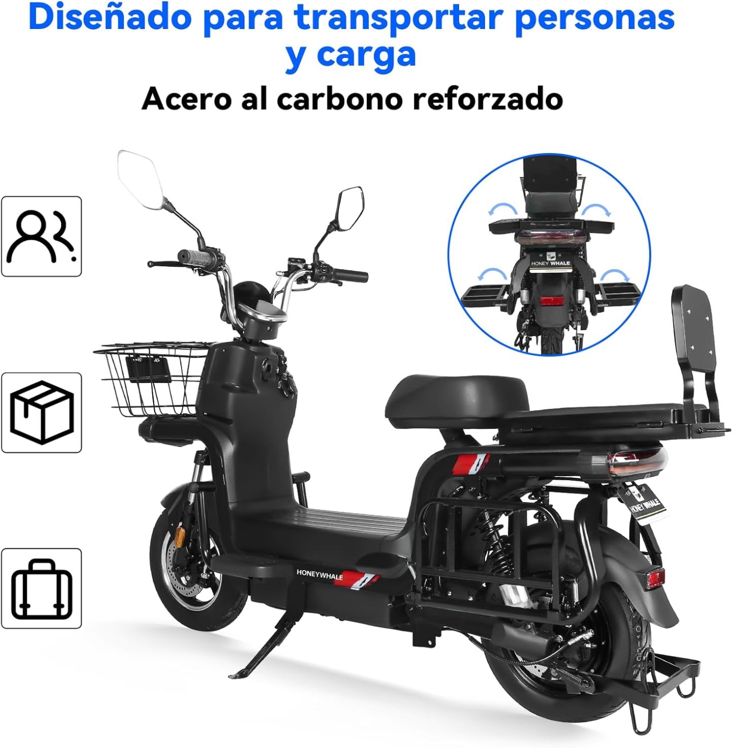 4. Asiento trasero desplegable para transportar cargas.