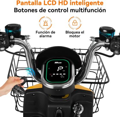 - 【Moto eléctrica inteligente】La U7s viene con un mando a distancia, se puede desbloquear con un solo botón. Además, se puede activar la función de alarma con el control remoto, cuando alguien intenta mover el vehículo, emitirá una alarma y bloqueará el motor. La pantalla de alta definición muestra el nivel actual de carga, velocidad, distancia recorrida, marcha, para que conozcas el estado de la bicicleta eléctrica.