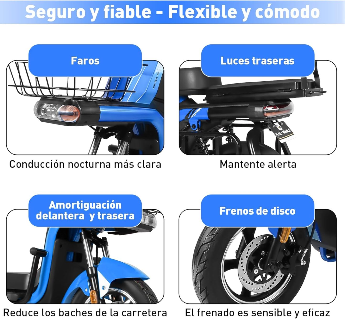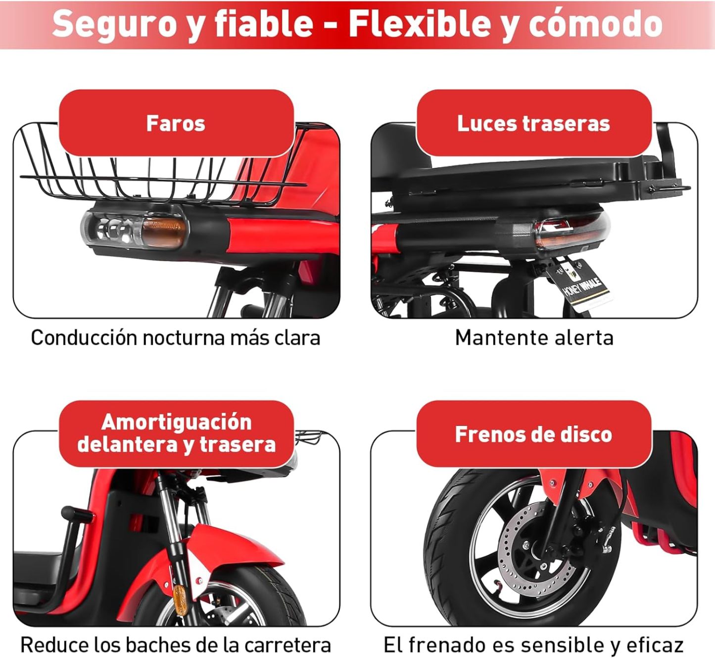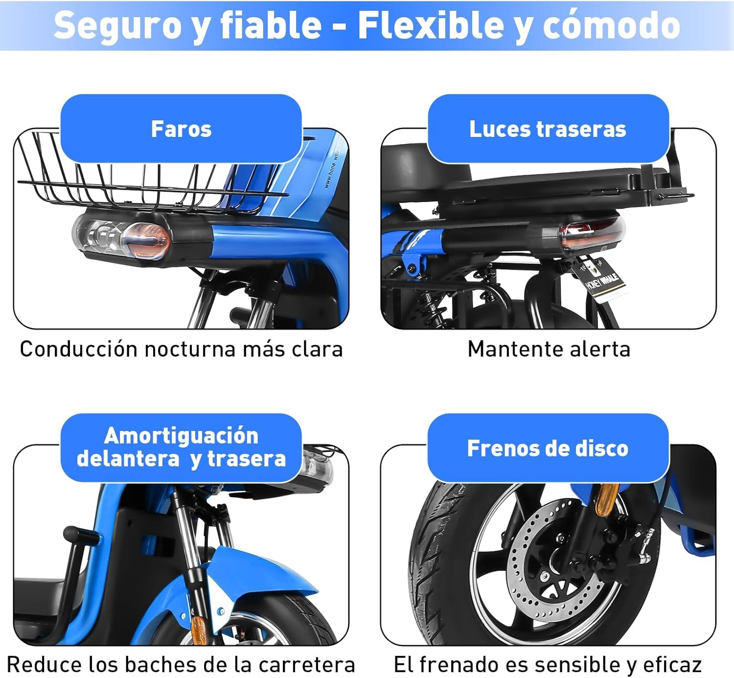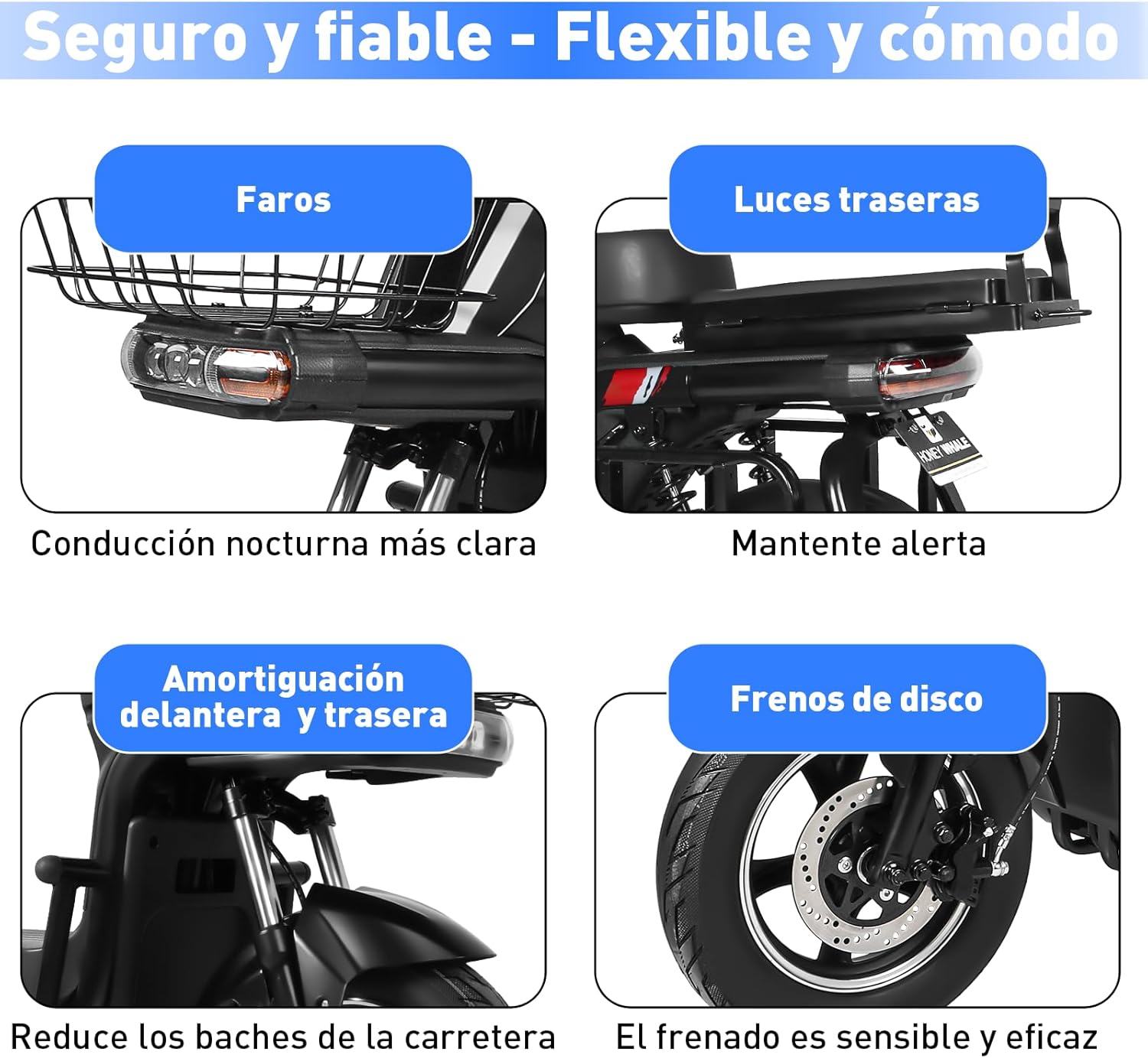 - 【Experiencia de conducción cómoda】Equipado con neumáticos de vacío de 14 pulgadas de gran tamaño, alta elasticidad y resistencia al desgaste, adecuado para cualquier tipo de camino. Sistema de luces delanteras, traseras y de dirección, se puede cambiar entre luces altas y bajas según las condiciones del camino durante la conducción nocturna, mejora la seguridad vial, evita accidentes.