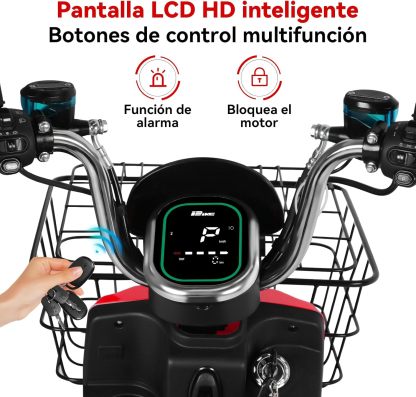 | Características | Conmutación libre de luces largas y cortas, Buen sistema de amortiguación de frenado, Mando a distancia con alarma, un botón para arrancar el vehículo, función de alarma, Los dos soportes laterales se pueden desplegar para transportar cargas, Asiento trasero desplegable para transportar cargas |