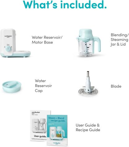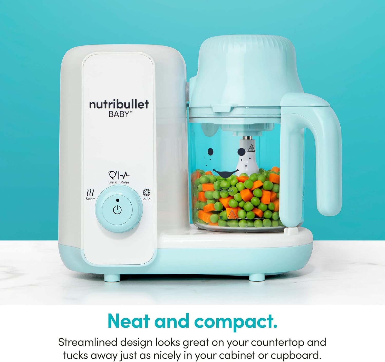 - Cocina y mezcla alimentos frescos para bebés, todo en una máquina simple. El nutribullet Baby Steam + Blend combina la funcionalidad de una olla, cesta de vapor y licuadora en un sistema compacto, reduciendo el desorden, los platos y el tiempo tan precioso.