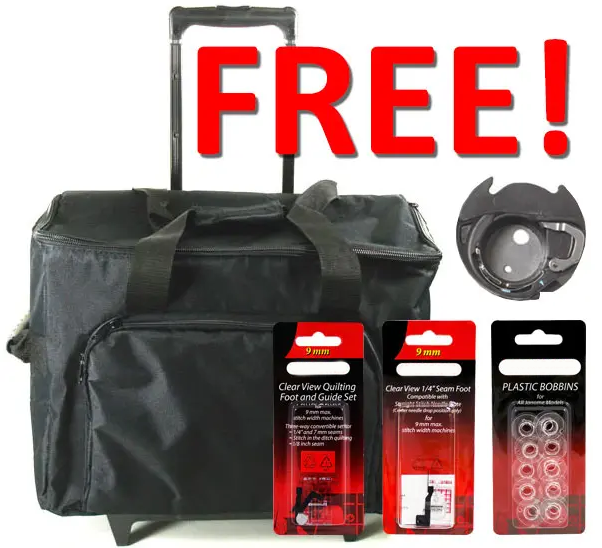 - SEWING MACHINE ACCESSORIES: A variety of accessories are included with All-purpose foot, zipper foot, buttonhole foot, button sewing foot, seam ripper/lint brush, quilting guide, needles, bobbins, screwdriver, auxiliary spool pin, spool pin felt are all conveniently located and stored in the accessory tray. A soft-sided dust cover is also included in the packaging