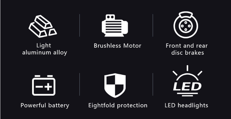 equipment with front suspension fork & dual hydraulic brakes, the front fork shock absorption is lockable and fits flat also rough terrain, and the strong stopping power hydraulic brakes, reduce stopping distances, making riding more safety