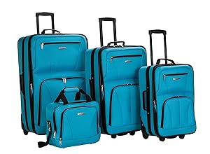Mantén tus esenciales de viaje almacenados con estilo y organizados ordenadamente en el juego de equipaje Rockland de 4 piezas. Este juego tiene todas las piezas que necesitas – para un viaje largo o un viaje de una noche. Poliéster 600 Denier es ligero y duradero. El juego incluye un veliz vertical de 28” con ruedas, vertical de 24” con ruedas, un veliz de mano de 19” con ruedas y un bolso. Cada pieza vertical tiene una amplia apertura con correas para sostener las prendas, un bolsillo de malla con zíper y dos bolsillos externos con zíper. El bolso tiene asas acolchadas y una correa para hombro ajustable. Las piezas verticales se pueden expandir 5.1 cm para capacidad de almacenamiento adicional.