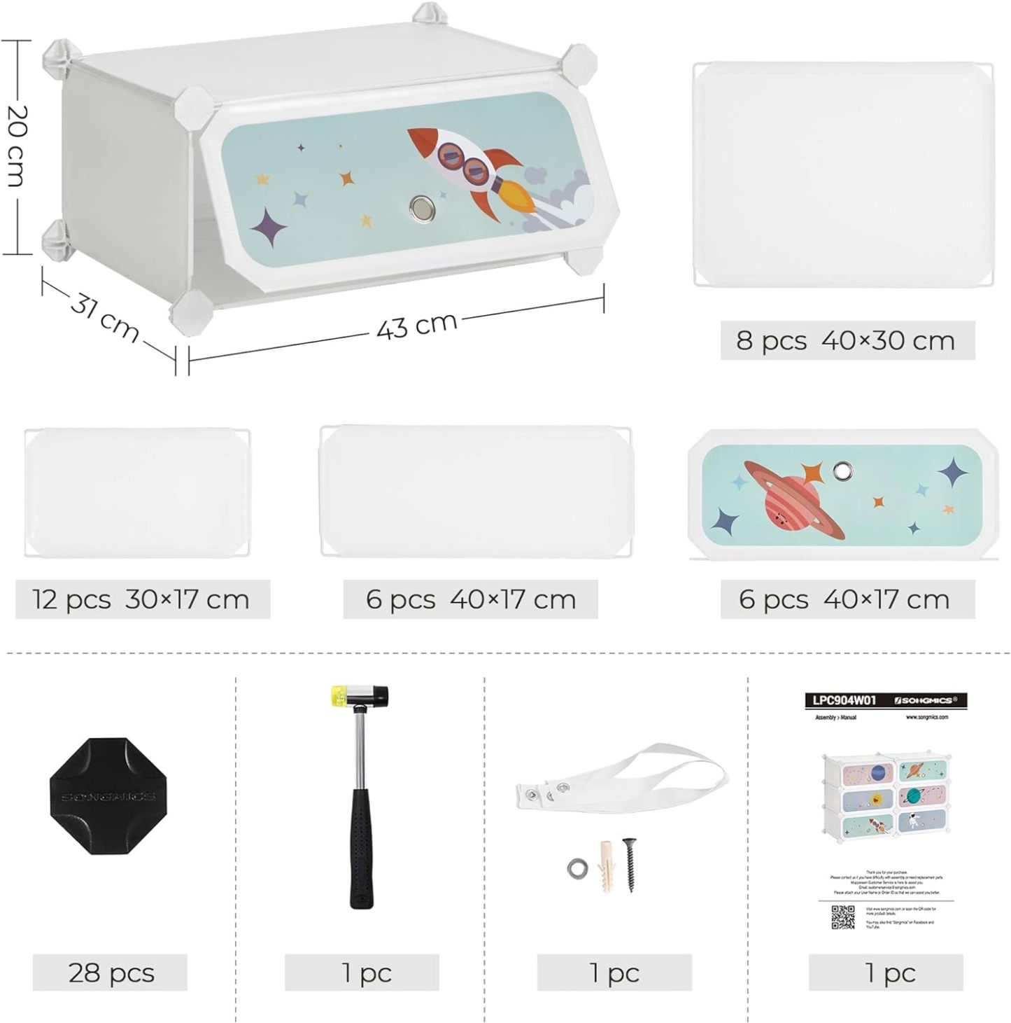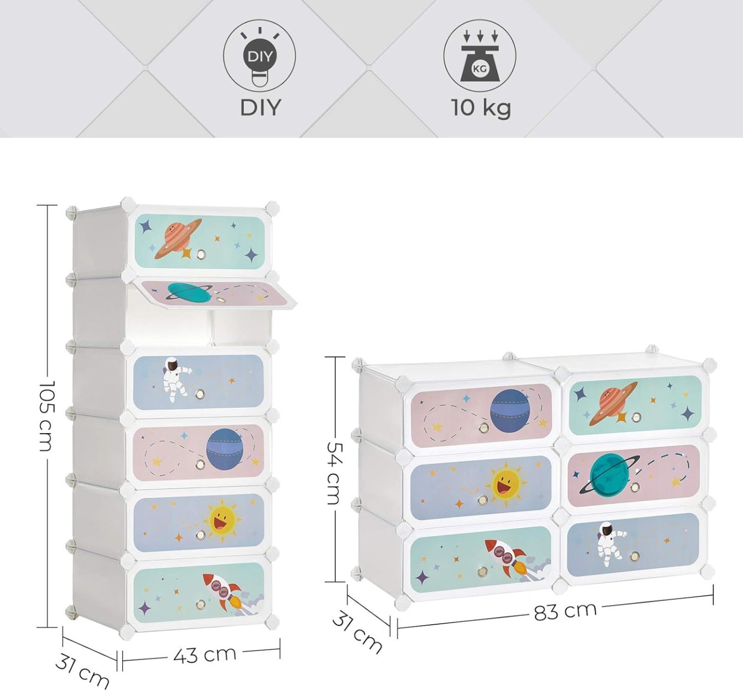 【ELEMENTOS PARA TU TRANQUILIDAD】Pon a tu pequeño primero, esta estantería modular tiene paneles de plástico PP unidos a conectores de ABS, estructura de metal para soportar hasta 10 kg por estante y viene con un dispositivo de fijación