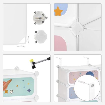 SONGMICS Modular Children's Shelf with 6 Cubes, Children's Shoe Rack, 43 x 31 x 105 cm, Modular Cabinet with Doors, for Clothes, Shoes, Toys, Cloud White MLPC904W01
