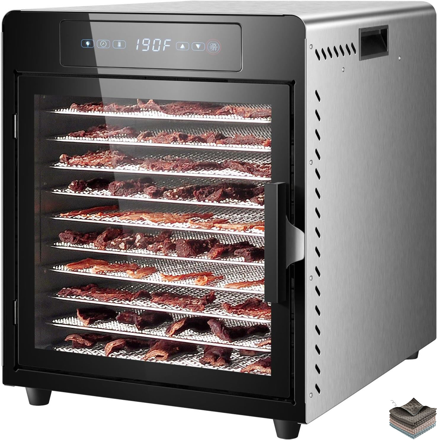 - Aju táctil digital: el deshidratador de frutas integrado en el panel de control digital LED preciso, las temperaturas digitales preestablecidas varían de 68º F a 194º F (20-90°C), con un temporizador de cuenta atrás de hasta 24 horas, proporcio tiempos de secado precisos y temperaturas para que sea muy fácil empezar a crear deliciosas frutas secas, cecina, hierbas, carne o yogur La luz interna funciona para iluminar la zona de secado.