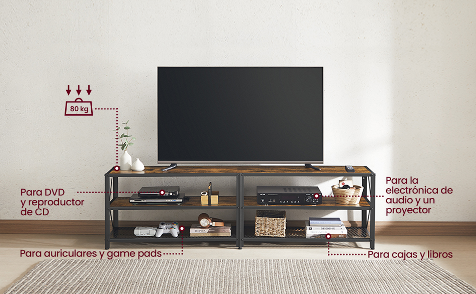 • 【GRAN SUPERFICIE】Reúne a varios amigos y eleva tu televisor (de hasta 75 pulgadas) con este mueble de TV de 39 x 178 x 52 cm para prepararte para un maratón de películas