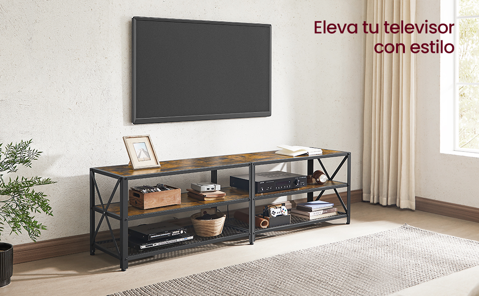 • 【APORTA EL TOQUE】Los tableros de color marrón rústico suavizan la frialdad del marco de acero negro en este soporte para TV para crear un ambiente encantador