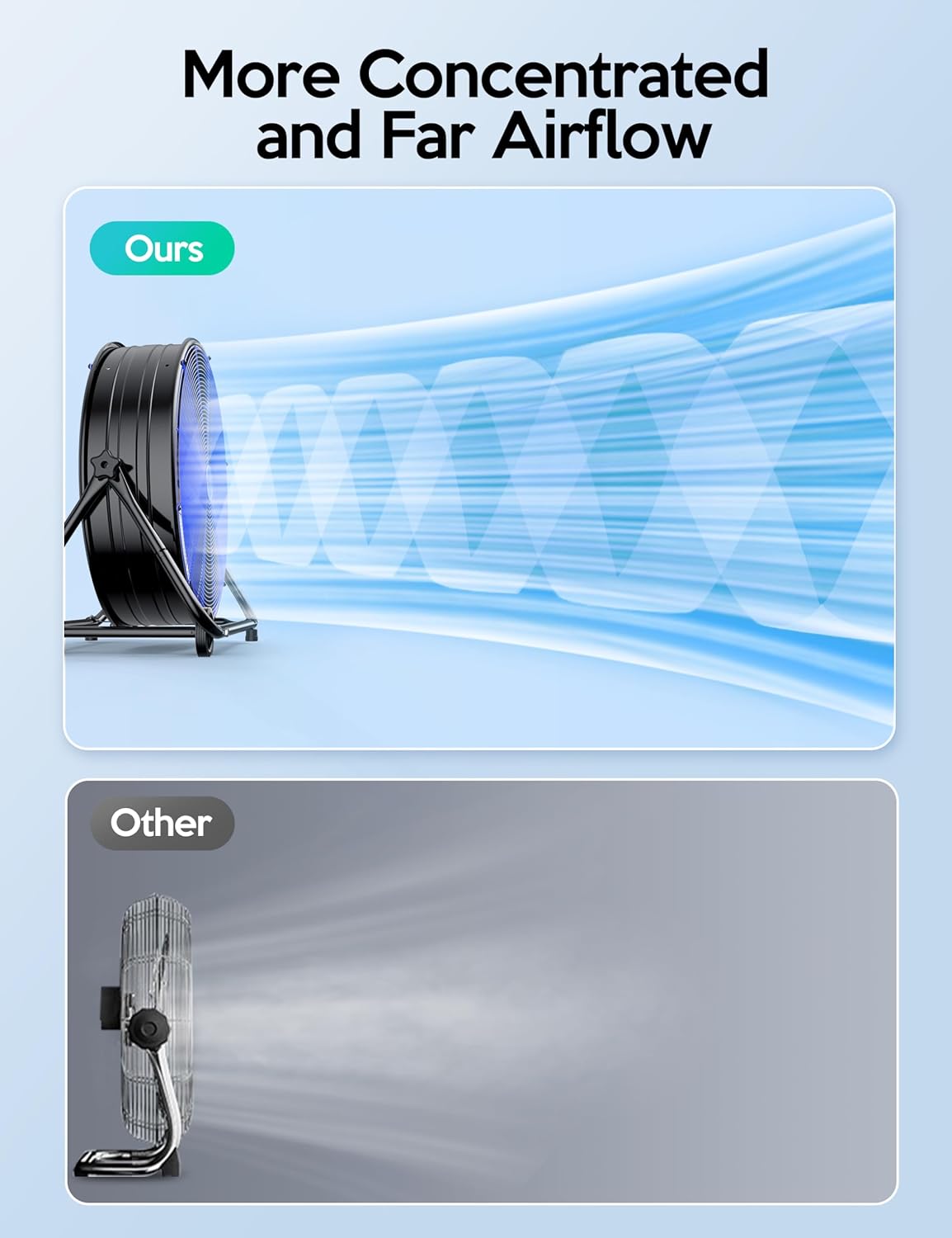 Movilidad: Junto con las ruedas de su base, las asas laterales y un cable de alimentación de 6 pies, este ventilador industrial es increíblemente móvil y fácil de trasladar de un lugar a otro, tanto en interiores como en exteriores.