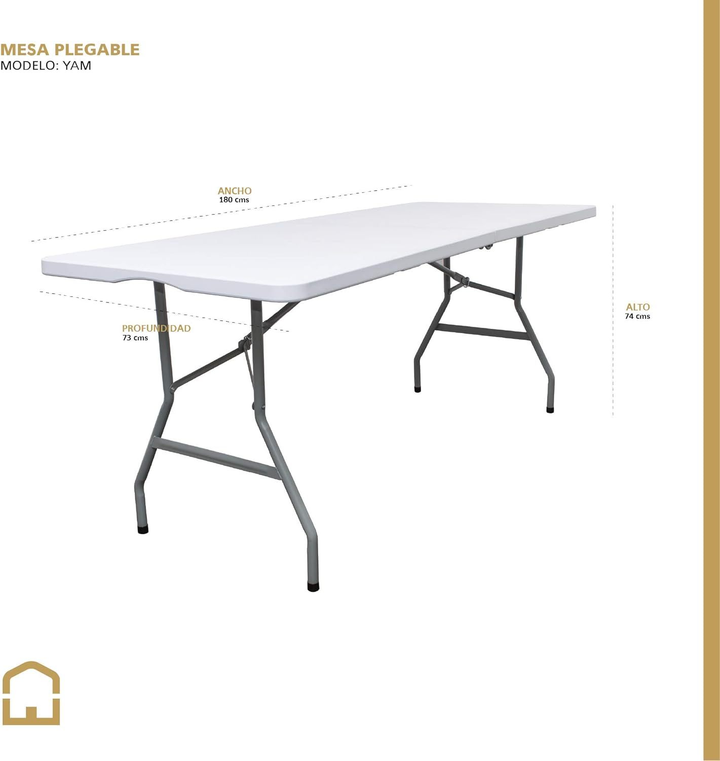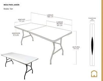 - La mesa está diseñada para ahorrar espacio, con su sistema PLEGABLE puedes llevarla en la cajuela del automóvil o a mano, cuenta con AGARRADERA para facilitar su transporte. MEDIDAS INSTALADA Largo: 180 cm. Alto: 77 cm. Ancho: 71 cm. MEDIDAS PLEGADA Largo: 75 cm. Alto: 90 cm. Ancho: 3.5 cm. AGUANTA hasta un máximo de 40 kilogramos