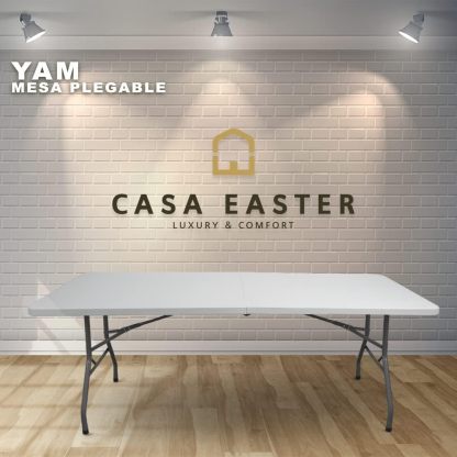Mesa PLEGABLE TIPO PORTAFOLIO 1.80 CASA EASTER, es perfecta para momento con la familia y amigos. Su diseño practico, cómodo y portátil es ideal para llevarla y traerla a cualquier parte Superficie rígida Fácil de armar, su instalación requiere pocos minutos. Mesa plegable para facilitar su transporte y resguardo. Materiales resistentes, ideal para interior o exterior. ¡DISEÑO MODERNO! ideal para usar en interiores o exteriores, por su color Blanco COMBINA con cualquier tipo de decoración. ¡FÁCIL armado! cuenta con un diseño PLEGABLE por la mitad, sólo desdoble y asegure los frenos, en pocos minutos estará lista la superficie para colocar comida, botanas o refrescos. ¡PORTÁTIL! La mesa está diseñada para ahorrar espacio, con su sistema PLEGABLE puedes llevarla en la cajuela del automóvil o a mano, cuenta con AGARRADERA para facilitar su transporte. MEDIDAS INSTALADA Largo: 180 cm. Alto: 77 cm. Ancho: 71 cm. MEDIDAS PLEGADA Largo: 75 cm. Alto: 90 cm. Ancho: 3.5 cm. AGUANTA hasta un máximo de 40 kilogramos ¡Estructura PRÁCTICA! La mesa tiene una base de acero y una superficie RESISTENTE a cambios climáticos y manchas comunes, por lo que es DURABLE, además tiene una gran estabilidad y es fácil de LIMPIAR.