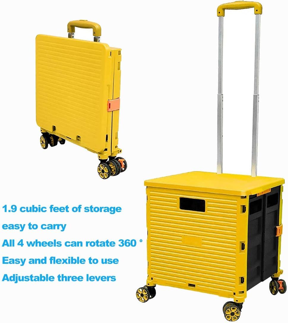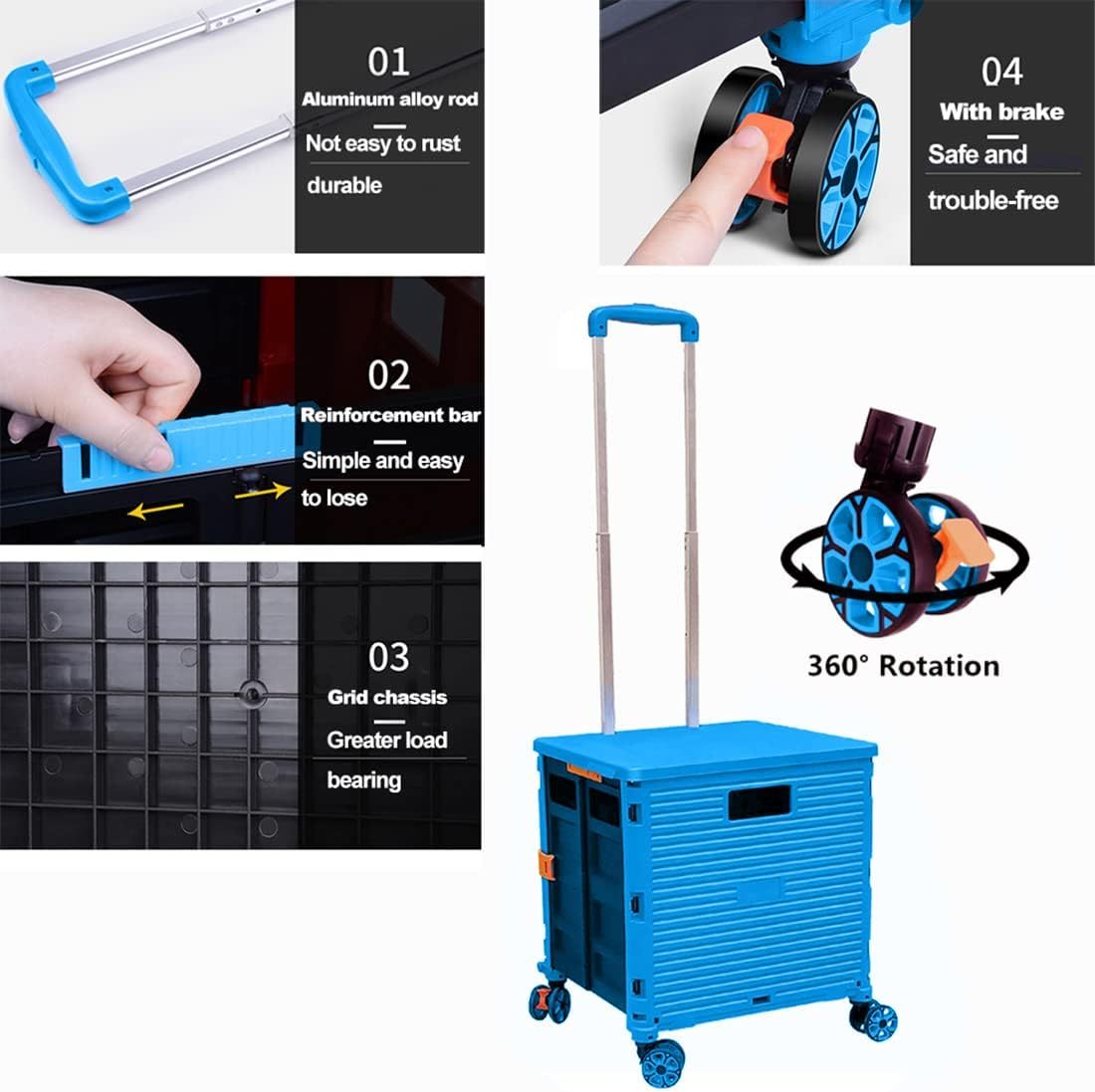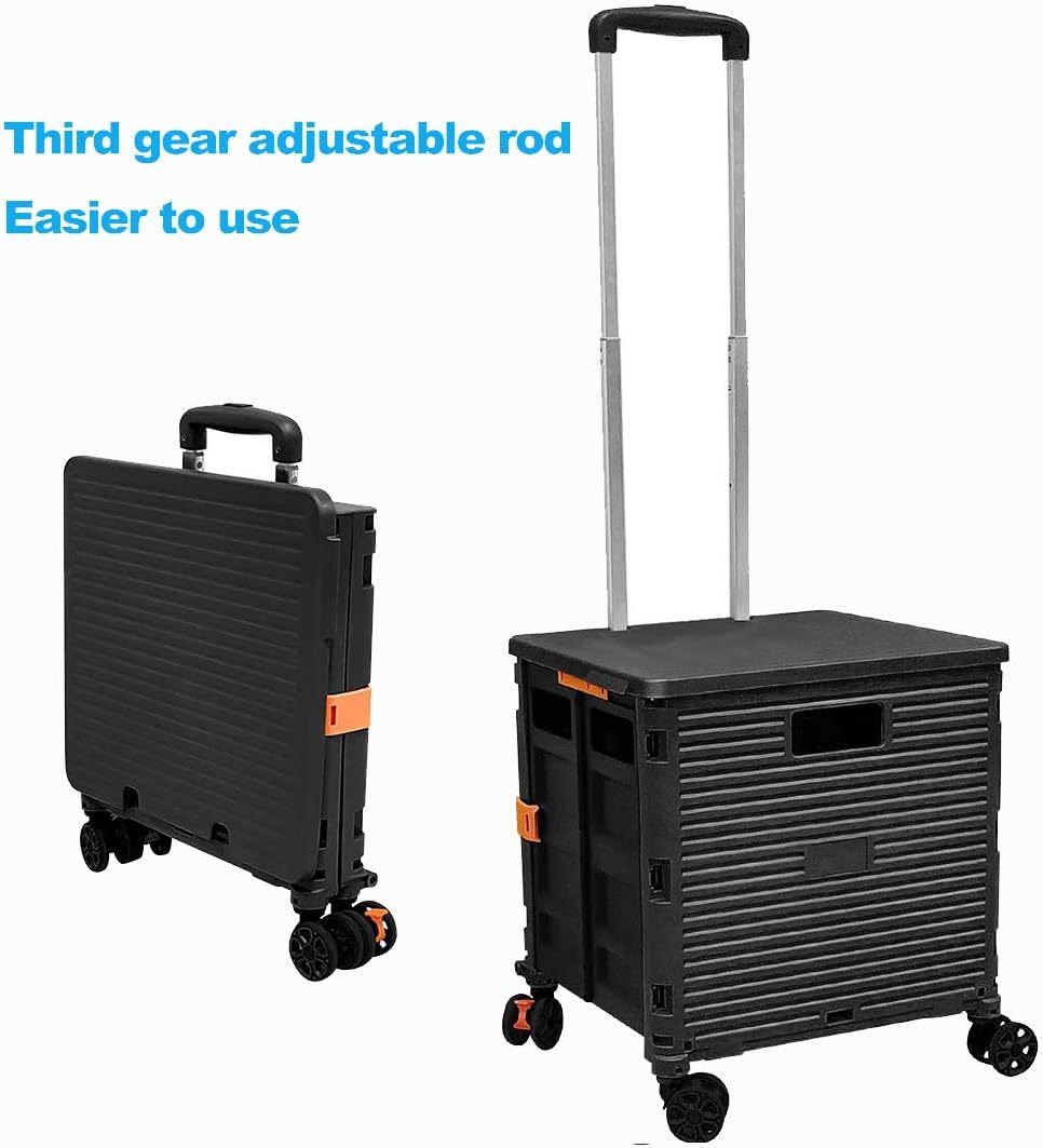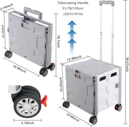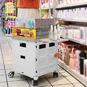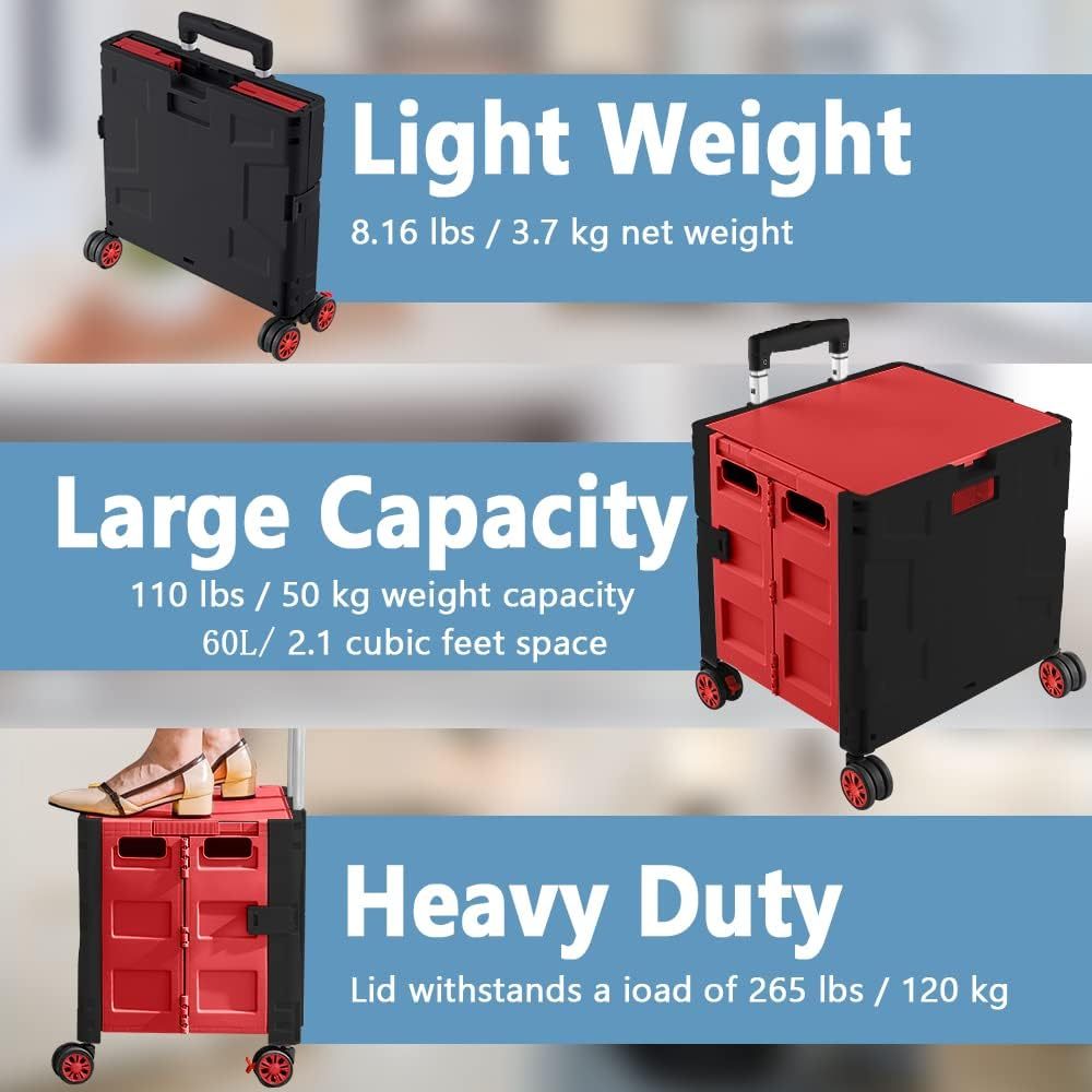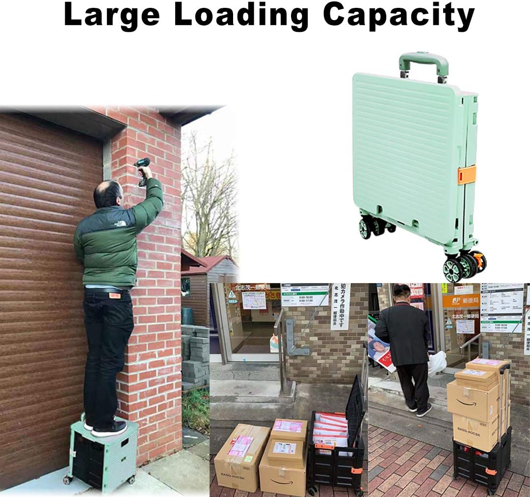 - 【Increíble capacidad de carga y ultra grande】Nuestro carro plegable puede contener 55 L de mercancías, el peso pesado del carro de mano puede alcanzar 175 libras, el peso pesado del mango telescópico de aleación de aluminio a prueba de óxido puede alcanzar 125 libras, según una serie de pruebas prácticas, los carros rodantes tienen un buen rendimiento de carga. Creo que este es un excelente carrito de herramientas para mover comestibles y almacenamiento de libros de oficina, para que nunca tengas que preocuparte por el peso de nuevo.