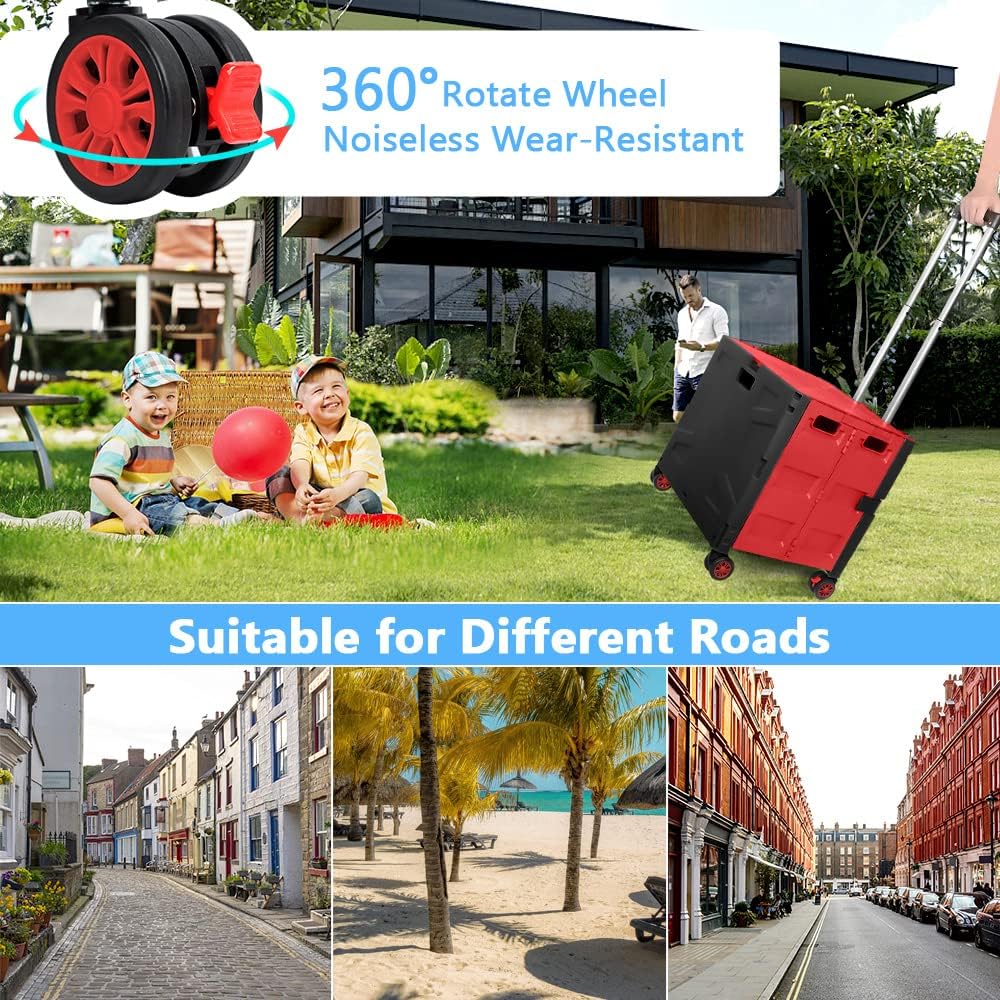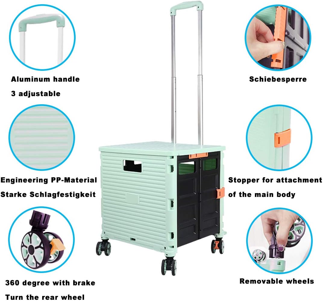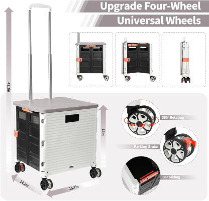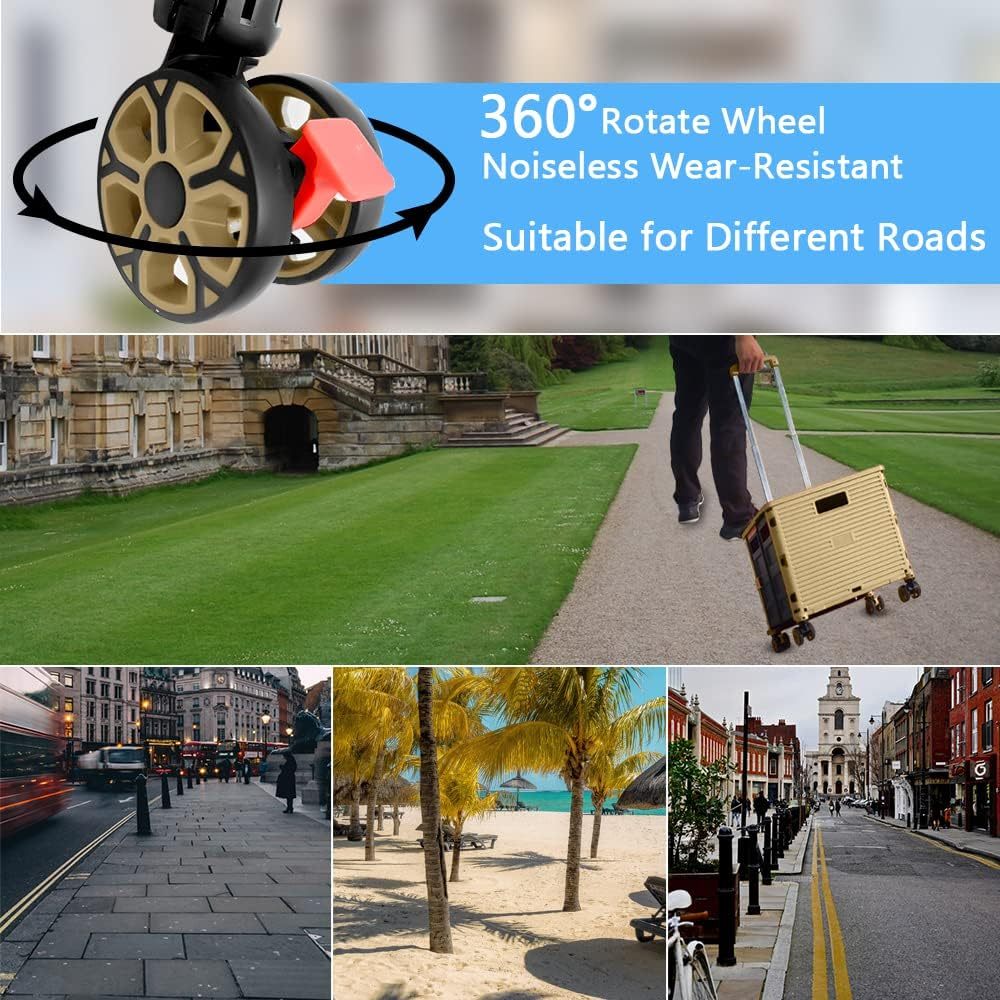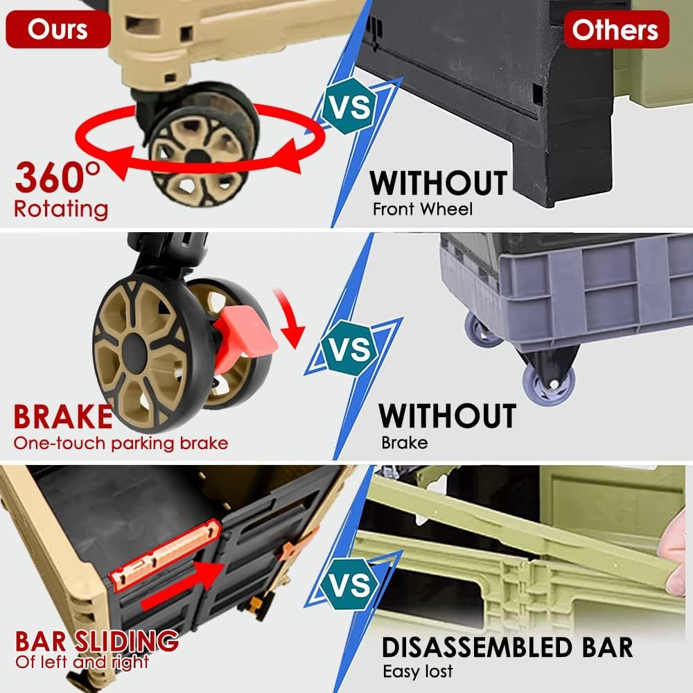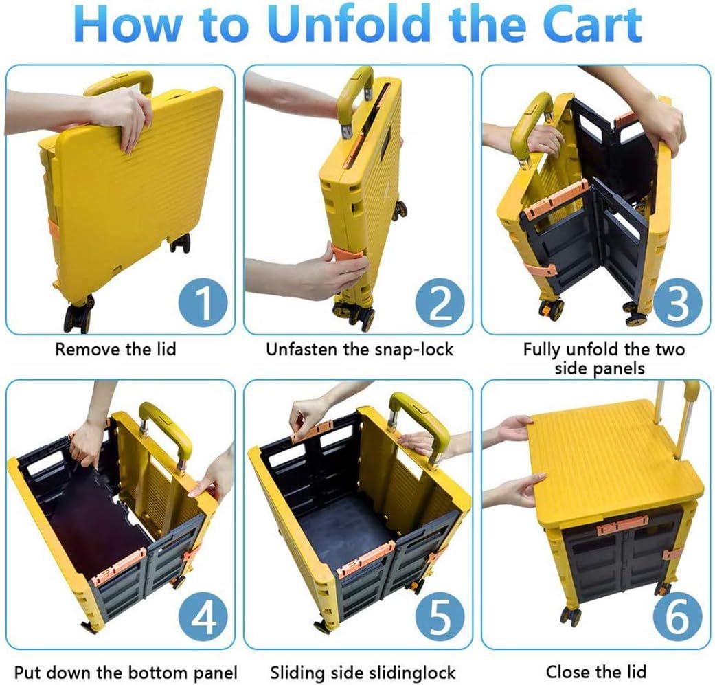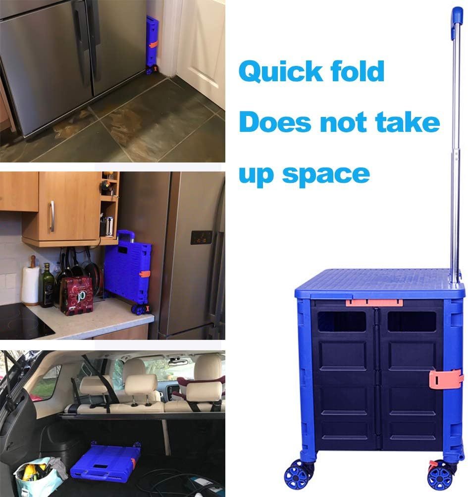- 【Increíble capacidad de carga y ultra grande】Nuestro carro plegable puede contener 55 L de mercancías, el peso pesado del carro de mano puede alcanzar 175 libras, el peso pesado del mango telescópico de aleación de aluminio a prueba de óxido puede alcanzar 125 libras, según una serie de pruebas prácticas, los carros rodantes tienen un buen rendimiento de carga. Creo que este es un excelente carrito de herramientas para mover comestibles y almacenamiento de libros de oficina, para que nunca tengas que preocuparte por el peso de nuevo.