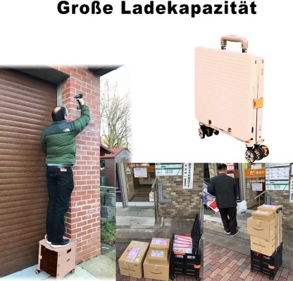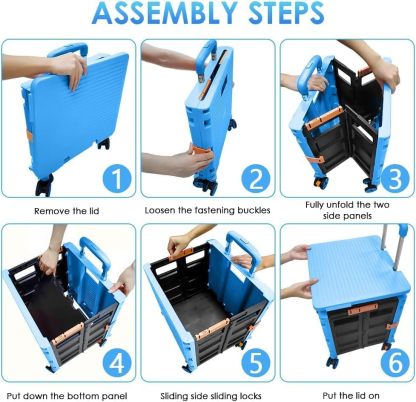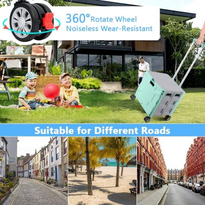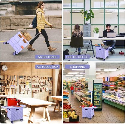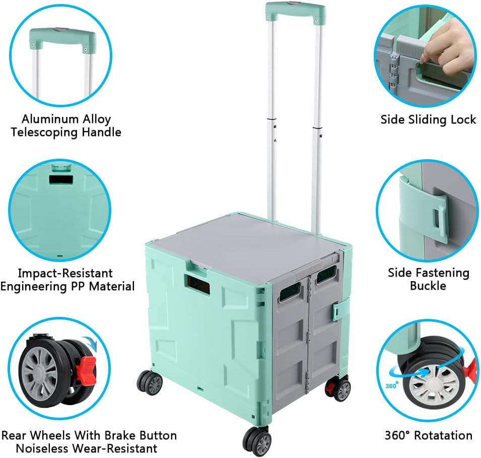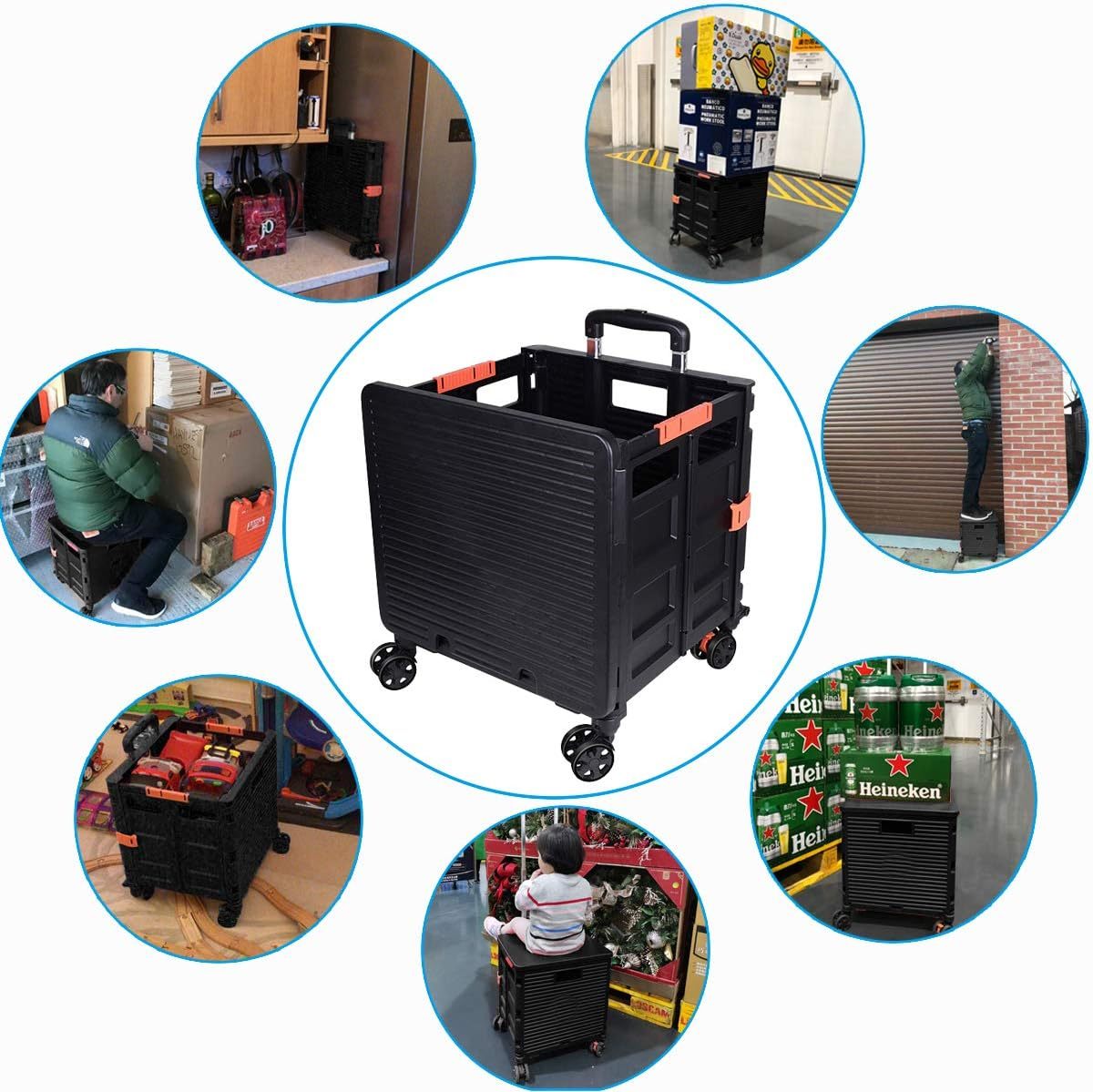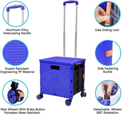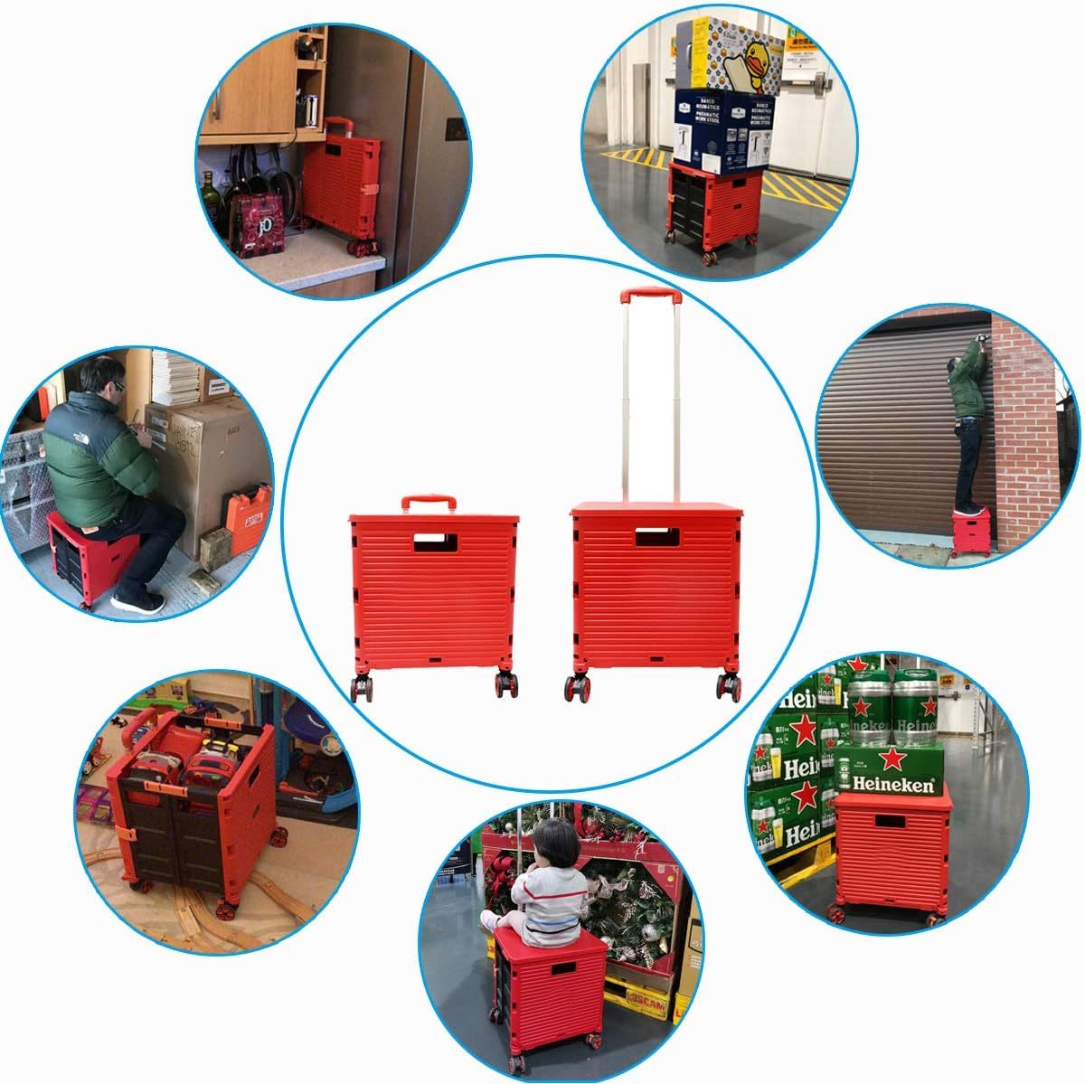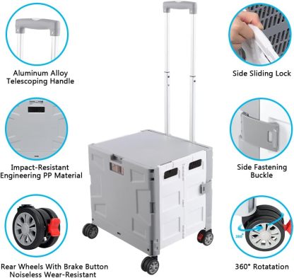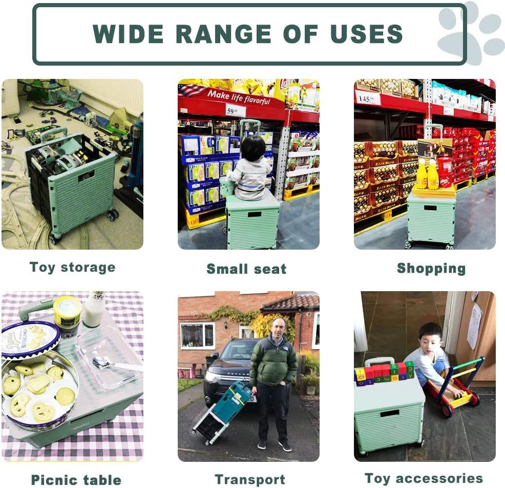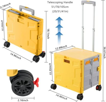 - 【Increíble capacidad de carga y ultra grande】Nuestro carro plegable puede contener 55 L de mercancías, el peso pesado del carro de mano puede alcanzar 175 libras, el peso pesado del mango telescópico de aleación de aluminio a prueba de óxido puede alcanzar 125 libras, según una serie de pruebas prácticas, los carros rodantes tienen un buen rendimiento de carga. Creo que este es un excelente carrito de herramientas para mover comestibles y almacenamiento de libros de oficina, para que nunca tengas que preocuparte por el peso de nuevo.