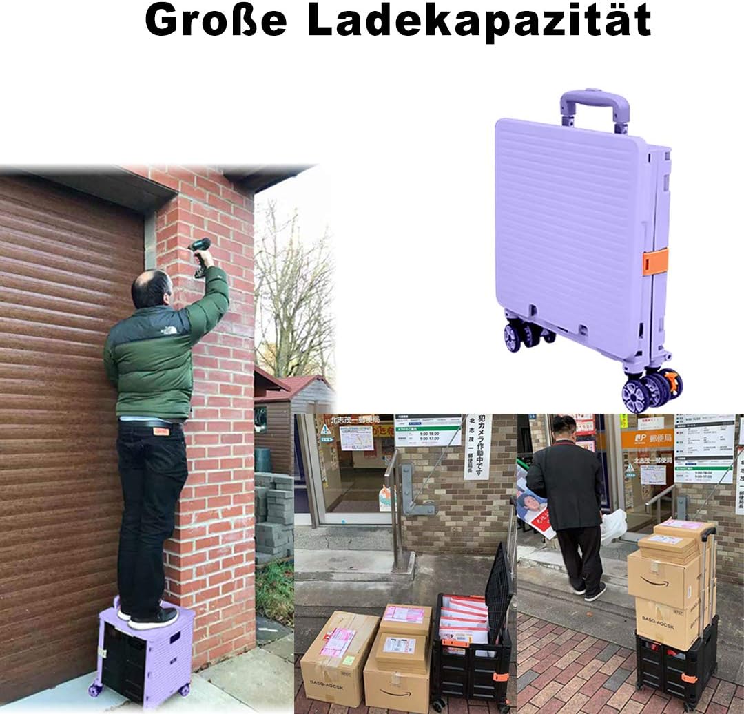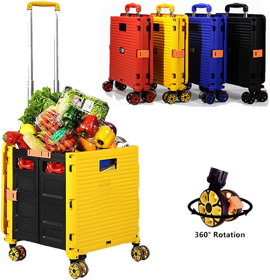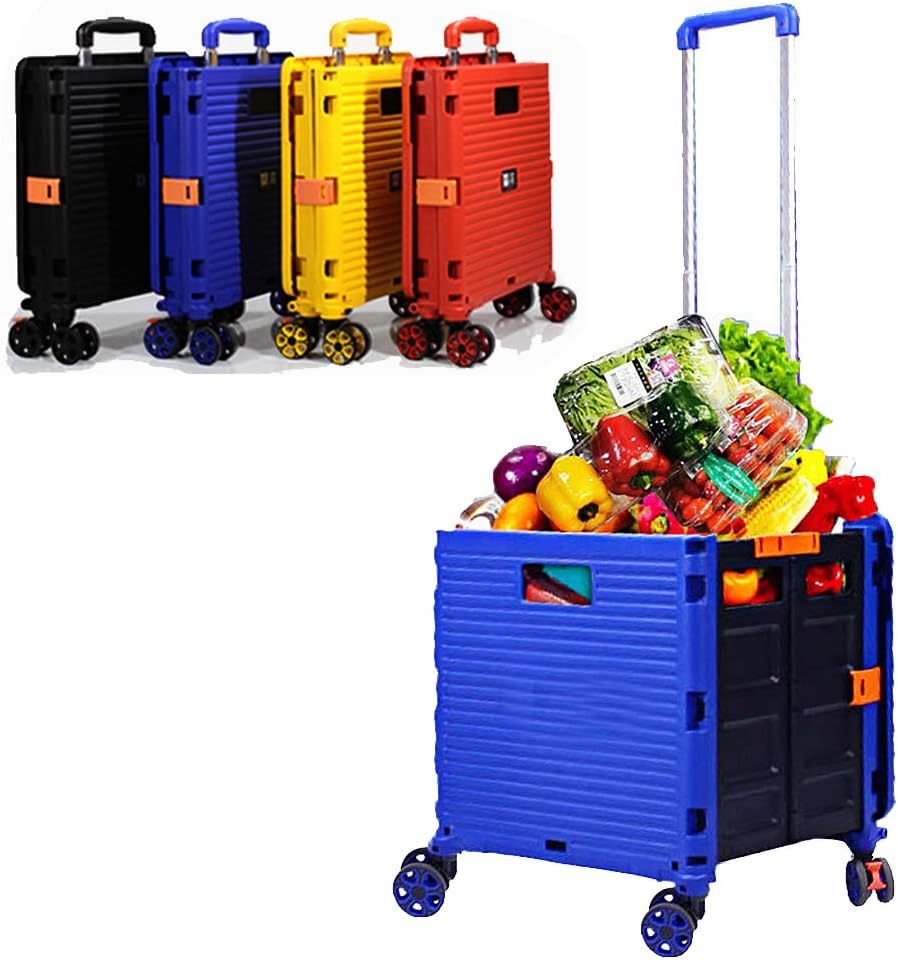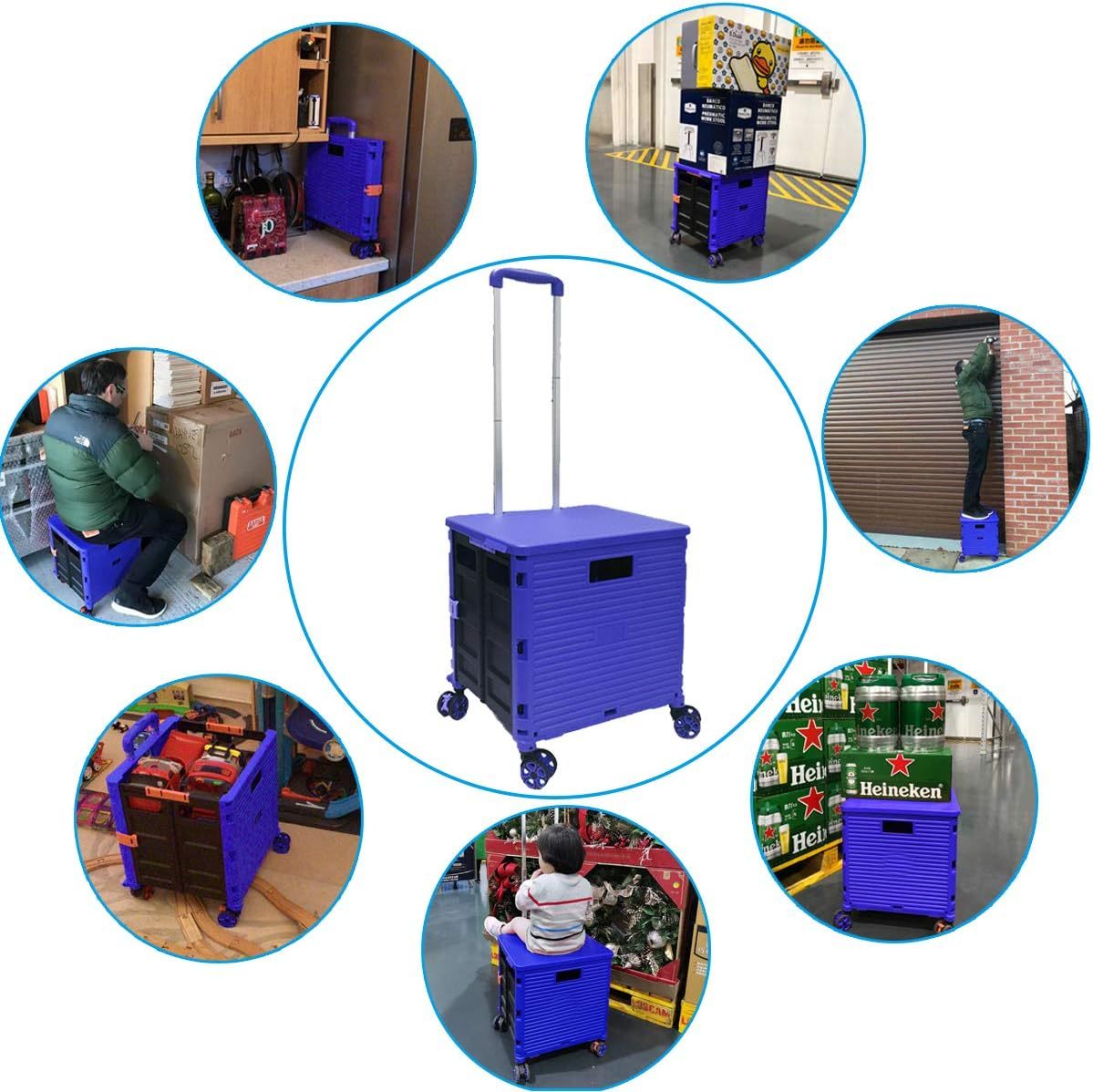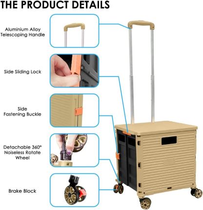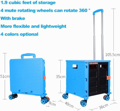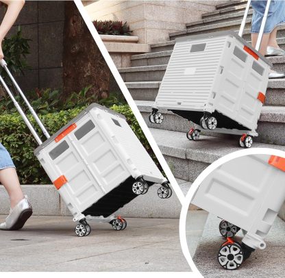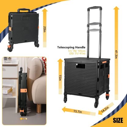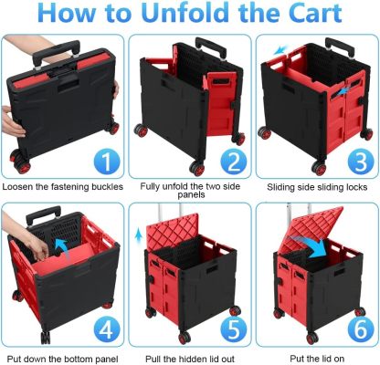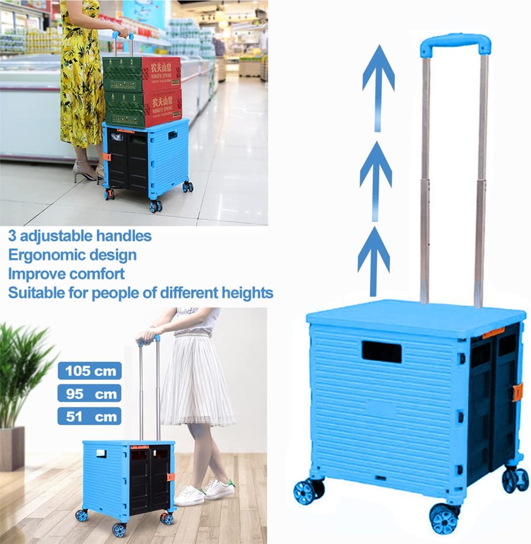 - 【Increíble capacidad de carga y ultra grande】Nuestro carro plegable puede contener 55 L de mercancías, el peso pesado del carro de mano puede alcanzar 175 libras, el peso pesado del mango telescópico de aleación de aluminio a prueba de óxido puede alcanzar 125 libras, según una serie de pruebas prácticas, los carros rodantes tienen un buen rendimiento de carga. Creo que este es un excelente carrito de herramientas para mover comestibles y almacenamiento de libros de oficina, para que nunca tengas que preocuparte por el peso de nuevo.