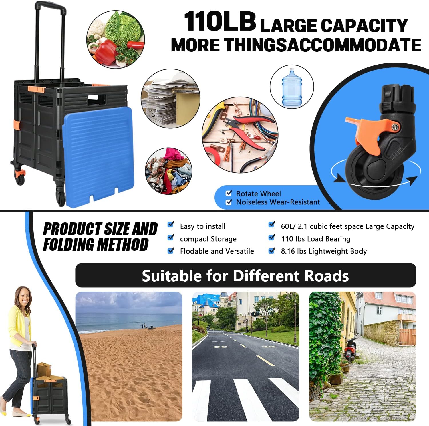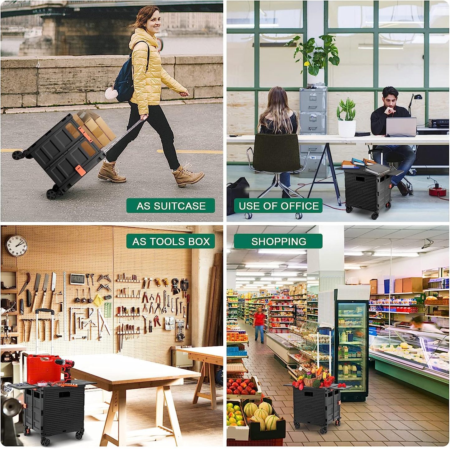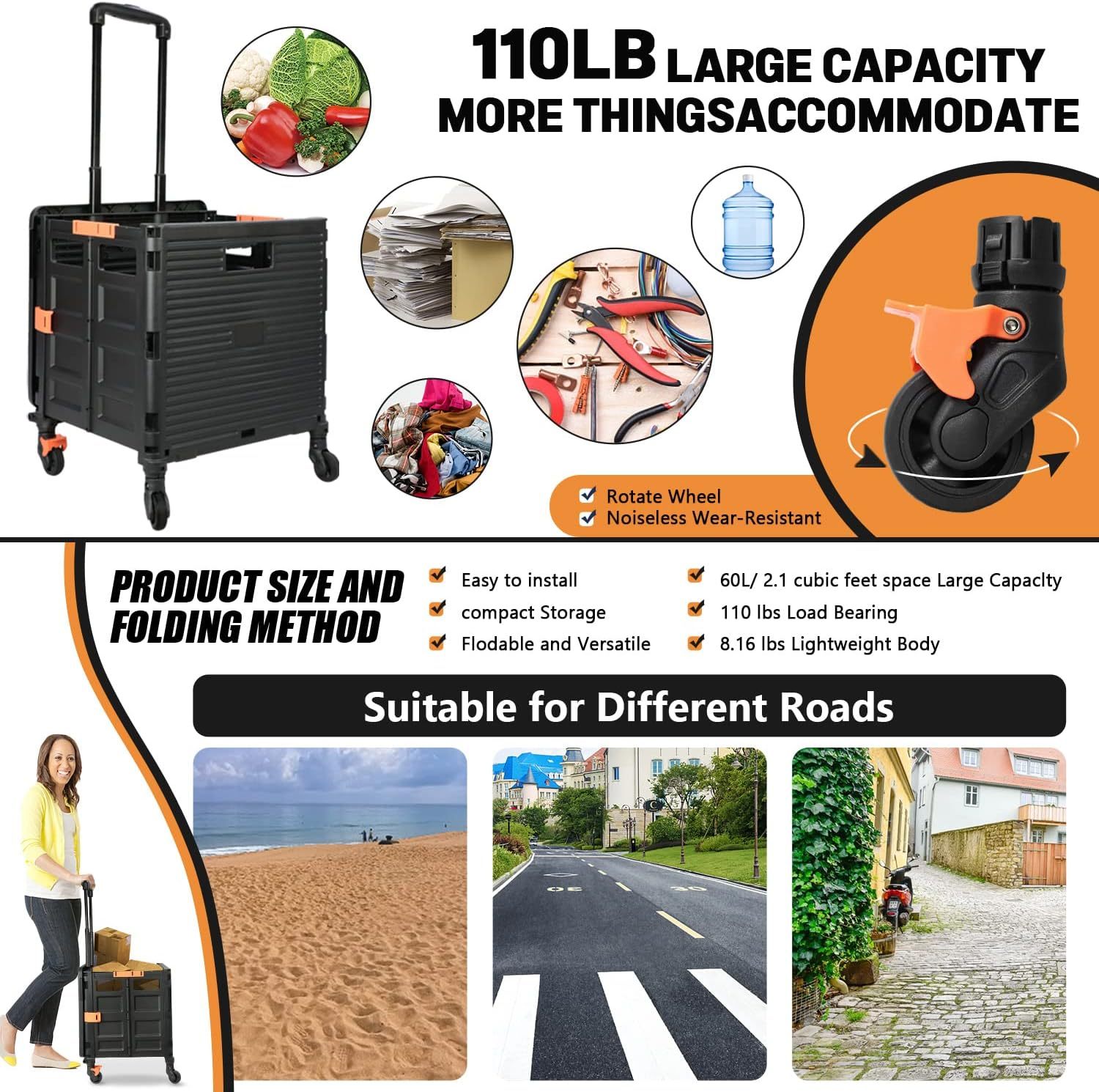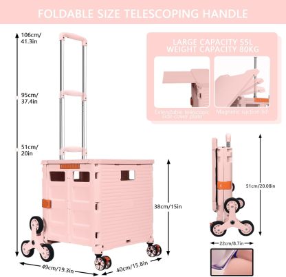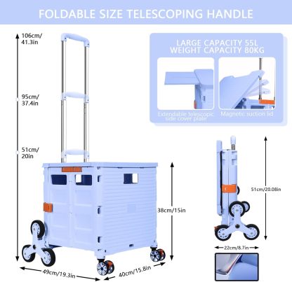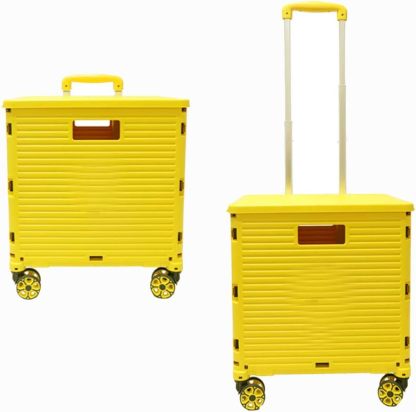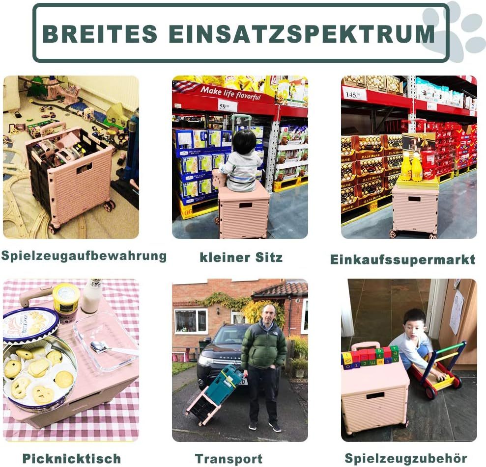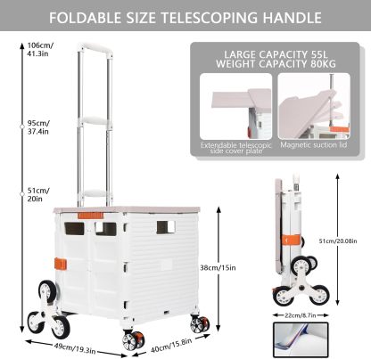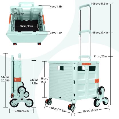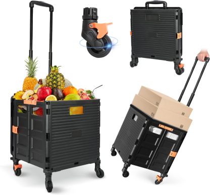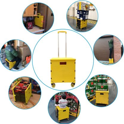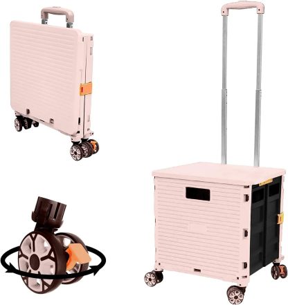- 【Increíble capacidad de carga y ultra grande】Nuestro carro plegable puede contener 55 L de mercancías, el peso pesado del carro de mano puede alcanzar 175 libras, el peso pesado del mango telescópico de aleación de aluminio a prueba de óxido puede alcanzar 125 libras, según una serie de pruebas prácticas, los carros rodantes tienen un buen rendimiento de carga. Creo que este es un excelente carrito de herramientas para mover comestibles y almacenamiento de libros de oficina, para que nunca tengas que preocuparte por el peso de nuevo.
