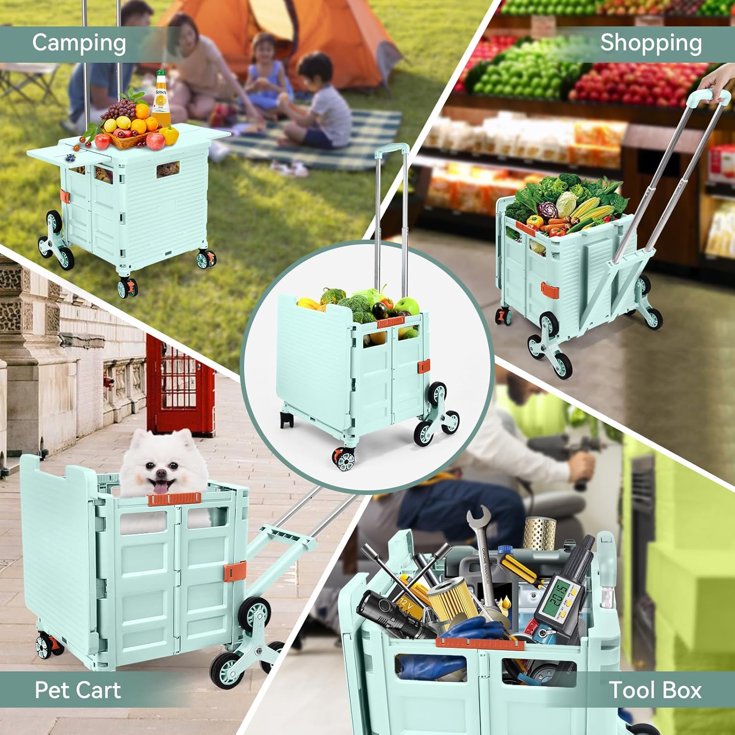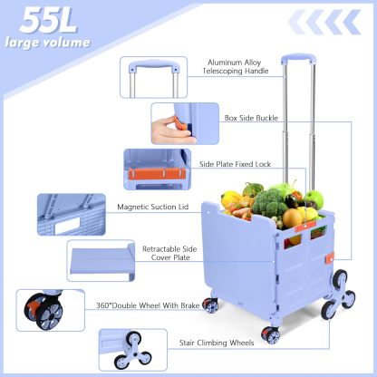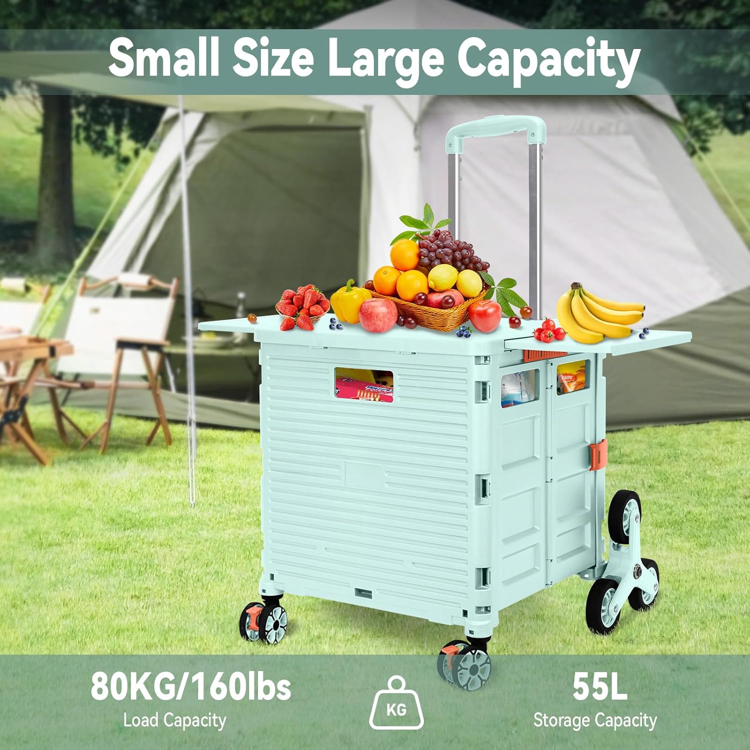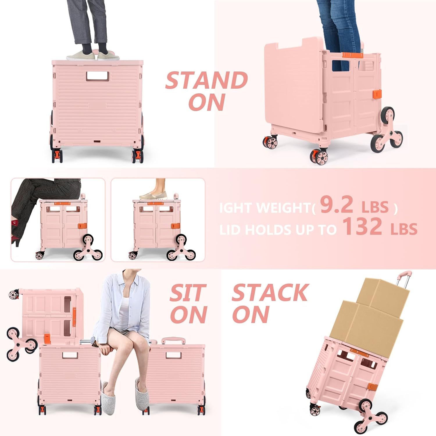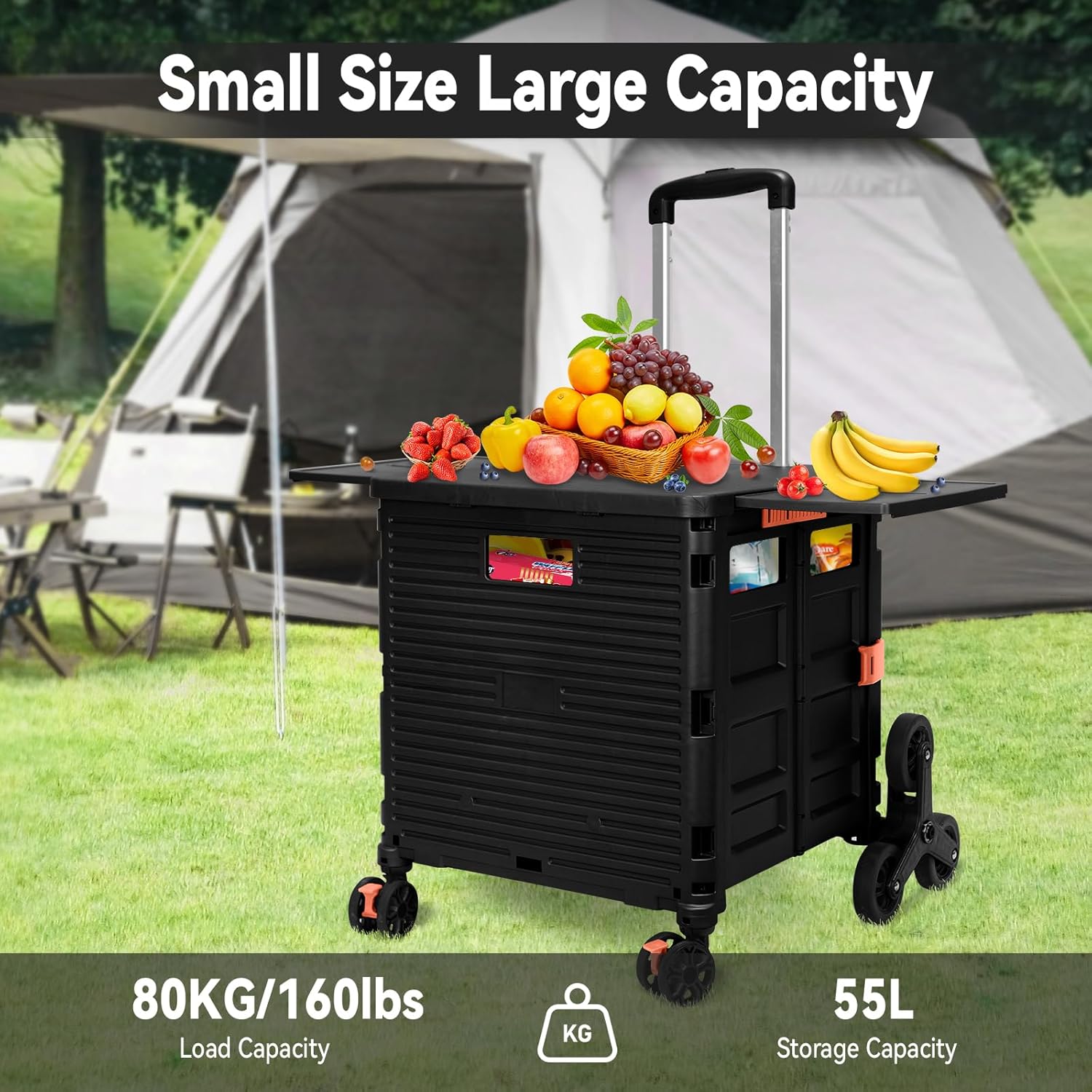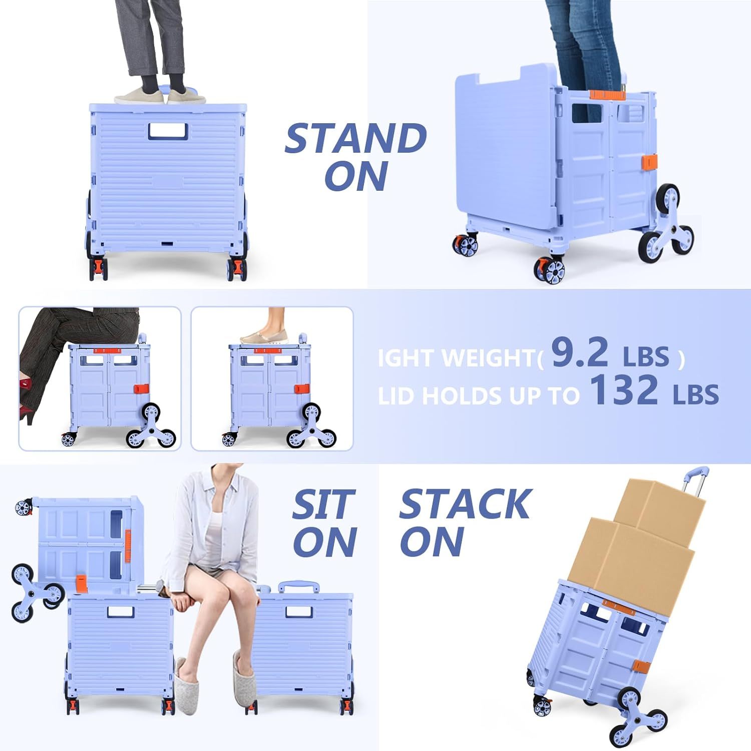 - 【Increíble capacidad de carga y ultra grande】Nuestro carro plegable puede contener 55 L de mercancías, el peso pesado del carro de mano puede alcanzar 175 libras, el peso pesado del mango telescópico de aleación de aluminio a prueba de óxido puede alcanzar 125 libras, según una serie de pruebas prácticas, los carros rodantes tienen un buen rendimiento de carga. Creo que este es un excelente carrito de herramientas para mover comestibles y almacenamiento de libros de oficina, para que nunca tengas que preocuparte por el peso de nuevo.