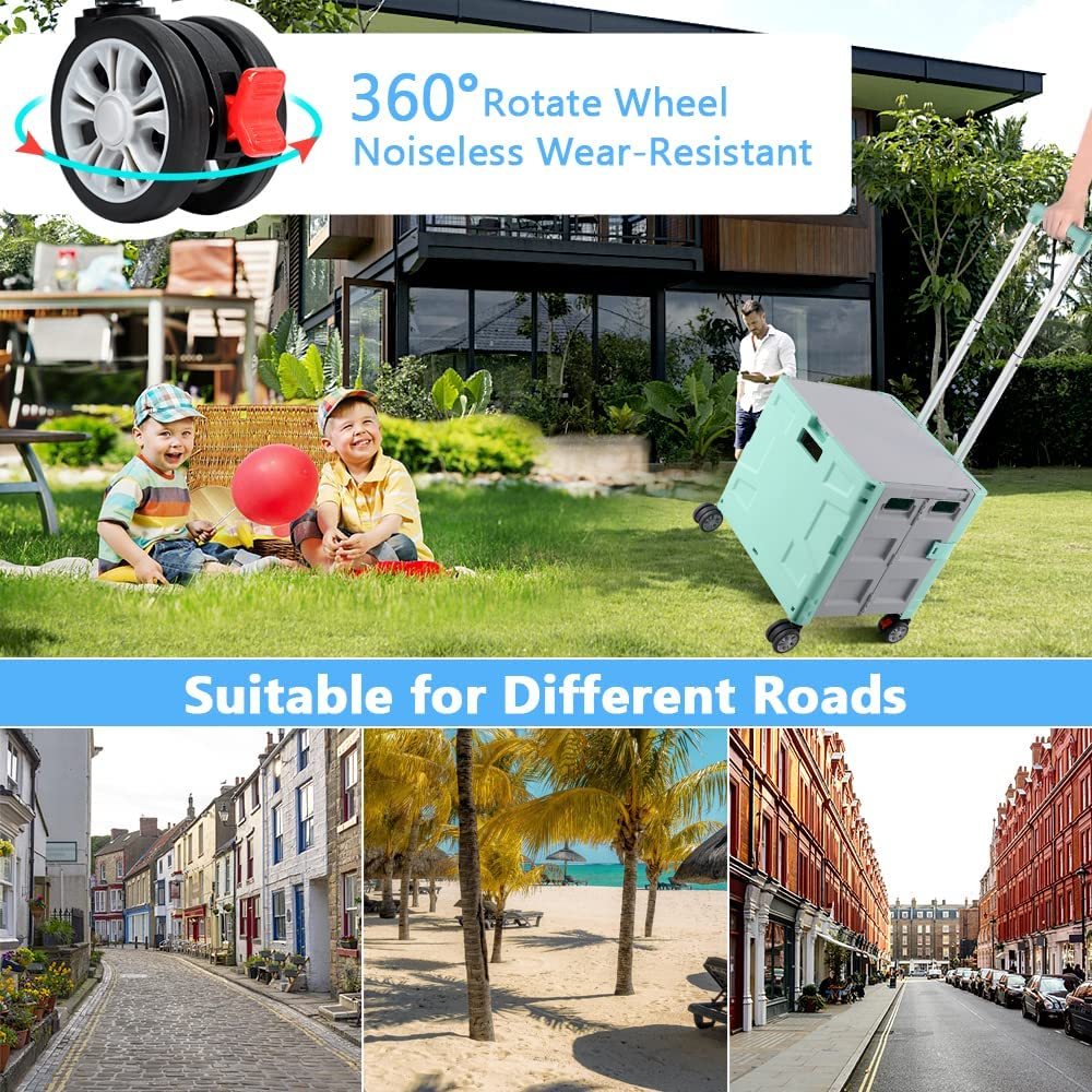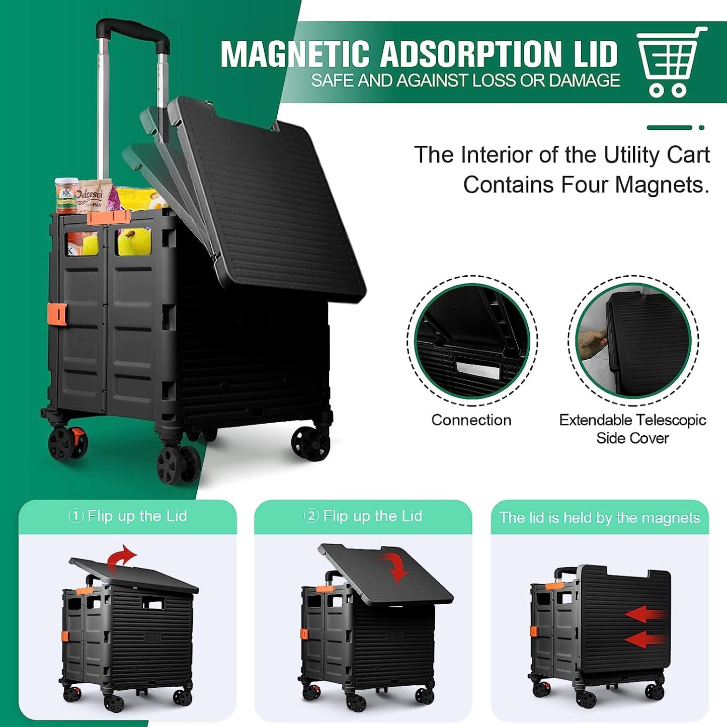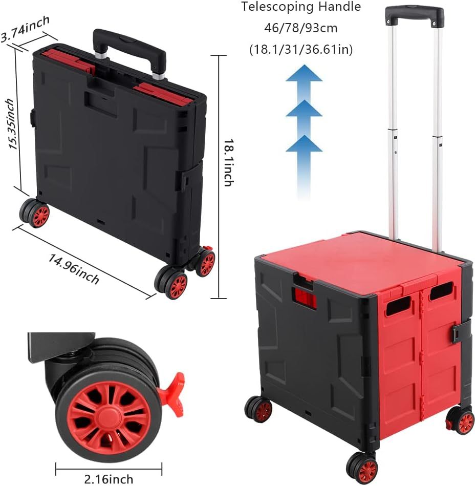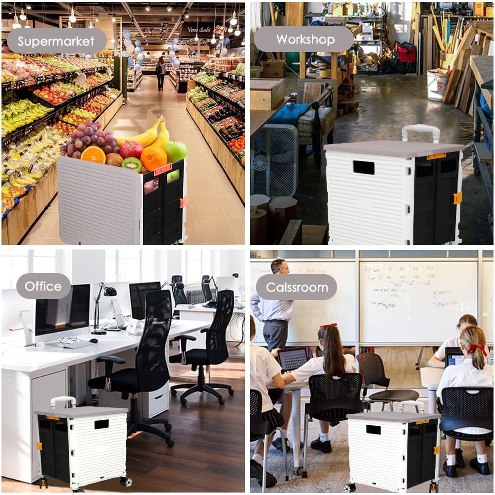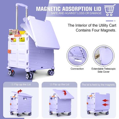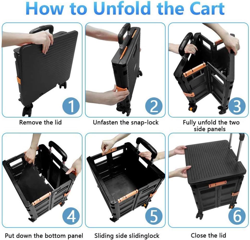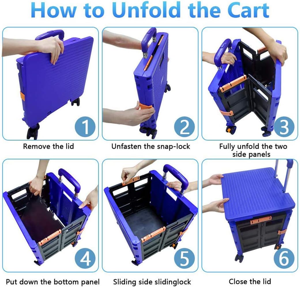 - 【Mango telescópico ajustable y tapa magnética】Diseñamos un mango telescópico ajustable de 3 niveles para nuestro carrito de mano duradero y tapa deslizante magnética extensible que te permiten transportar más diferentes tipos de artículos como libros, archivos, suministros de aula, lavandería o suministros de arte para viajes, compras, picnic o mudanzas, etc.