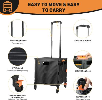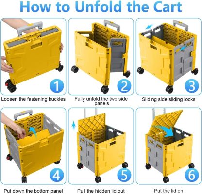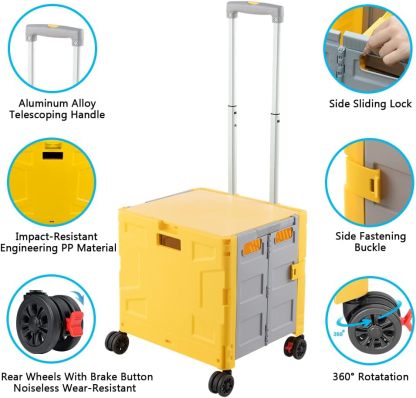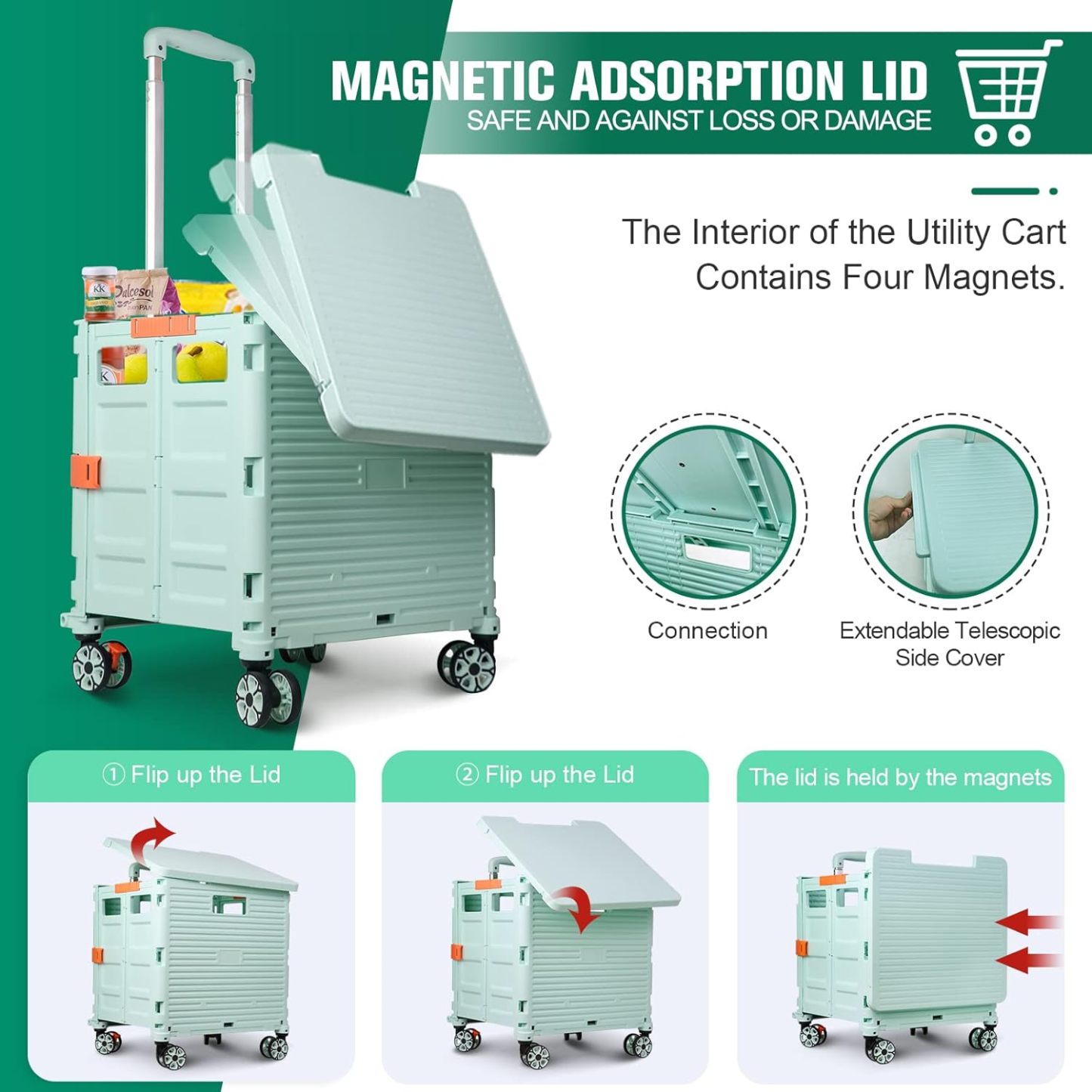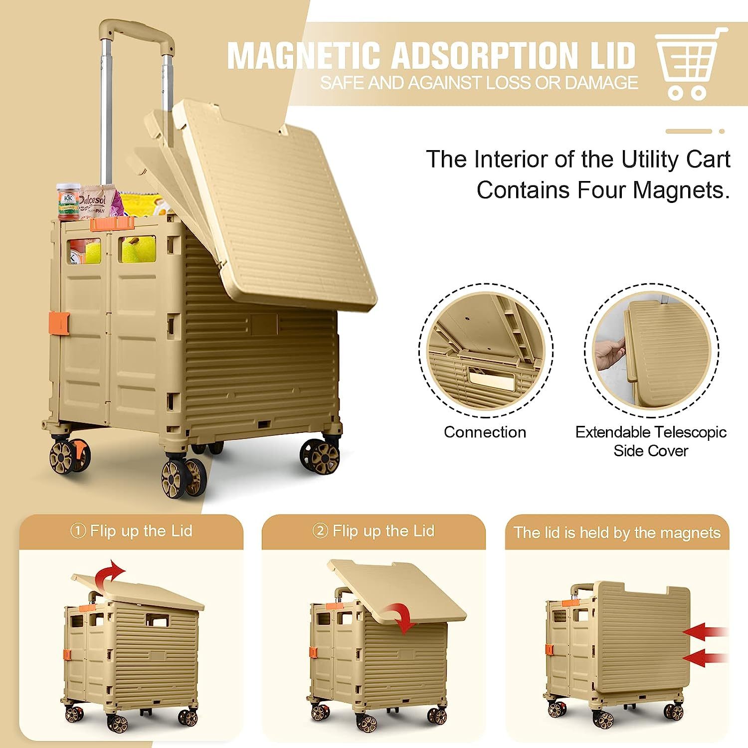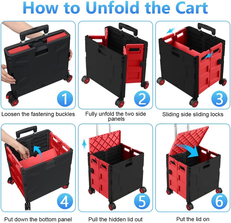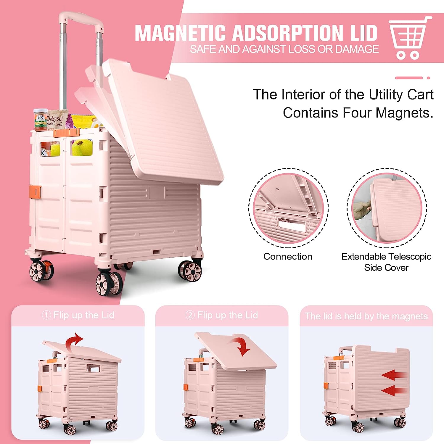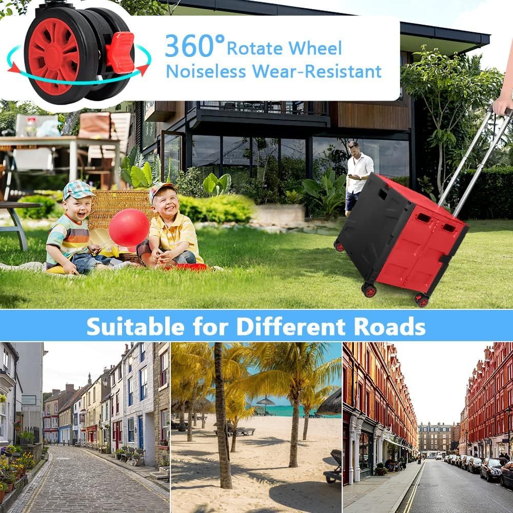 - 【Mango telescópico ajustable y tapa magnética】Diseñamos un mango telescópico ajustable de 3 niveles para nuestro carrito de mano duradero y tapa deslizante magnética extensible que te permiten transportar más diferentes tipos de artículos como libros, archivos, suministros de aula, lavandería o suministros de arte para viajes, compras, picnic o mudanzas, etc.