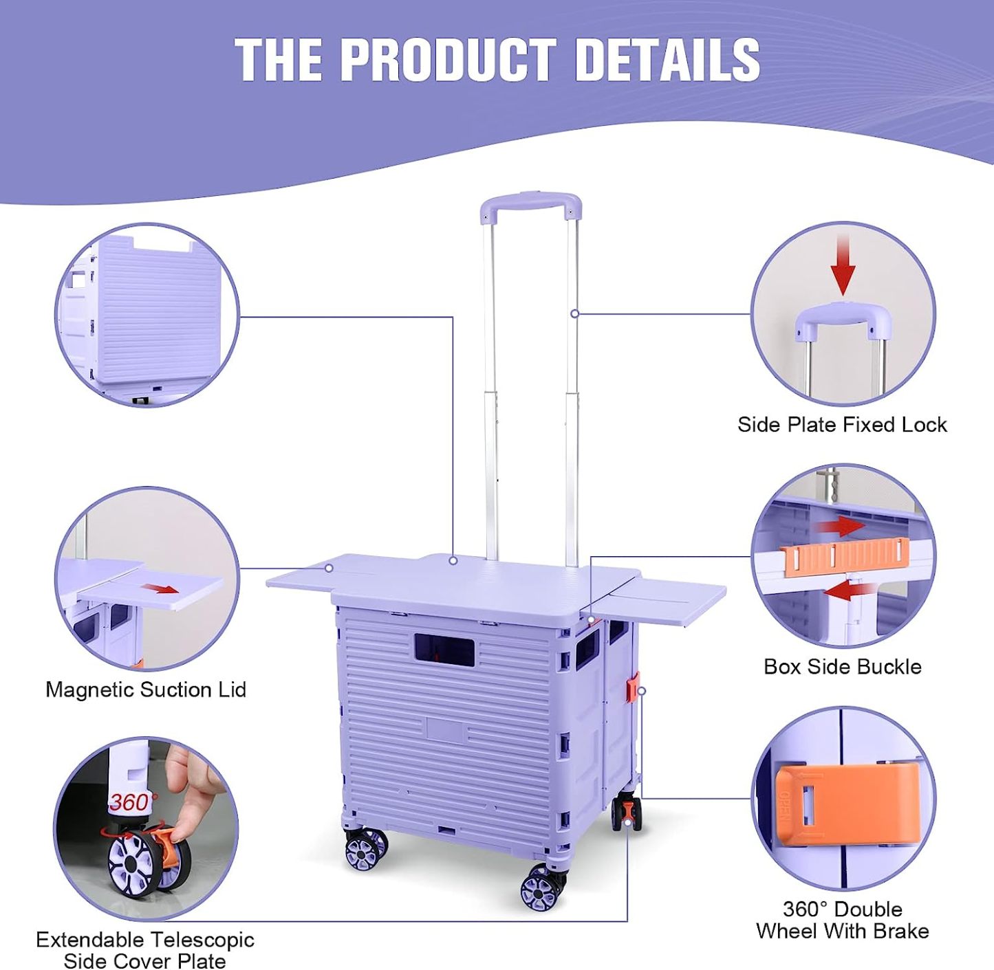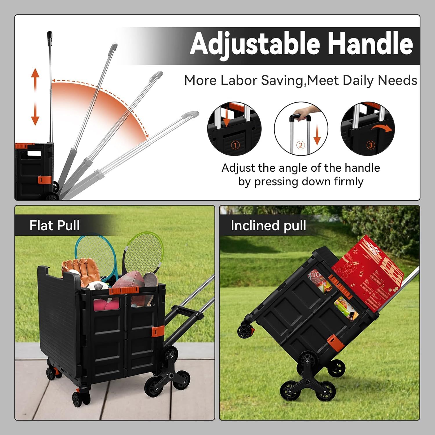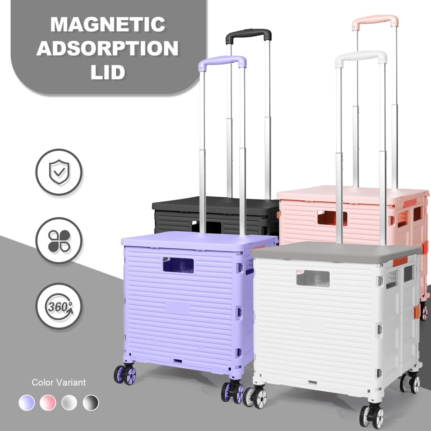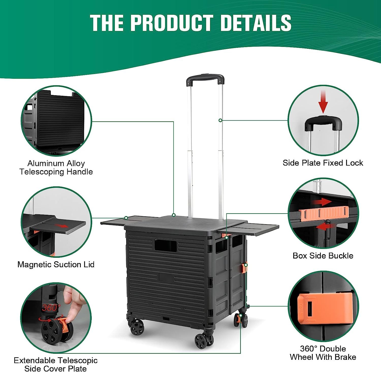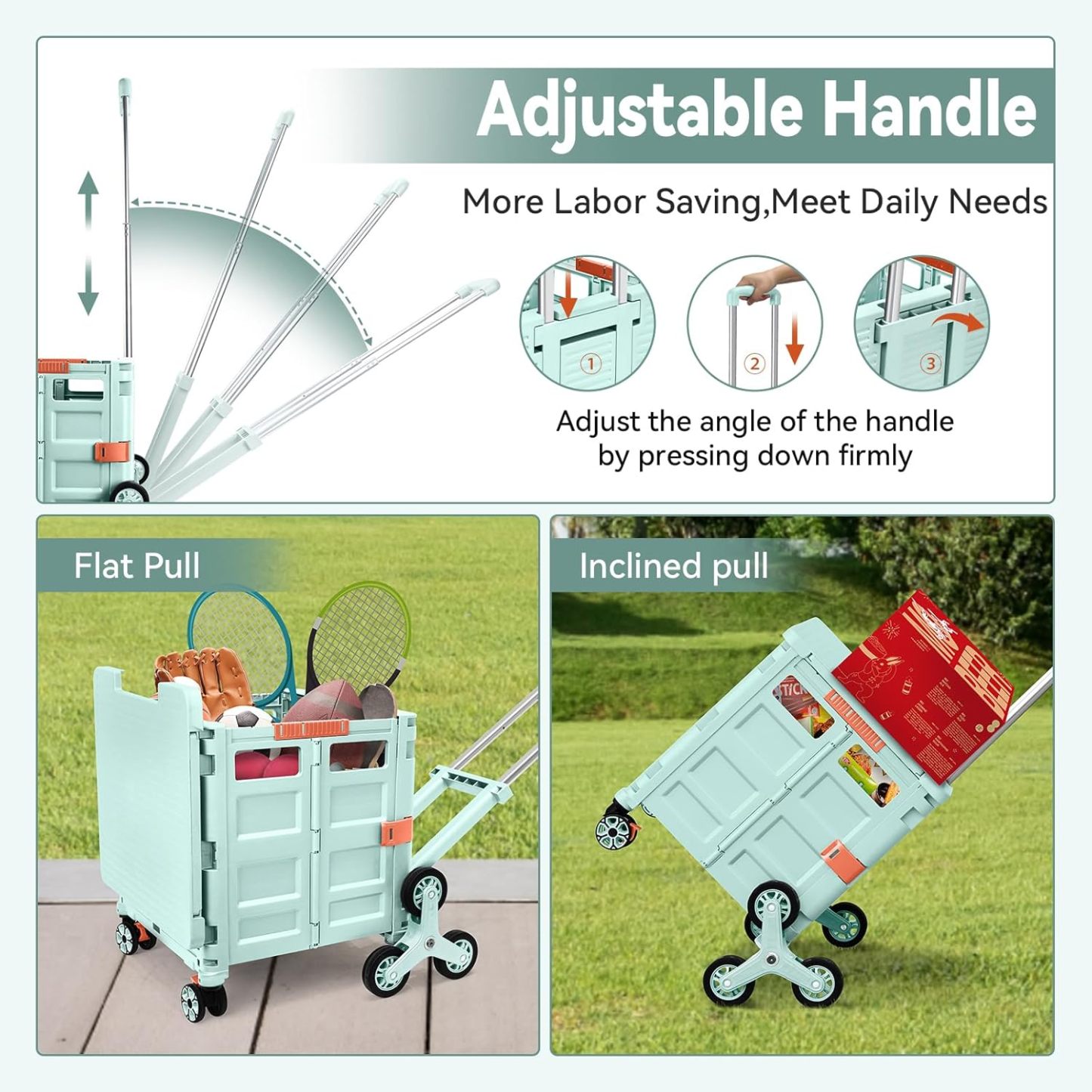 - 【Mango telescópico ajustable y tapa magnética】Diseñamos un mango telescópico ajustable de 3 niveles para nuestro carrito de mano duradero y tapa deslizante magnética extensible que te permiten transportar más diferentes tipos de artículos como libros, archivos, suministros de aula, lavandería o suministros de arte para viajes, compras, picnic o mudanzas, etc.