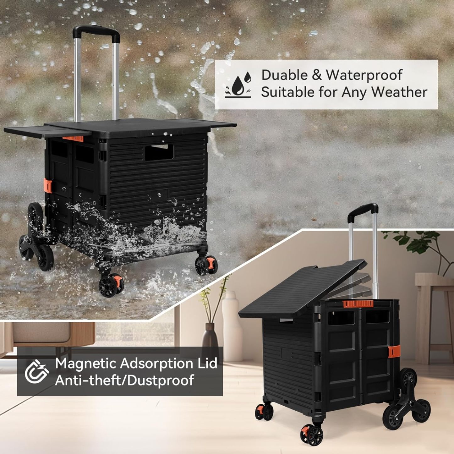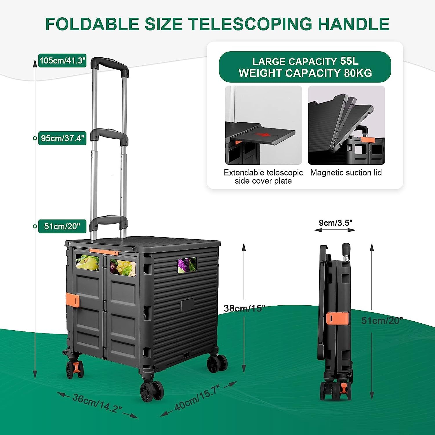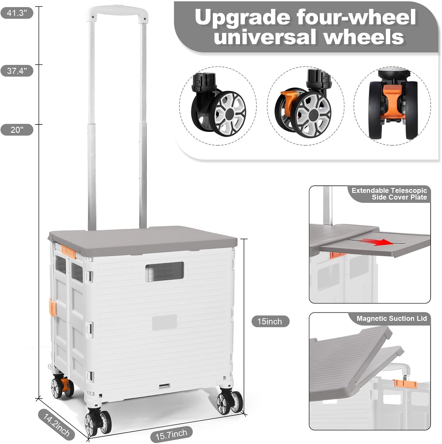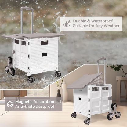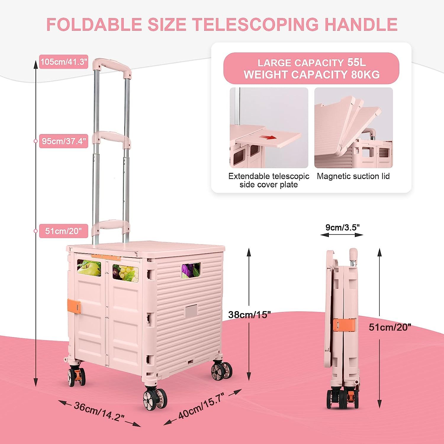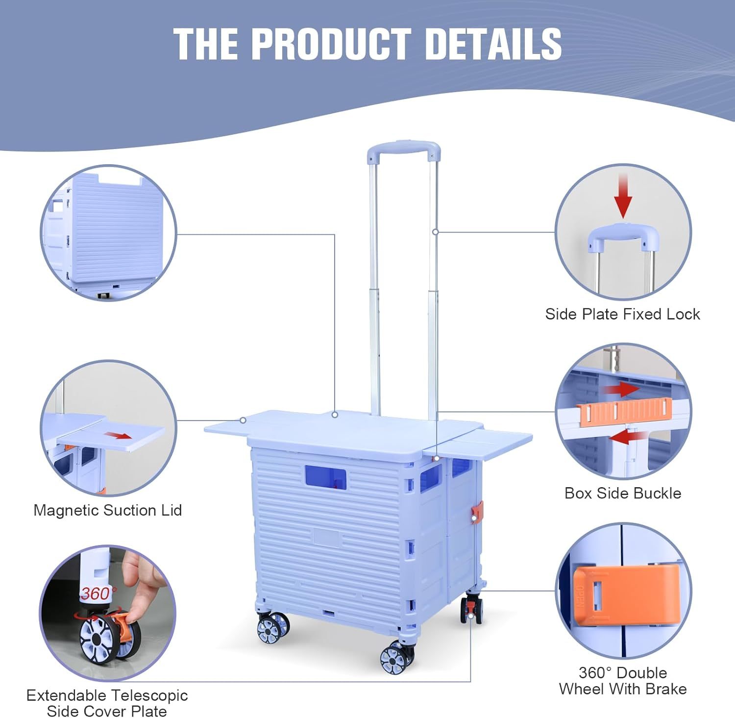 - 【Mango telescópico ajustable y tapa magnética】Diseñamos un mango telescópico ajustable de 3 niveles para nuestro carrito de mano duradero y tapa deslizante magnética extensible que te permiten transportar más diferentes tipos de artículos como libros, archivos, suministros de aula, lavandería o suministros de arte para viajes, compras, picnic o mudanzas, etc.
