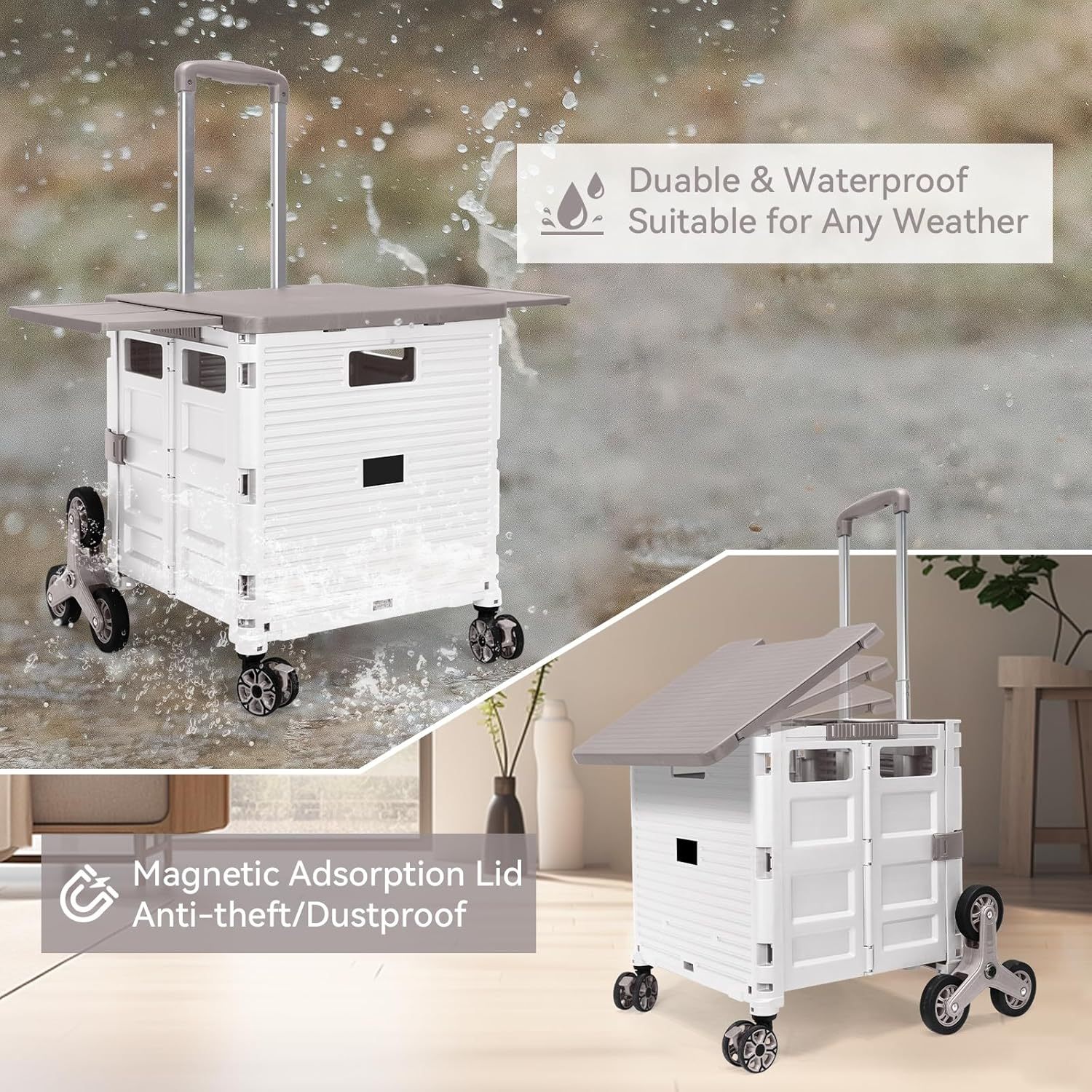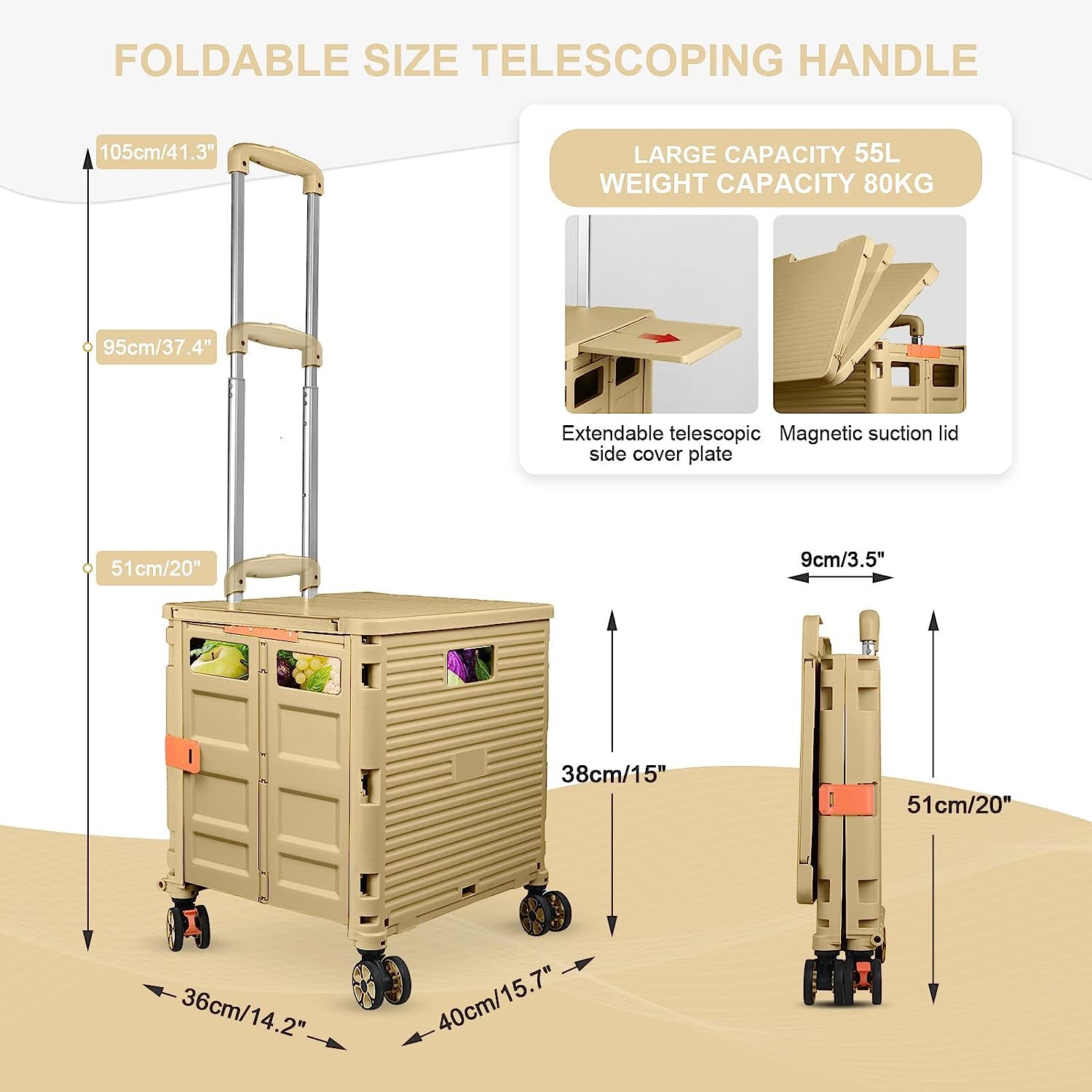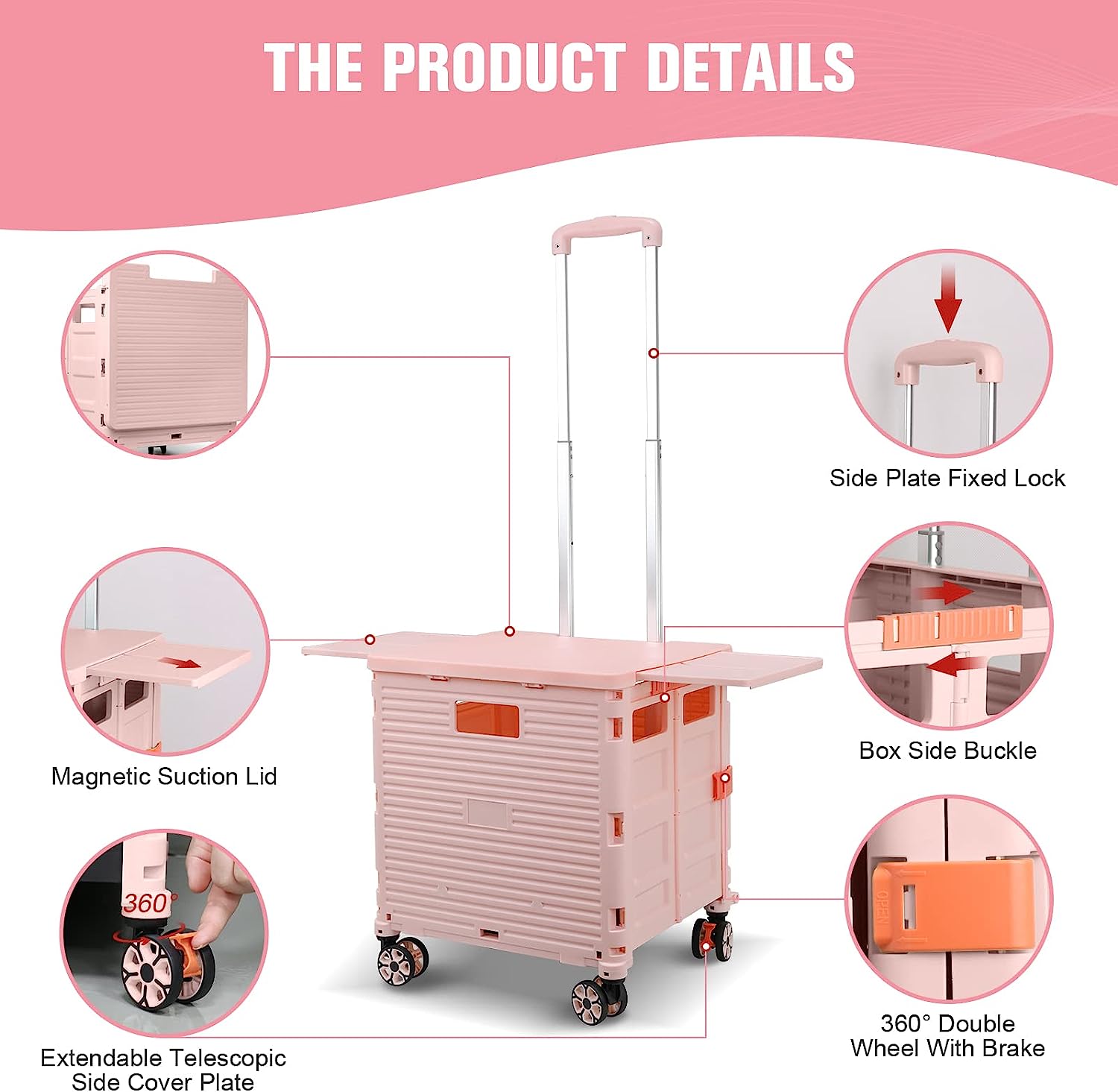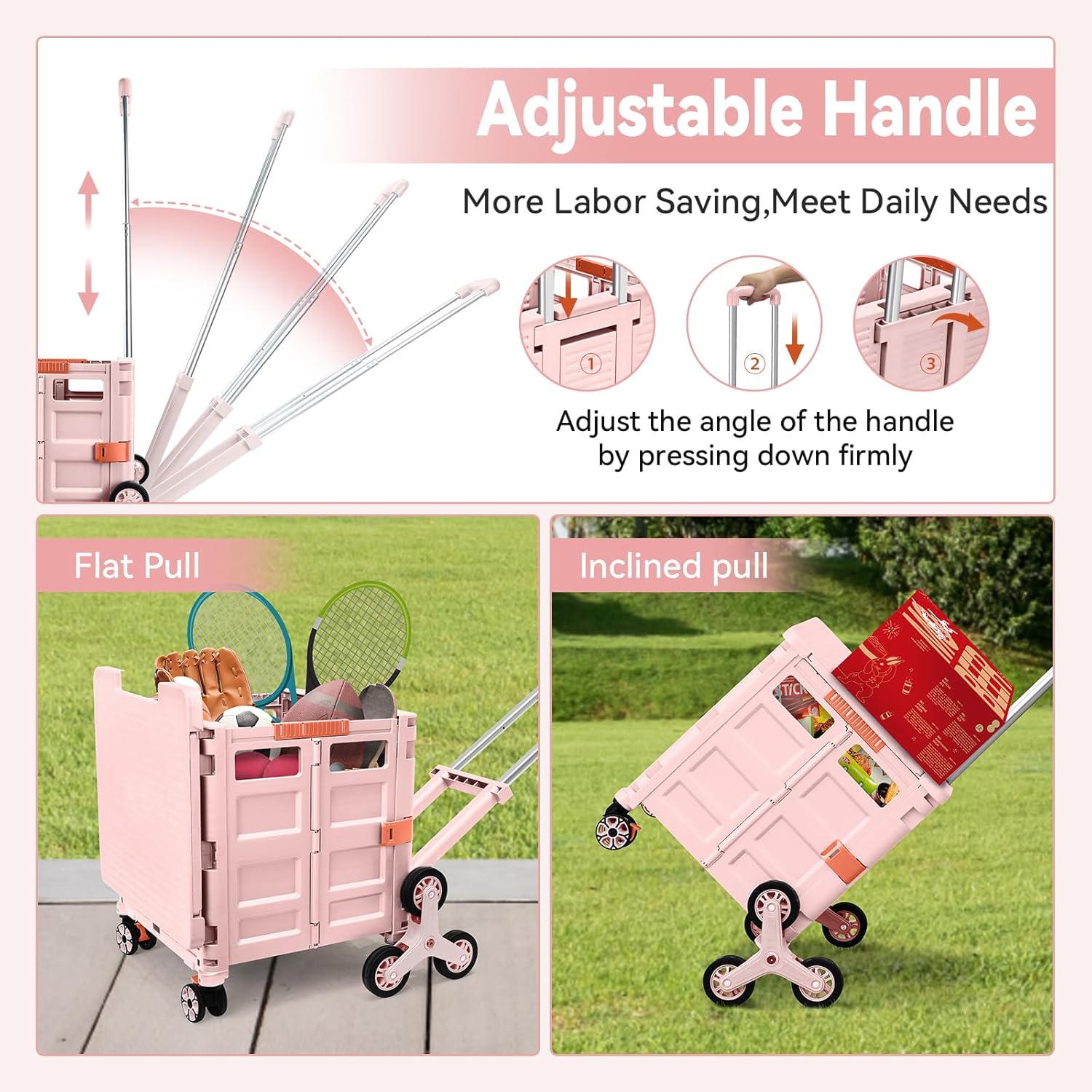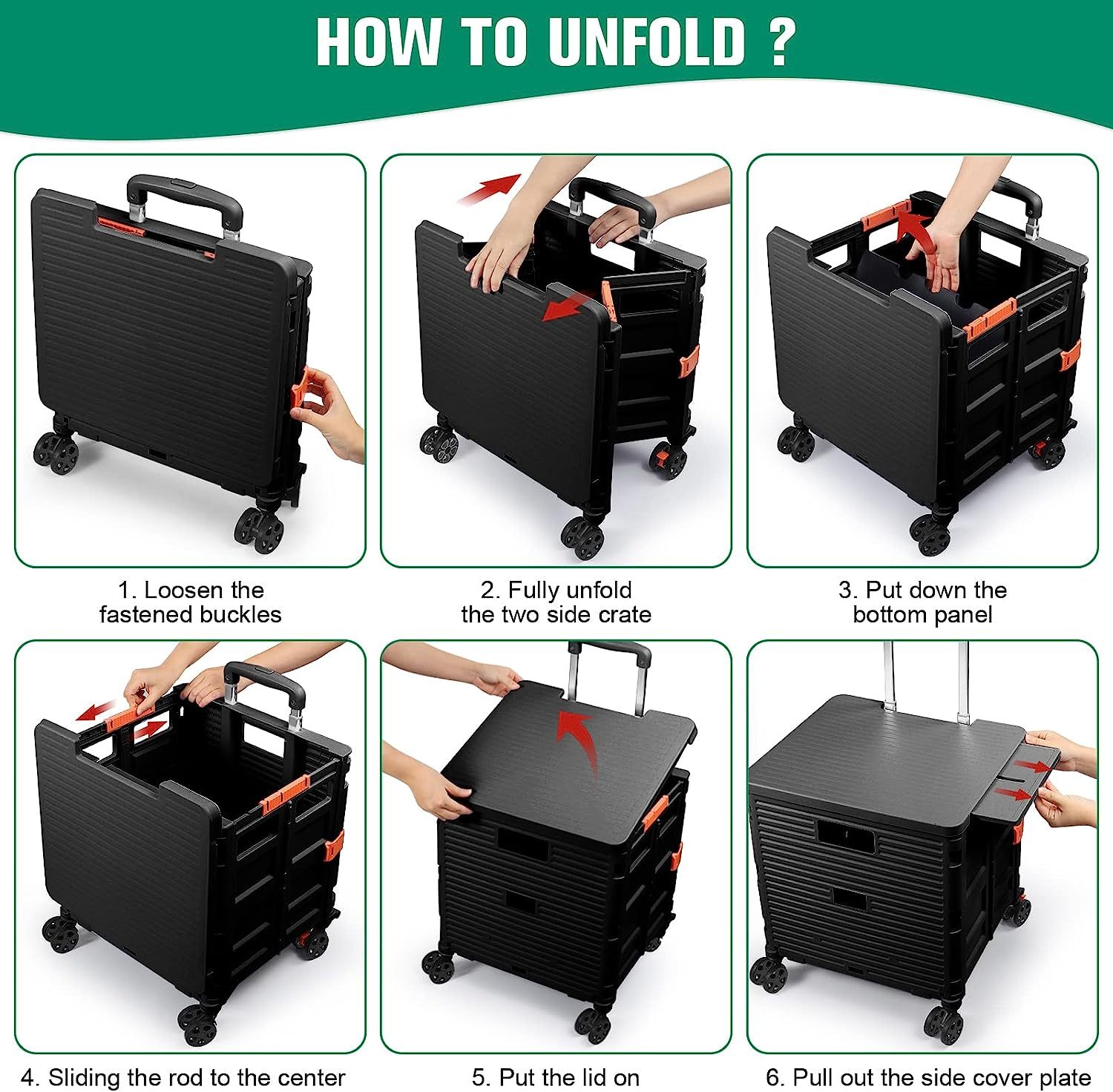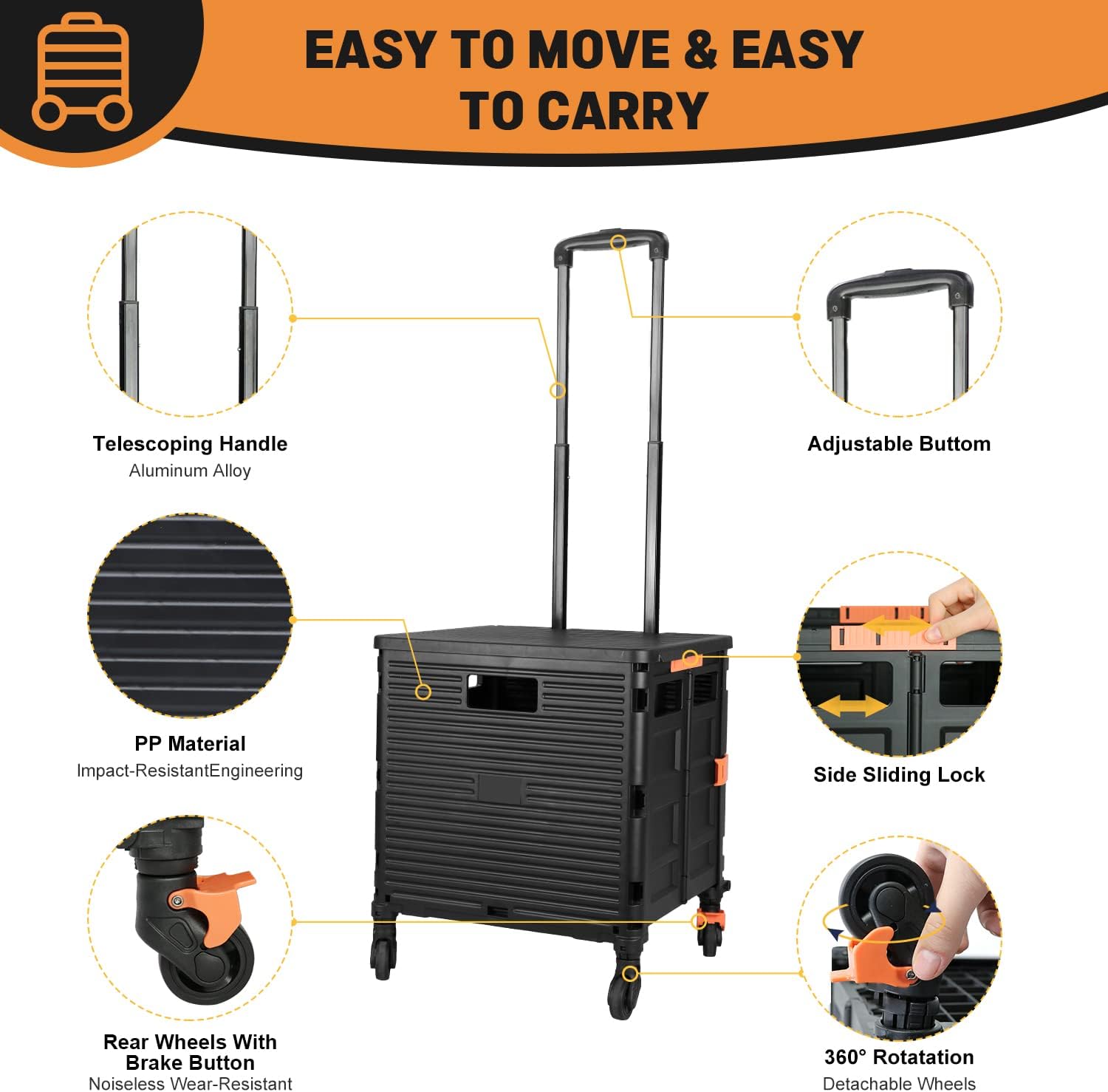 - 【Mango telescópico ajustable y tapa magnética】Diseñamos un mango telescópico ajustable de 3 niveles para nuestro carrito de mano duradero y tapa deslizante magnética extensible que te permiten transportar más diferentes tipos de artículos como libros, archivos, suministros de aula, lavandería o suministros de arte para viajes, compras, picnic o mudanzas, etc.