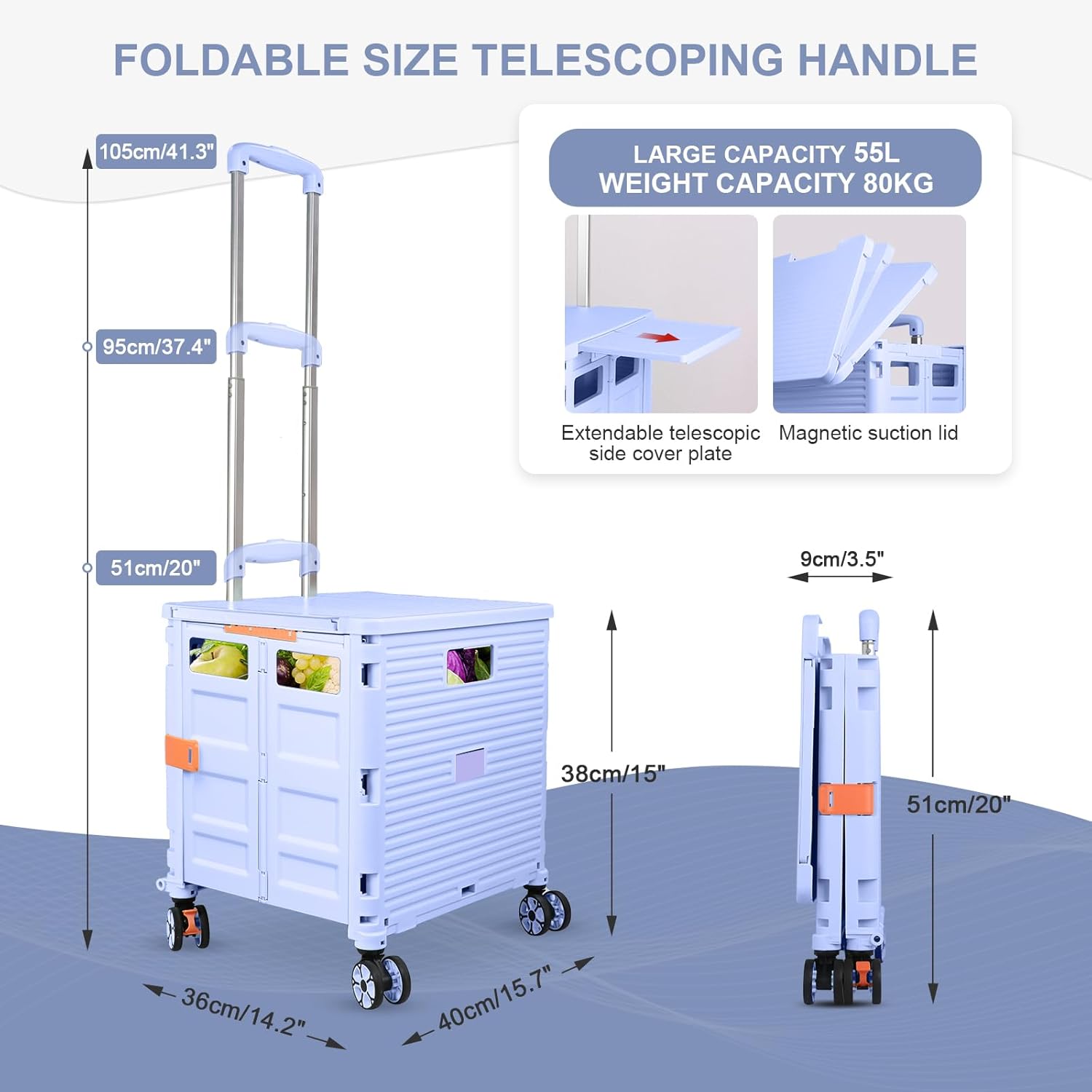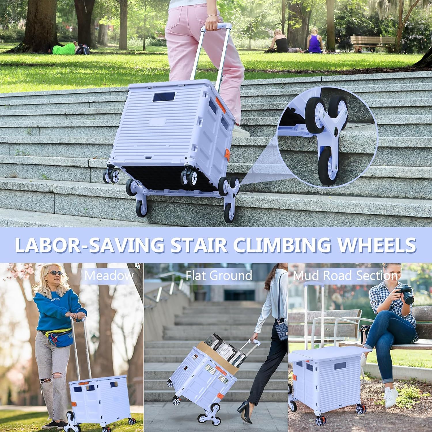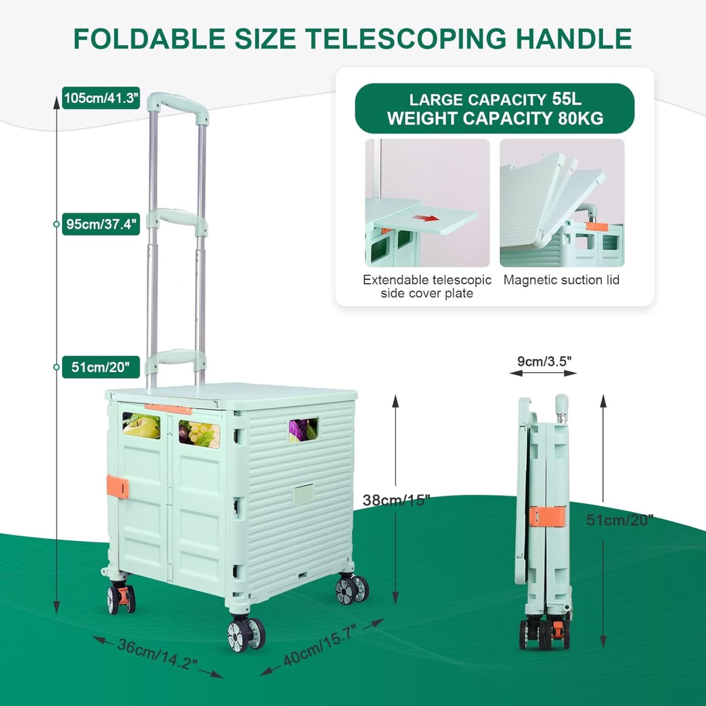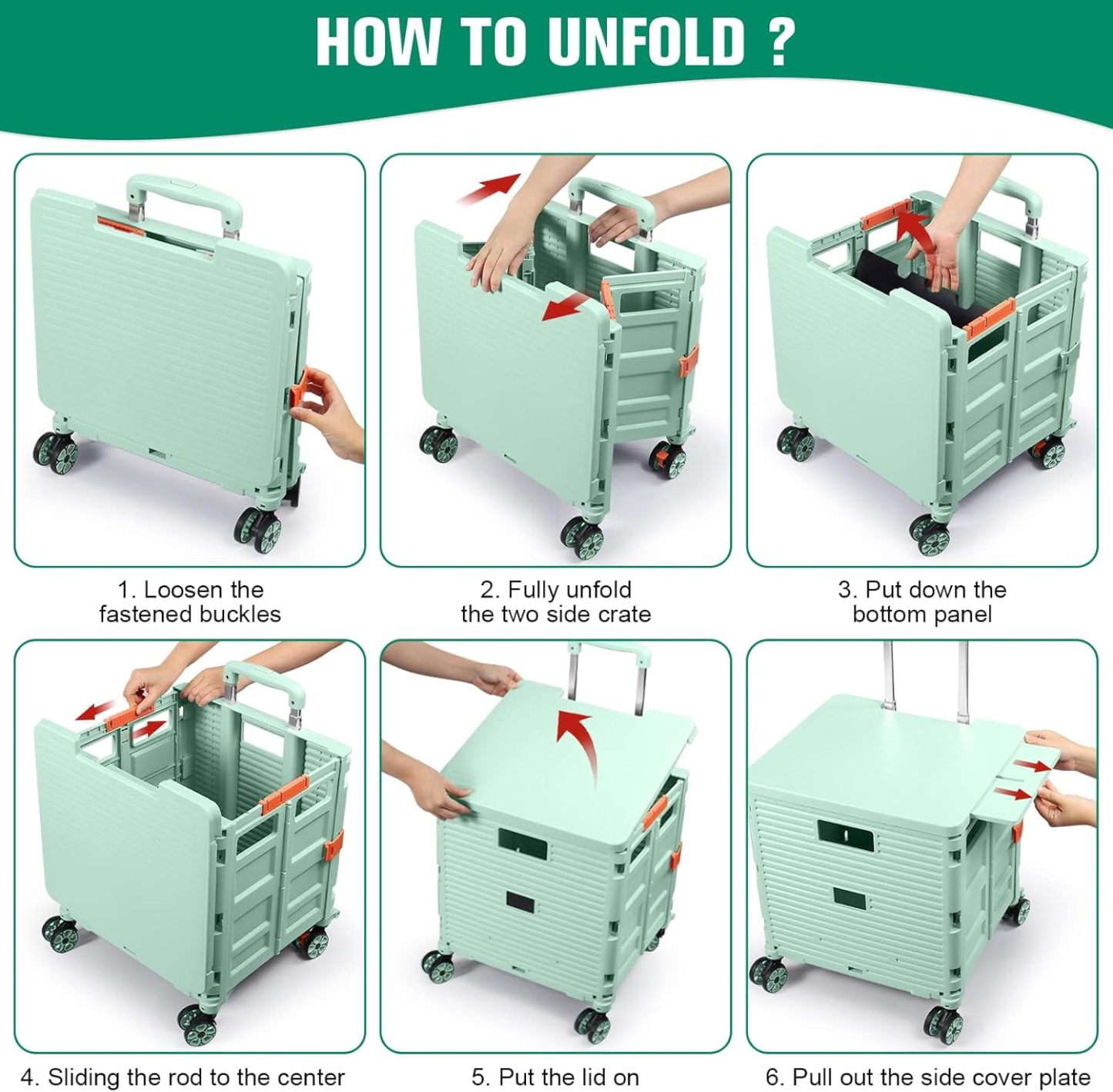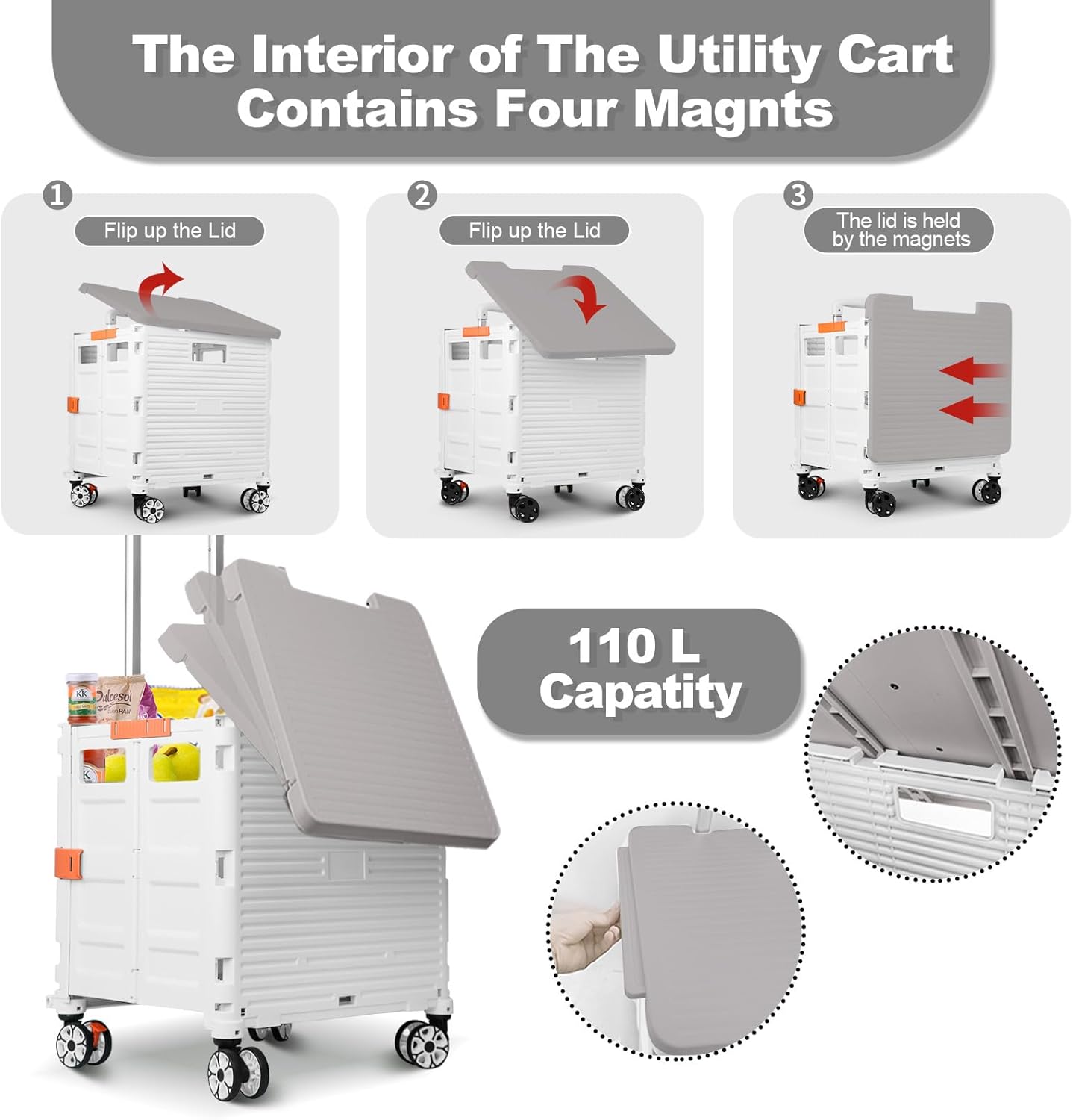 - 【Mango telescópico ajustable y tapa magnética】Diseñamos un mango telescópico ajustable de 3 niveles para nuestro carrito de mano duradero y tapa deslizante magnética extensible que te permiten transportar más diferentes tipos de artículos como libros, archivos, suministros de aula, lavandería o suministros de arte para viajes, compras, picnic o mudanzas, etc.