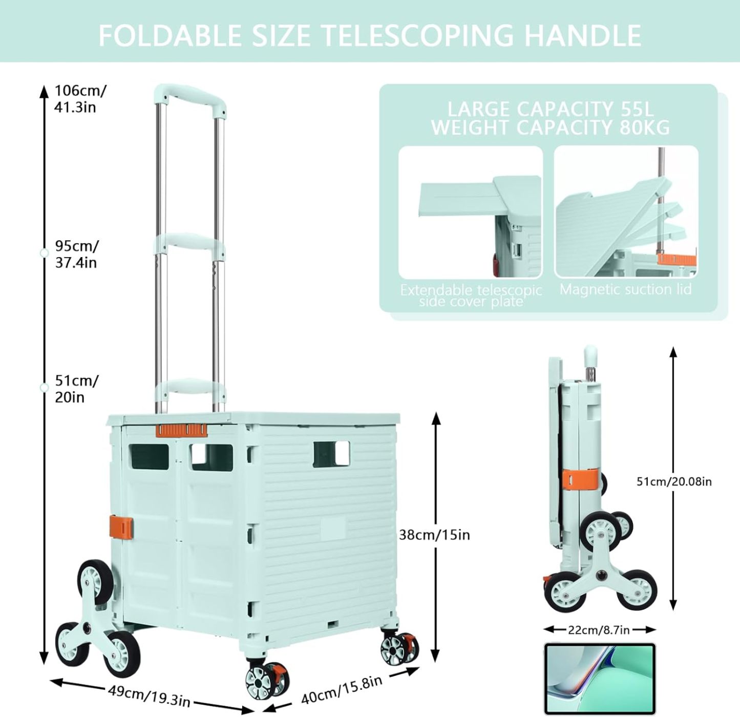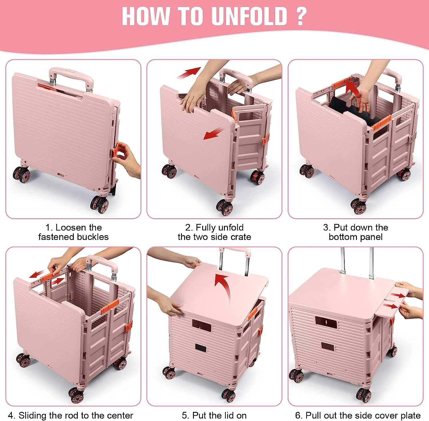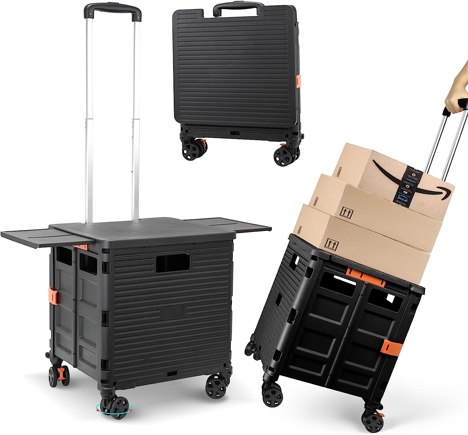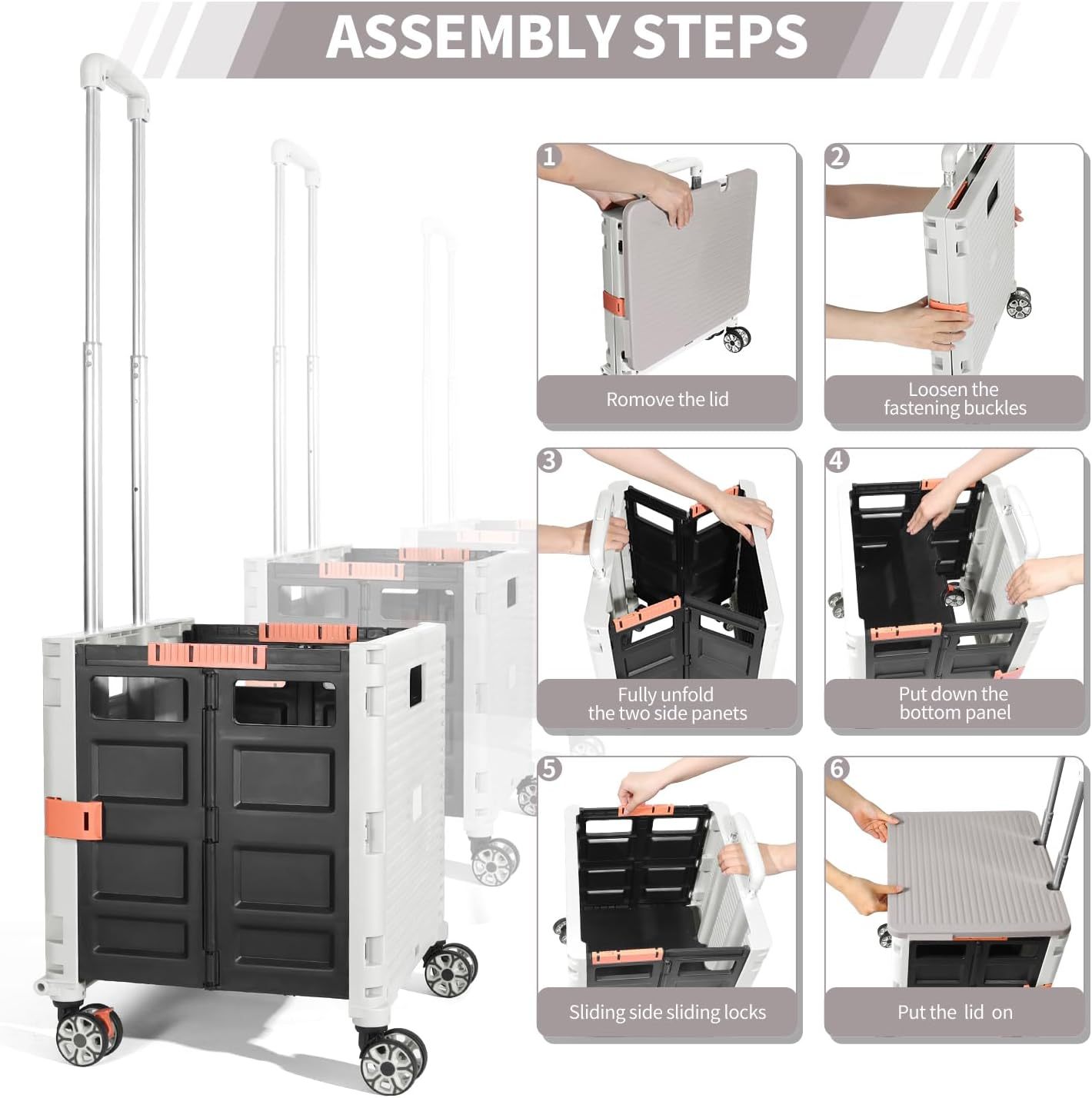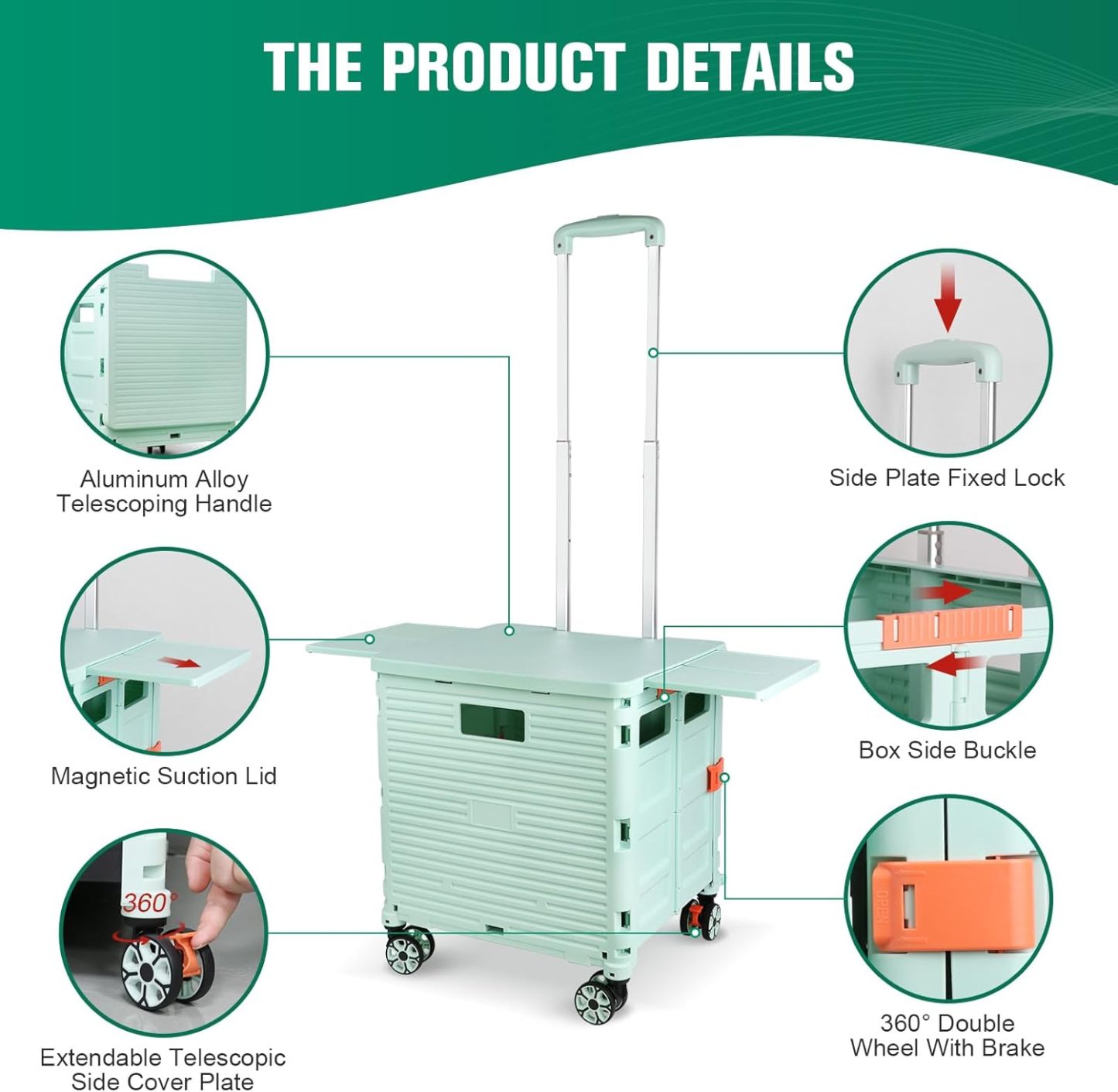 - 【Mango telescópico ajustable y tapa magnética】Diseñamos un mango telescópico ajustable de 3 niveles para nuestro carrito de mano duradero y tapa deslizante magnética extensible que te permiten transportar más diferentes tipos de artículos como libros, archivos, suministros de aula, lavandería o suministros de arte para viajes, compras, picnic o mudanzas, etc.