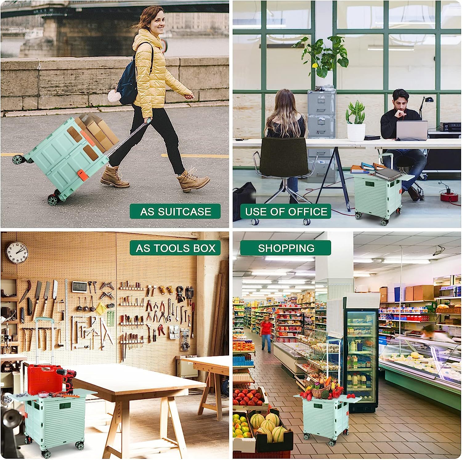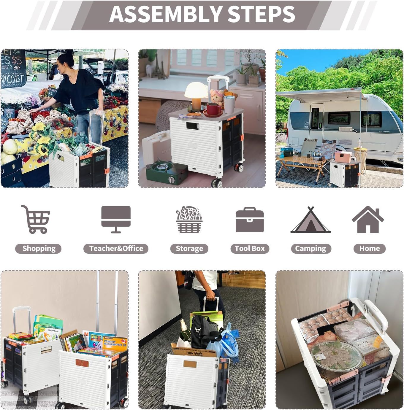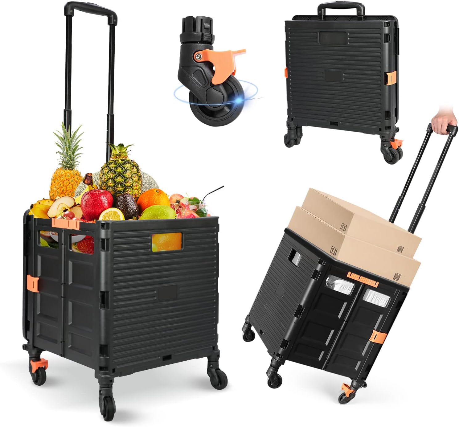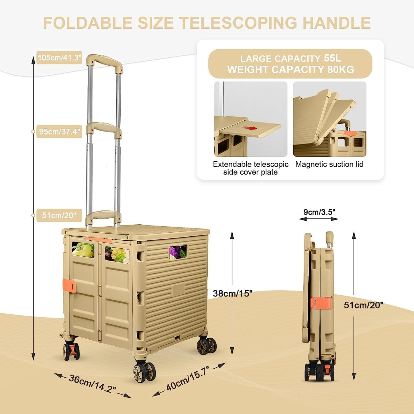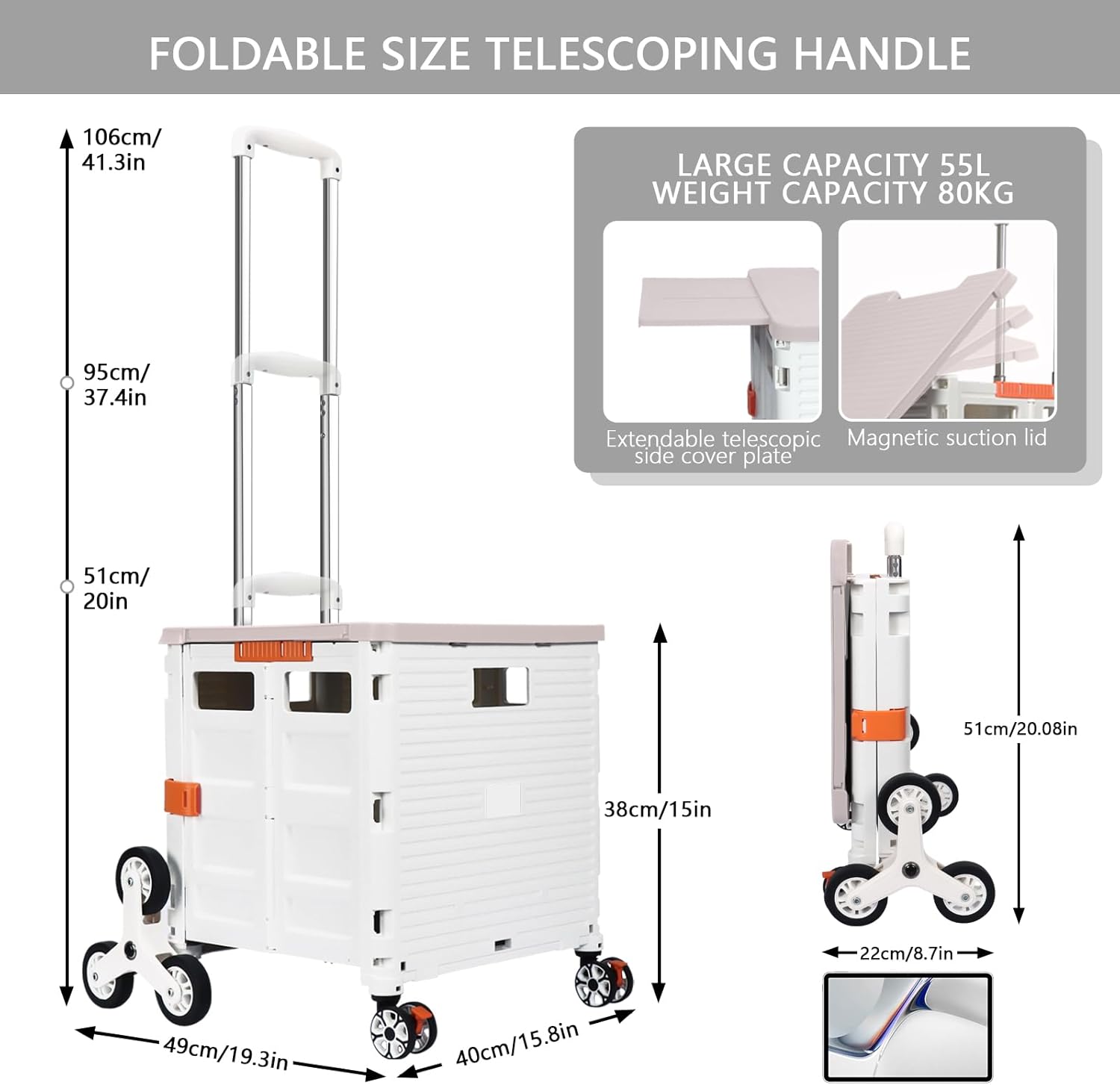 - 【Mango telescópico ajustable y tapa magnética】Diseñamos un mango telescópico ajustable de 3 niveles para nuestro carrito de mano duradero y tapa deslizante magnética extensible que te permiten transportar más diferentes tipos de artículos como libros, archivos, suministros de aula, lavandería o suministros de arte para viajes, compras, picnic o mudanzas, etc.
