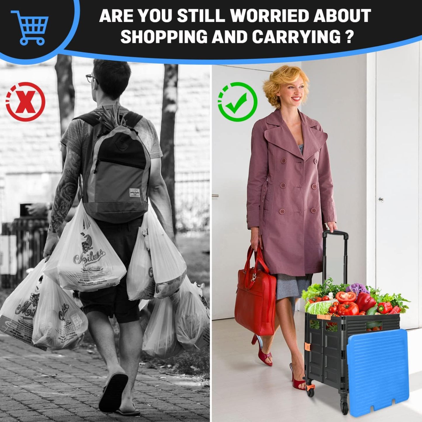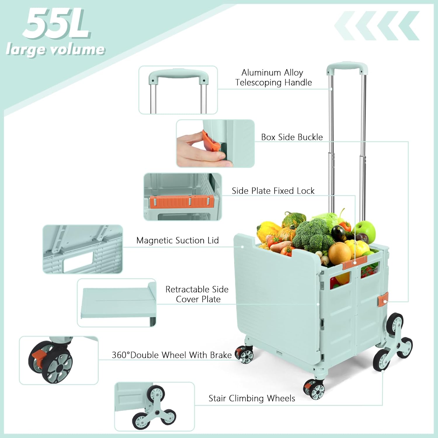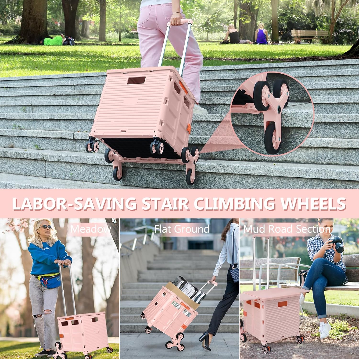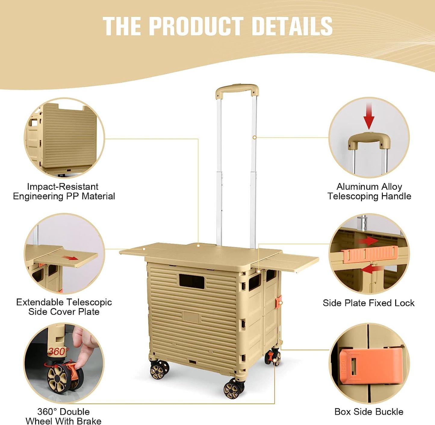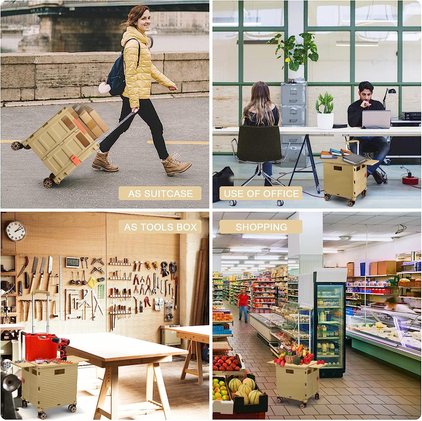 - 【Mango telescópico ajustable y tapa magnética】Diseñamos un mango telescópico ajustable de 3 niveles para nuestro carrito de mano duradero y tapa deslizante magnética extensible que te permiten transportar más diferentes tipos de artículos como libros, archivos, suministros de aula, lavandería o suministros de arte para viajes, compras, picnic o mudanzas, etc.
