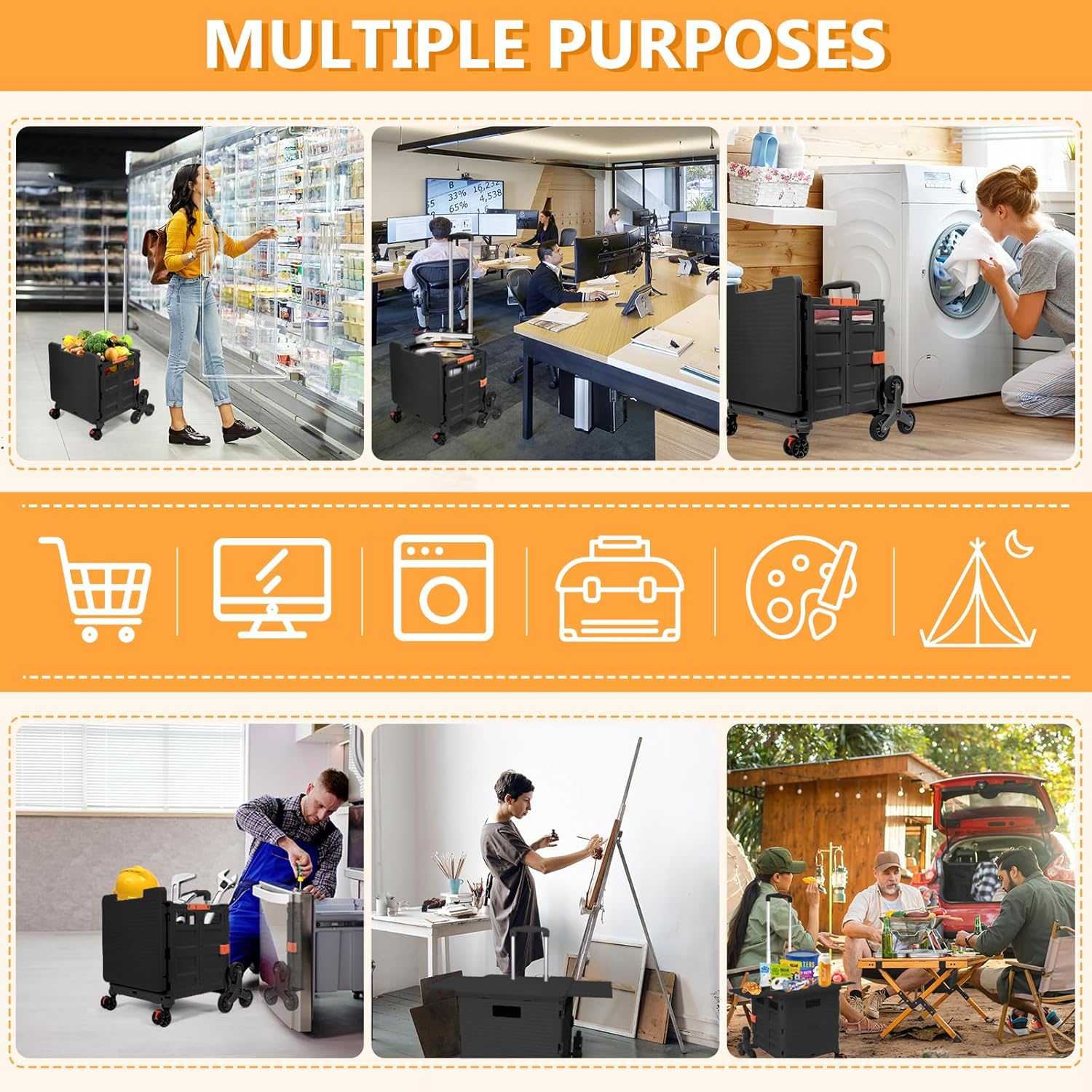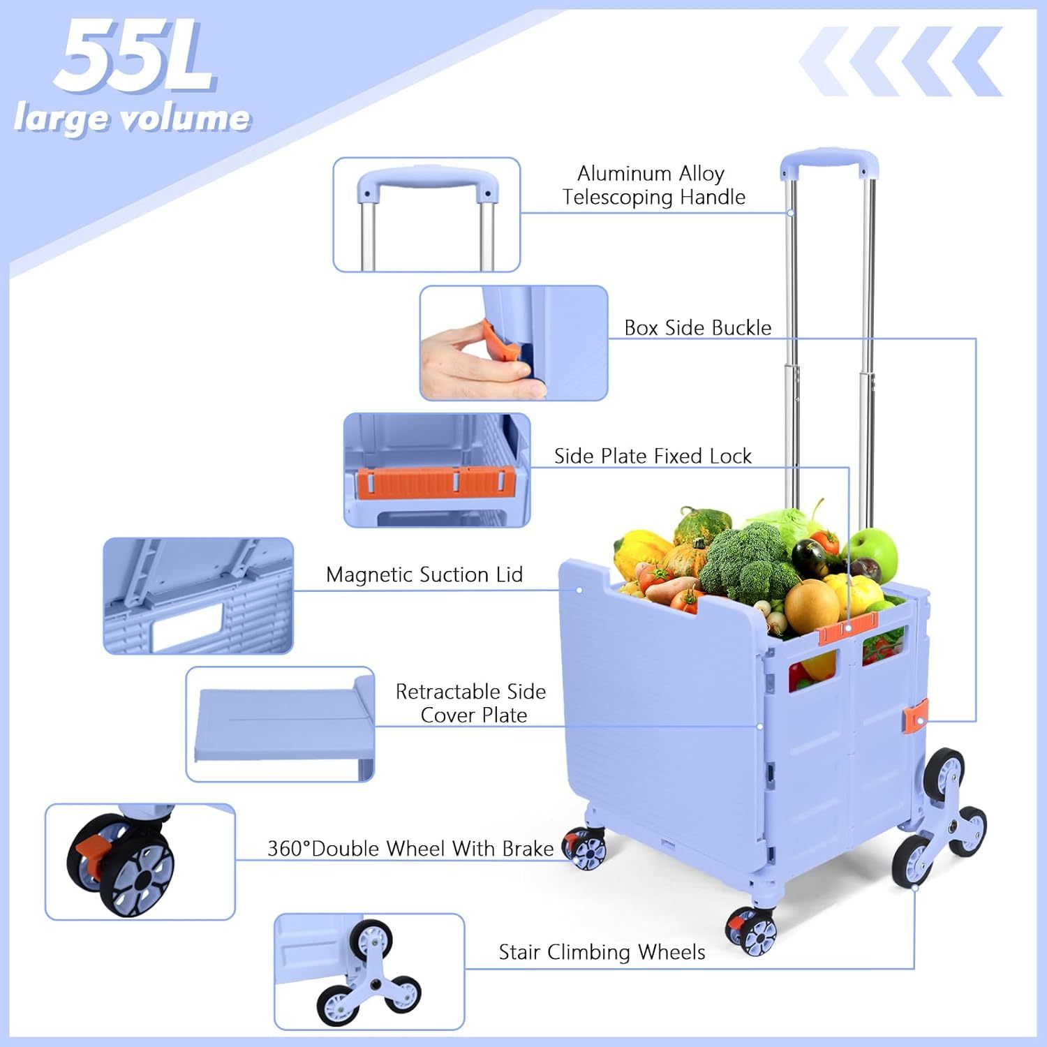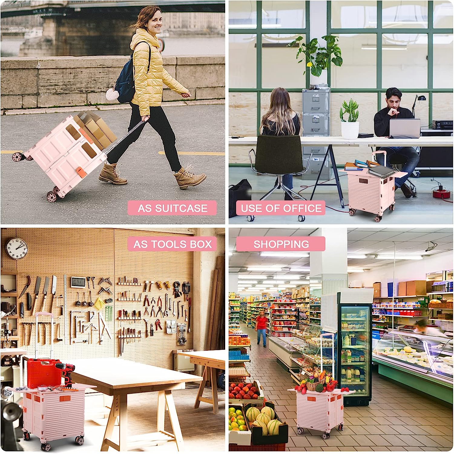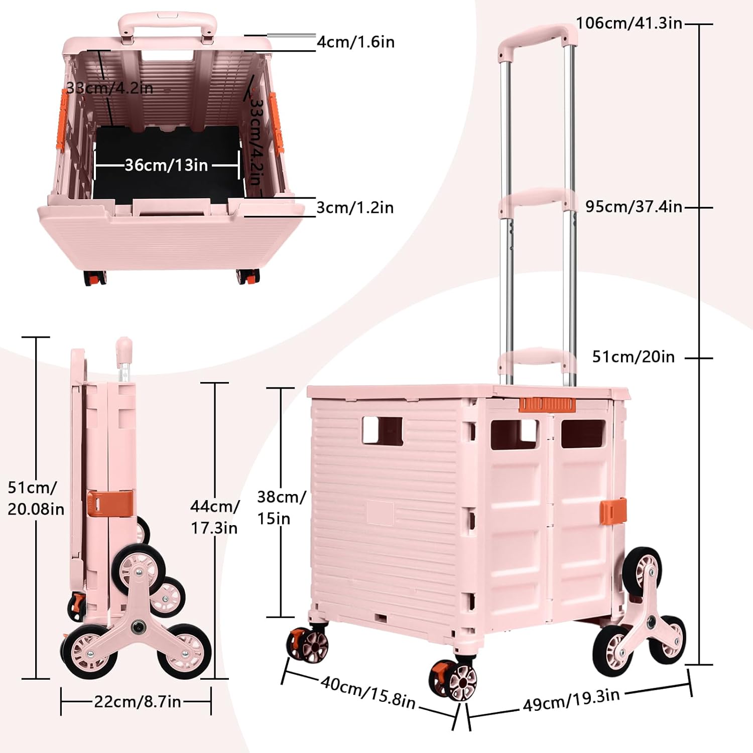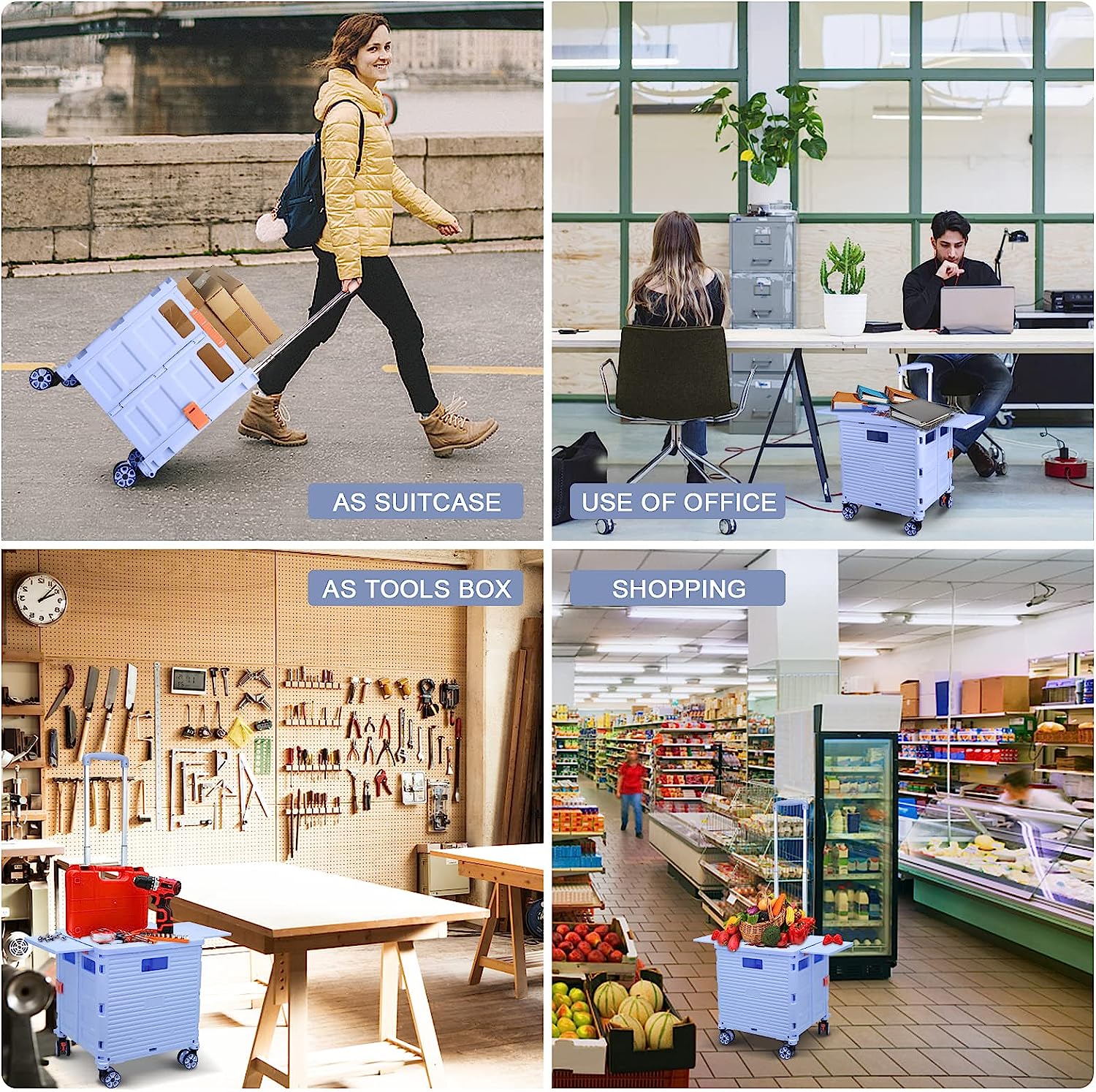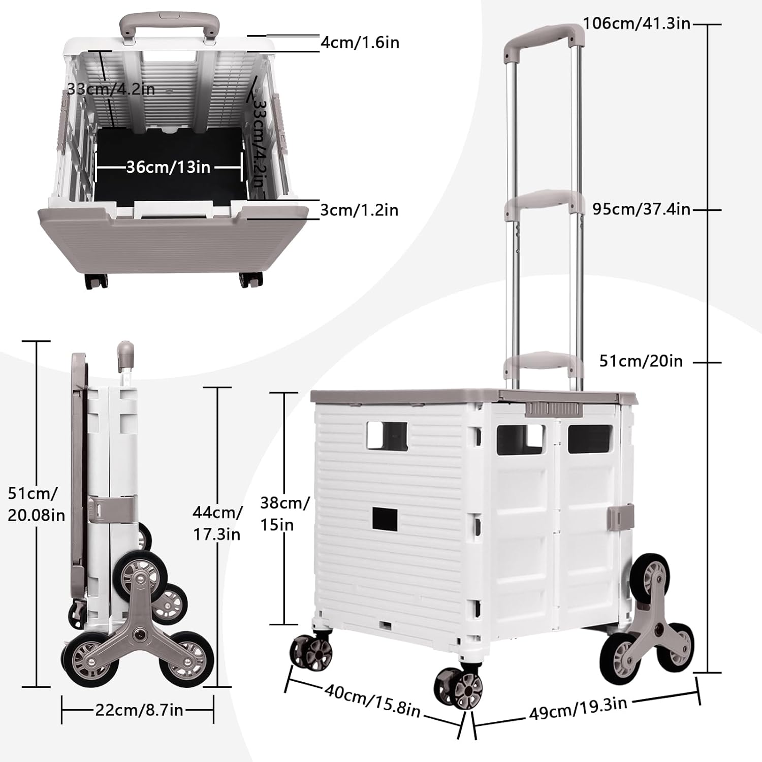 - 【Mango telescópico ajustable y tapa magnética】Diseñamos un mango telescópico ajustable de 3 niveles para nuestro carrito de mano duradero y tapa deslizante magnética extensible que te permiten transportar más diferentes tipos de artículos como libros, archivos, suministros de aula, lavandería o suministros de arte para viajes, compras, picnic o mudanzas, etc.