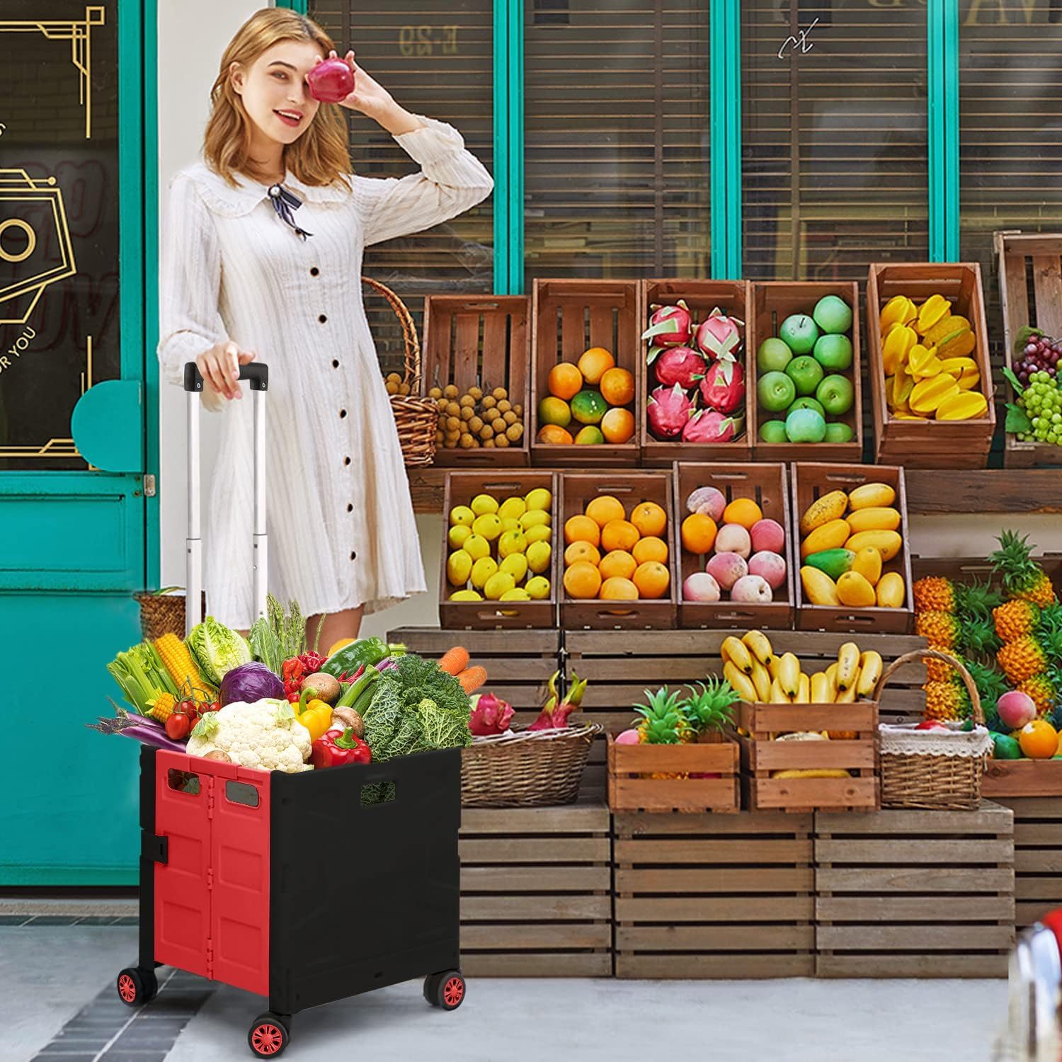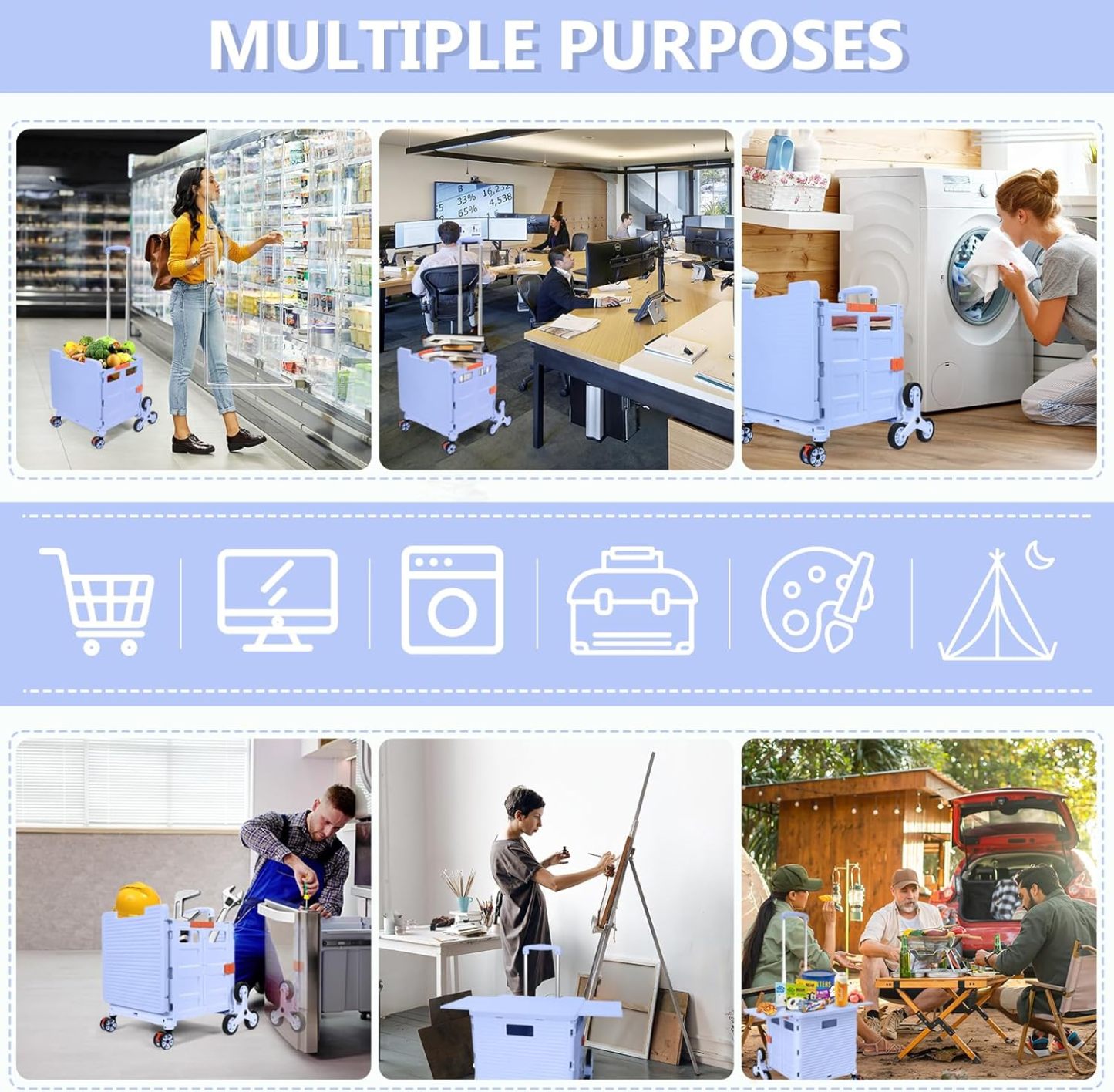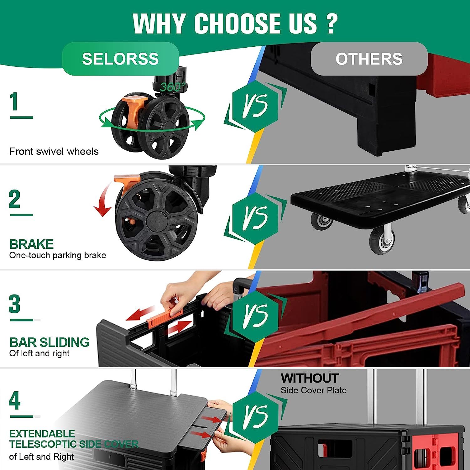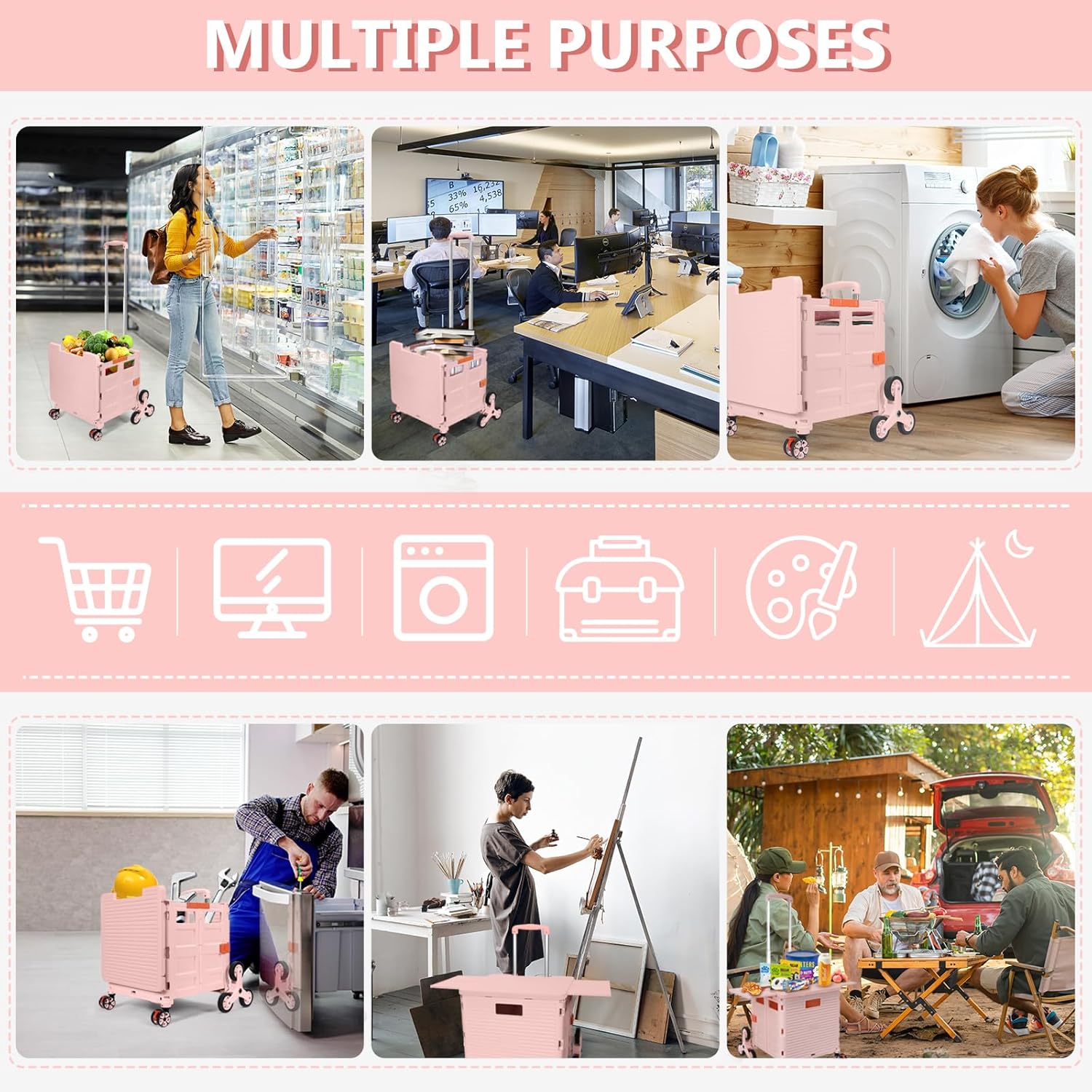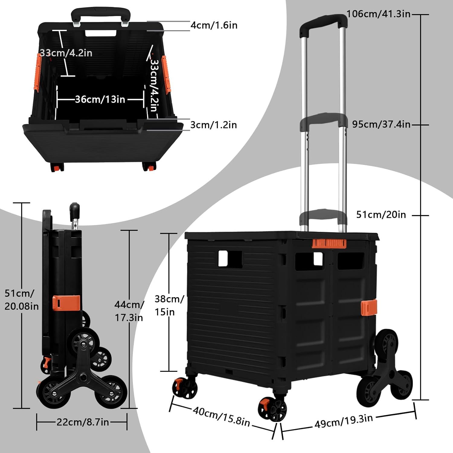 - 【Mango telescópico ajustable y tapa magnética】Diseñamos un mango telescópico ajustable de 3 niveles para nuestro carrito de mano duradero y tapa deslizante magnética extensible que te permiten transportar más diferentes tipos de artículos como libros, archivos, suministros de aula, lavandería o suministros de arte para viajes, compras, picnic o mudanzas, etc.