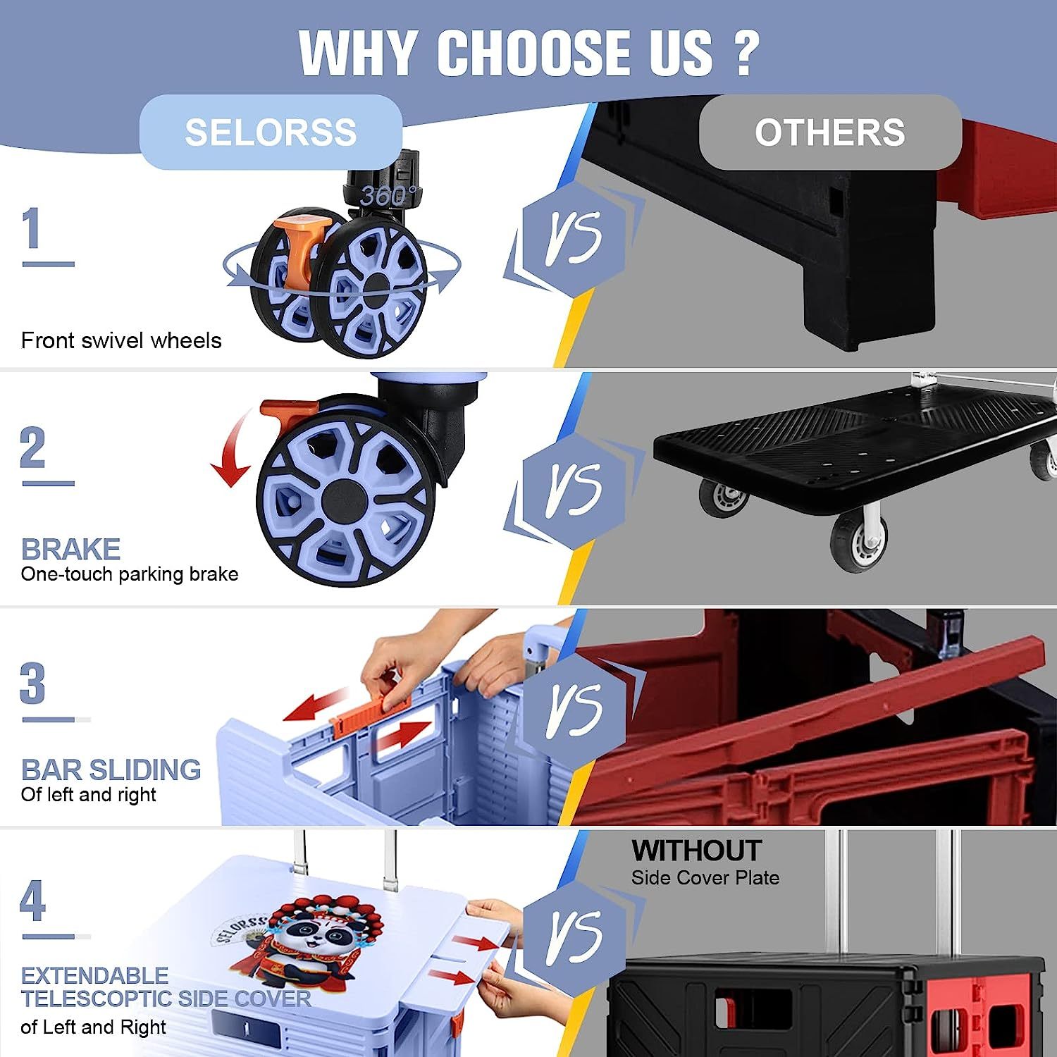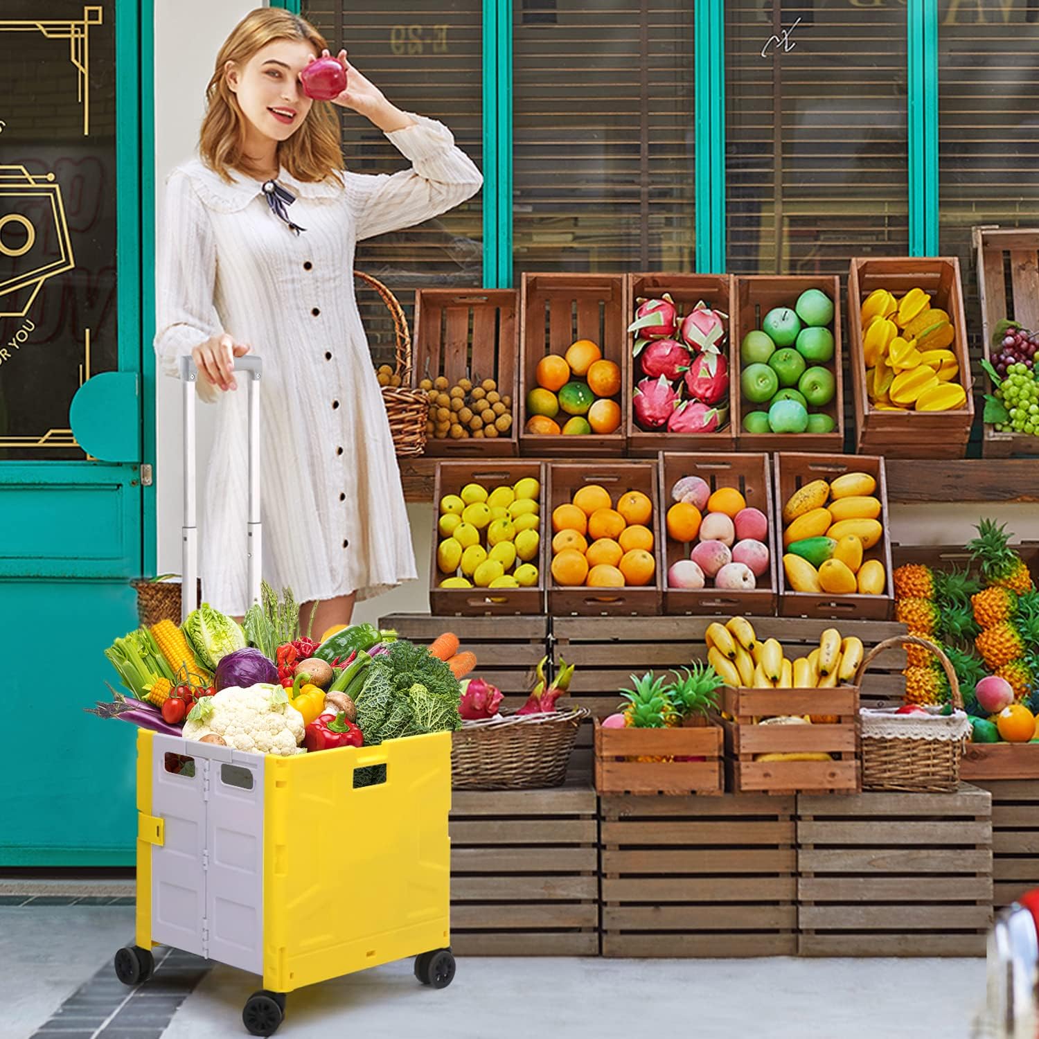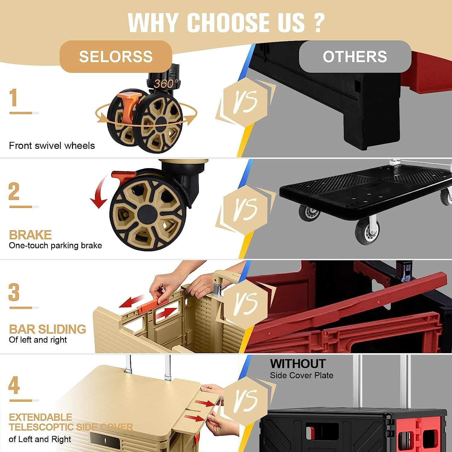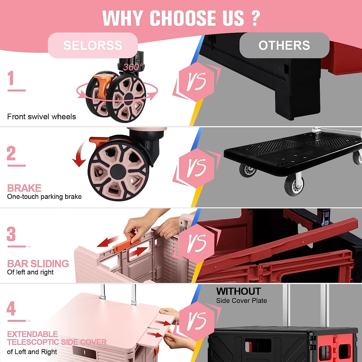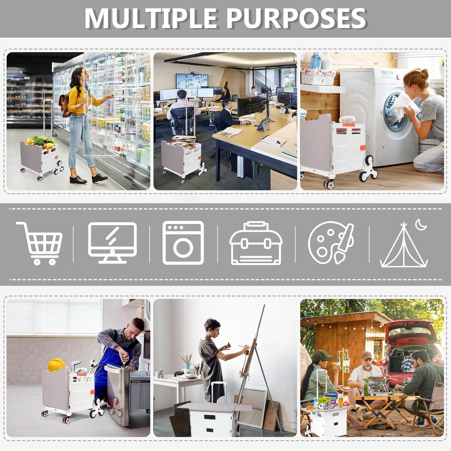 - 【Mango telescópico ajustable y tapa magnética】Diseñamos un mango telescópico ajustable de 3 niveles para nuestro carrito de mano duradero y tapa deslizante magnética extensible que te permiten transportar más diferentes tipos de artículos como libros, archivos, suministros de aula, lavandería o suministros de arte para viajes, compras, picnic o mudanzas, etc.