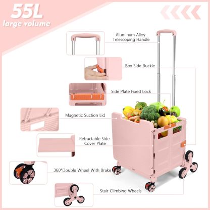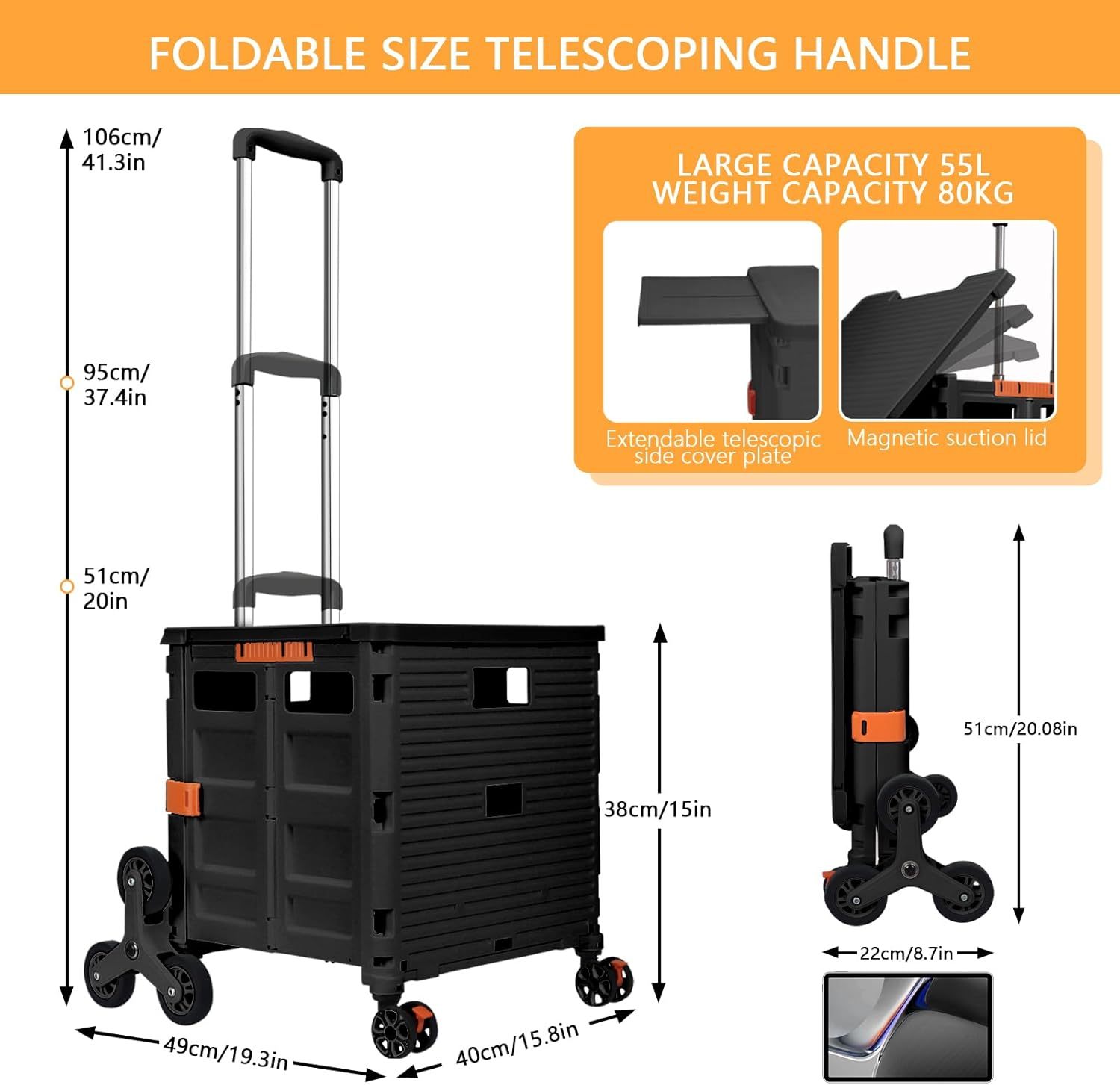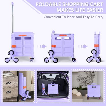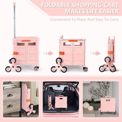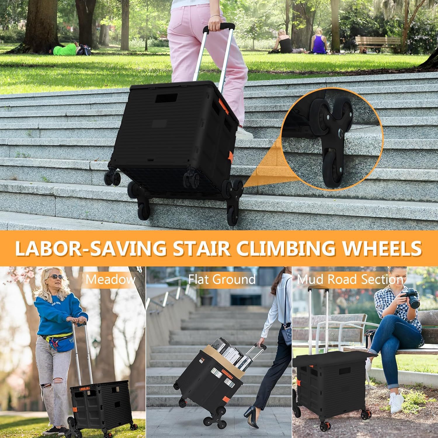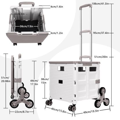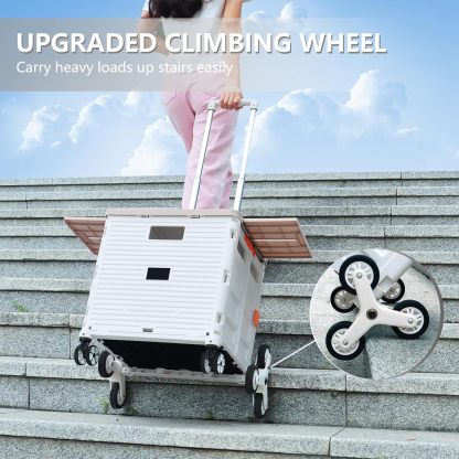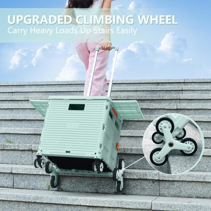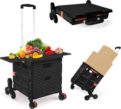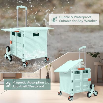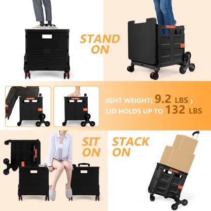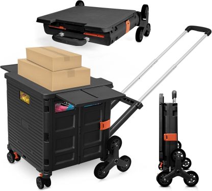 Carro plegable con ruedas de escalada de escalera, cajón plegable con tapa magnética, cubierta telescópica, mango telescópico, rueda giratoria de 360° para profesores, compras, comestibles en movimiento (negro)