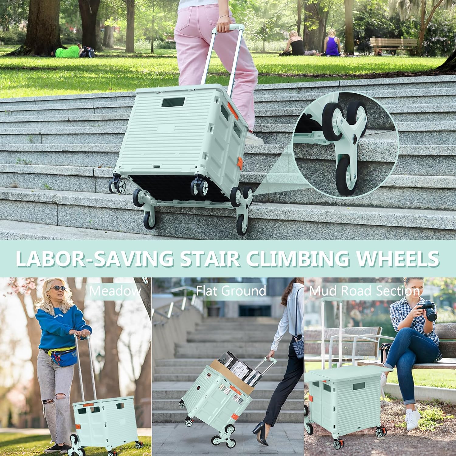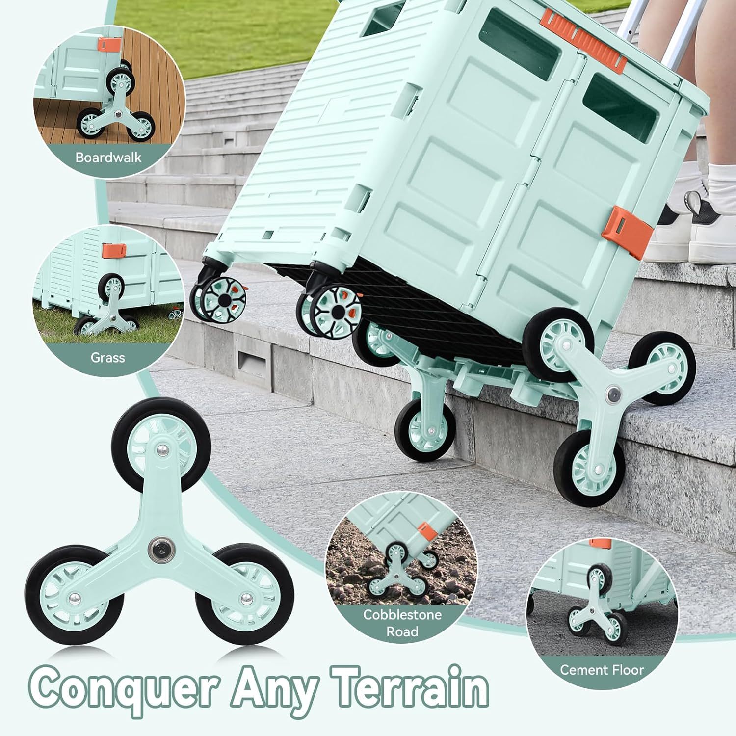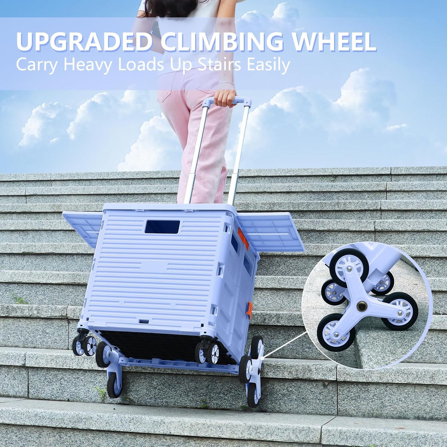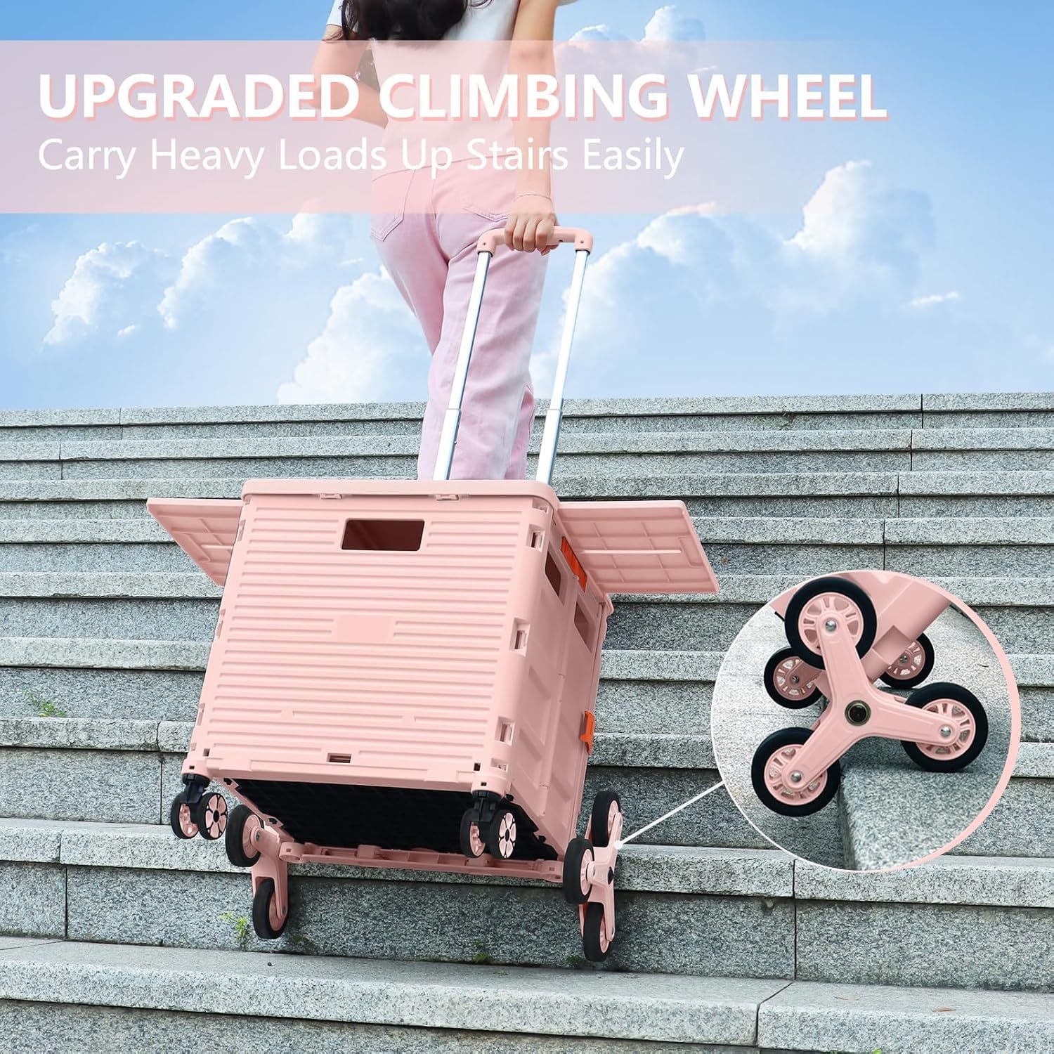 - Ruedas delanteras giratorias de 360° y ruedas de escalada de escalera: equipamos nuestro carrito plegable con 6 ruedas de escalada de escaleras y 2 ruedas giratorias sin ruido de 360° con frenos. Las ruedas de goma TPE mejoran la resistencia al desgaste, lo que te permite experimentar una maniobrabilidad óptima, por lo que es más fácil llevar cargas pesadas hasta escaleras y girar y cambiar fácilmente de dirección en cualquier golpe.