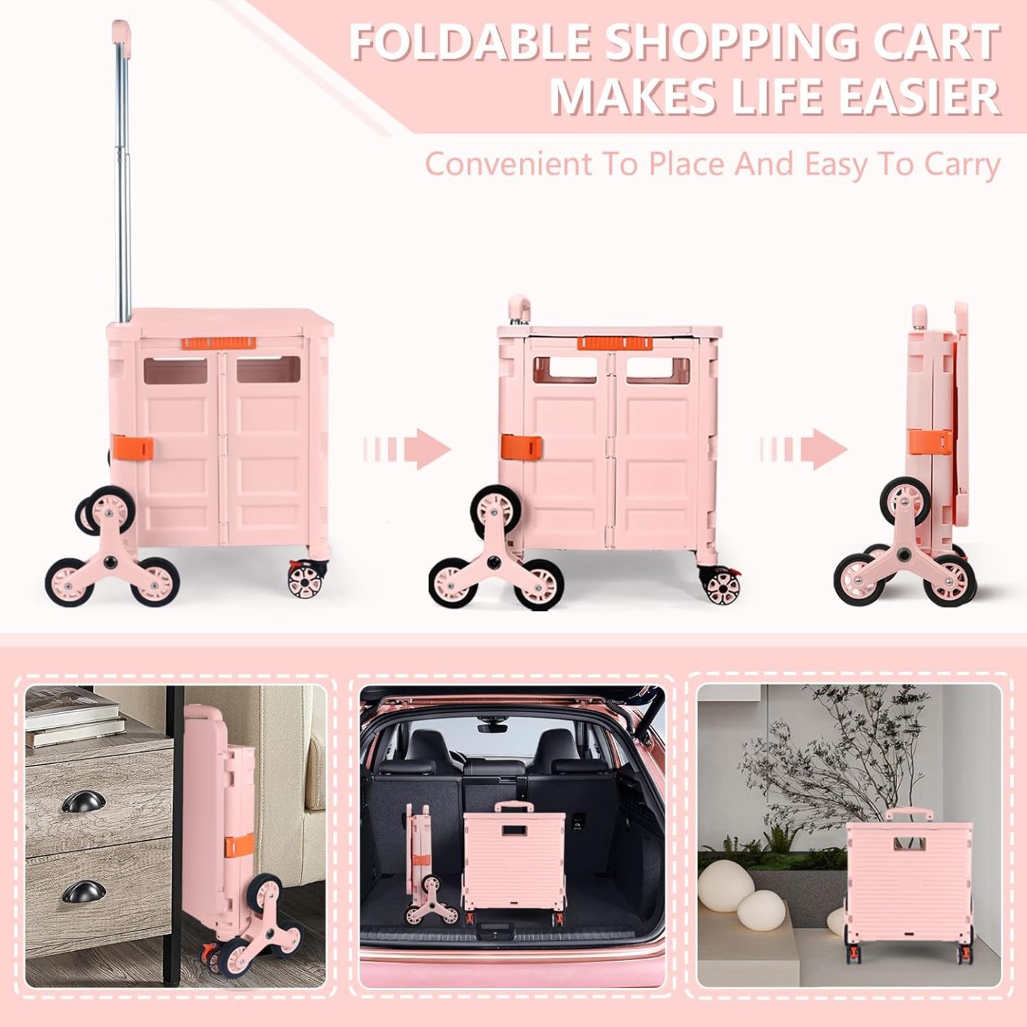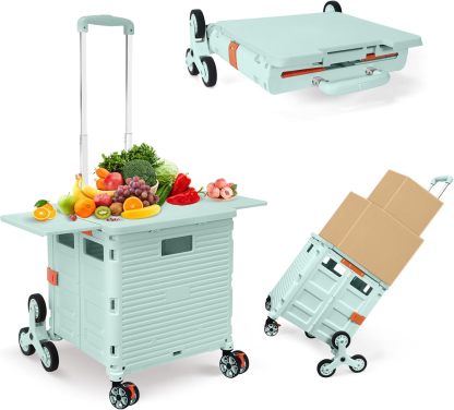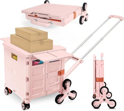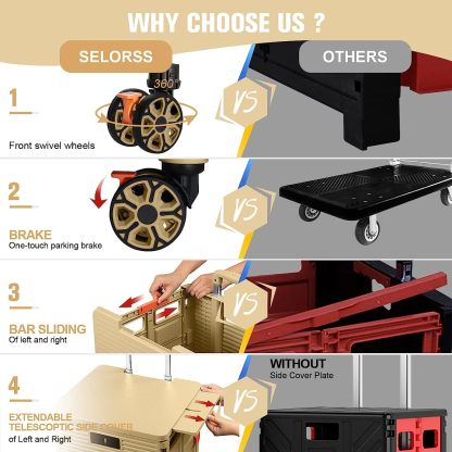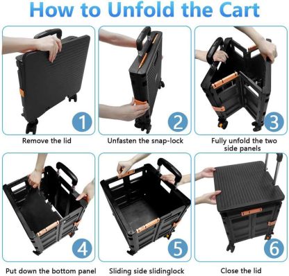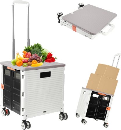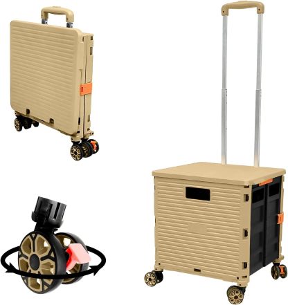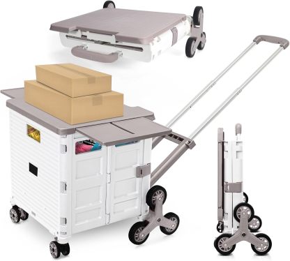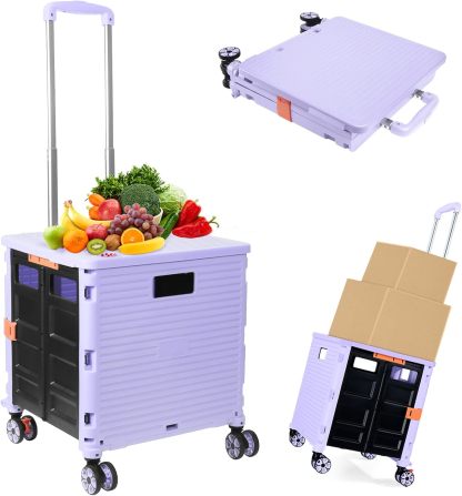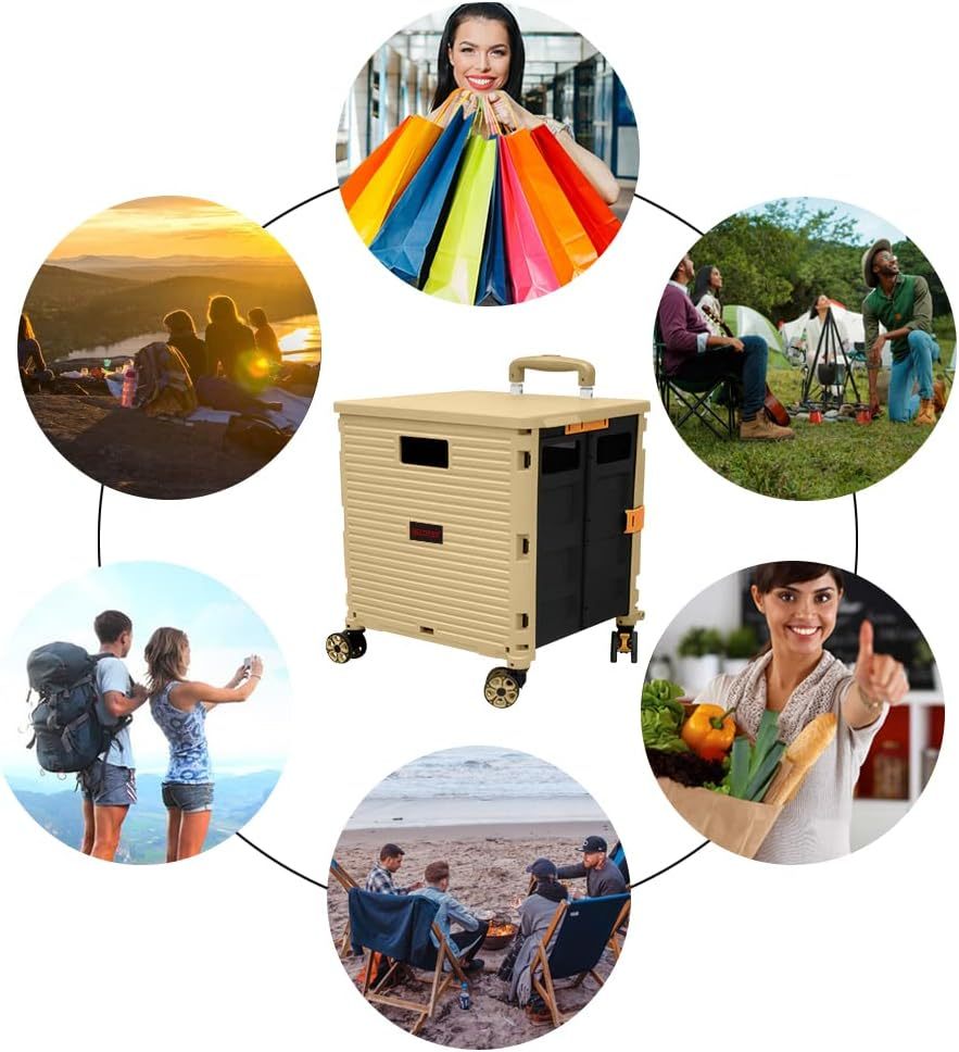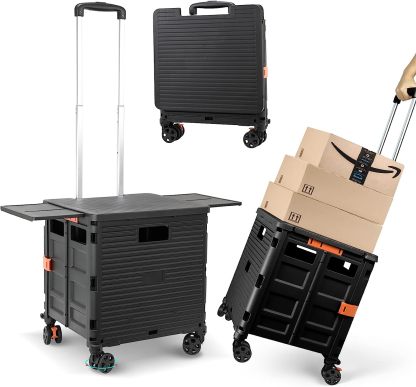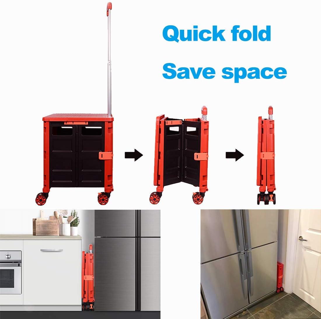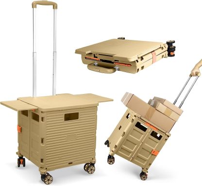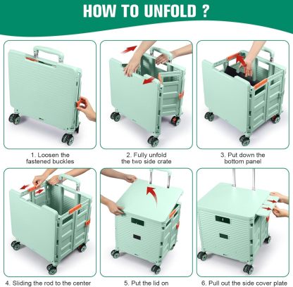 - 【Instala y pliega con facilidad】El diseño portátil hace que el carrito sea fácil de plegar y montar en cuestión de segundos, doblado con un pestillo para mantenerlo cerrado. Mejor más, se puede plegar a 15 x 3 x 20 pulgadas. y peso ligero (9 libras). Simplemente guárdelo en el maletero, cochera, clóset, clóset o cualquier rincón de tu hogar.