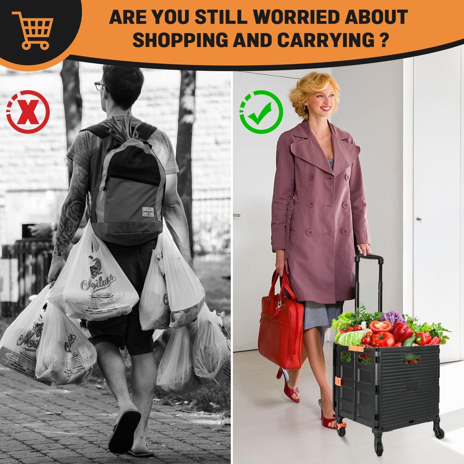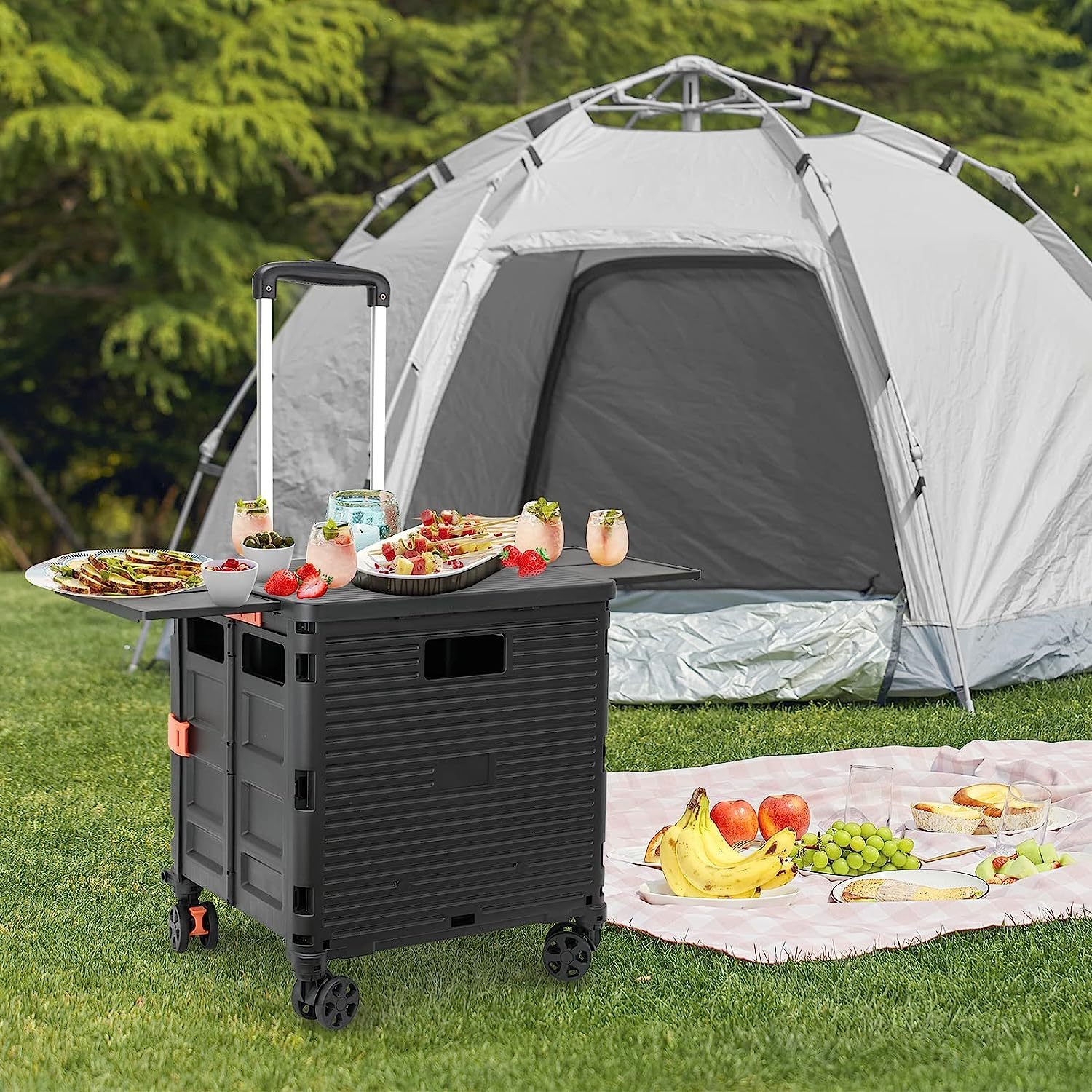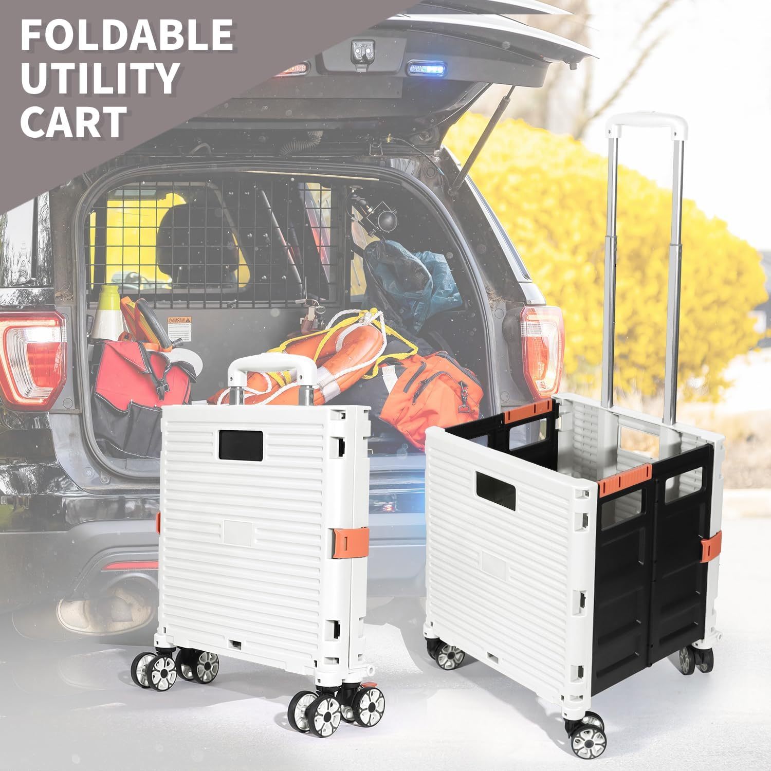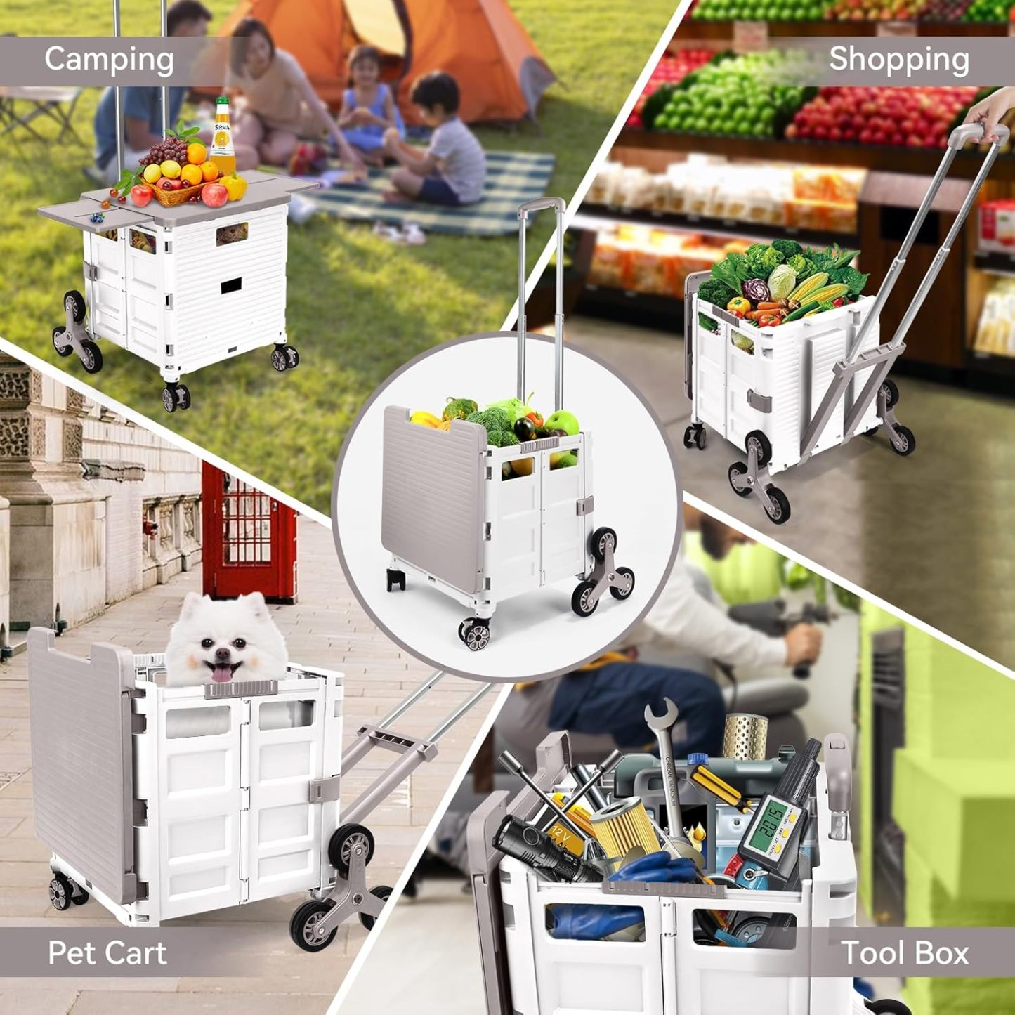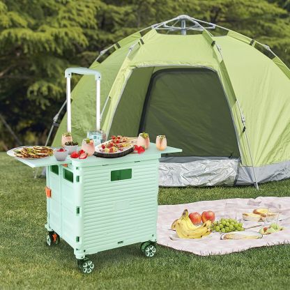 - 【Instala y pliega con facilidad】El diseño portátil hace que el carrito sea fácil de plegar y montar en cuestión de segundos, doblado con un pestillo para mantenerlo cerrado. Mejor más, se puede plegar a 15 x 3 x 20 pulgadas. y peso ligero (9 libras). Simplemente guárdelo en el maletero, cochera, clóset, clóset o cualquier rincón de tu hogar.
