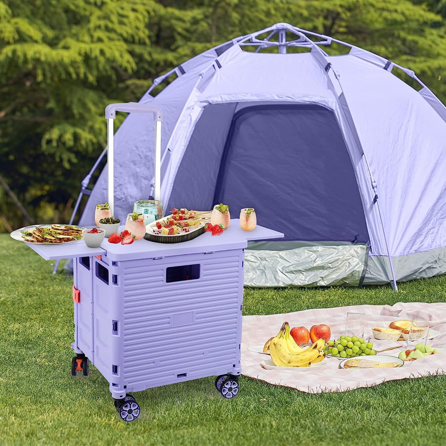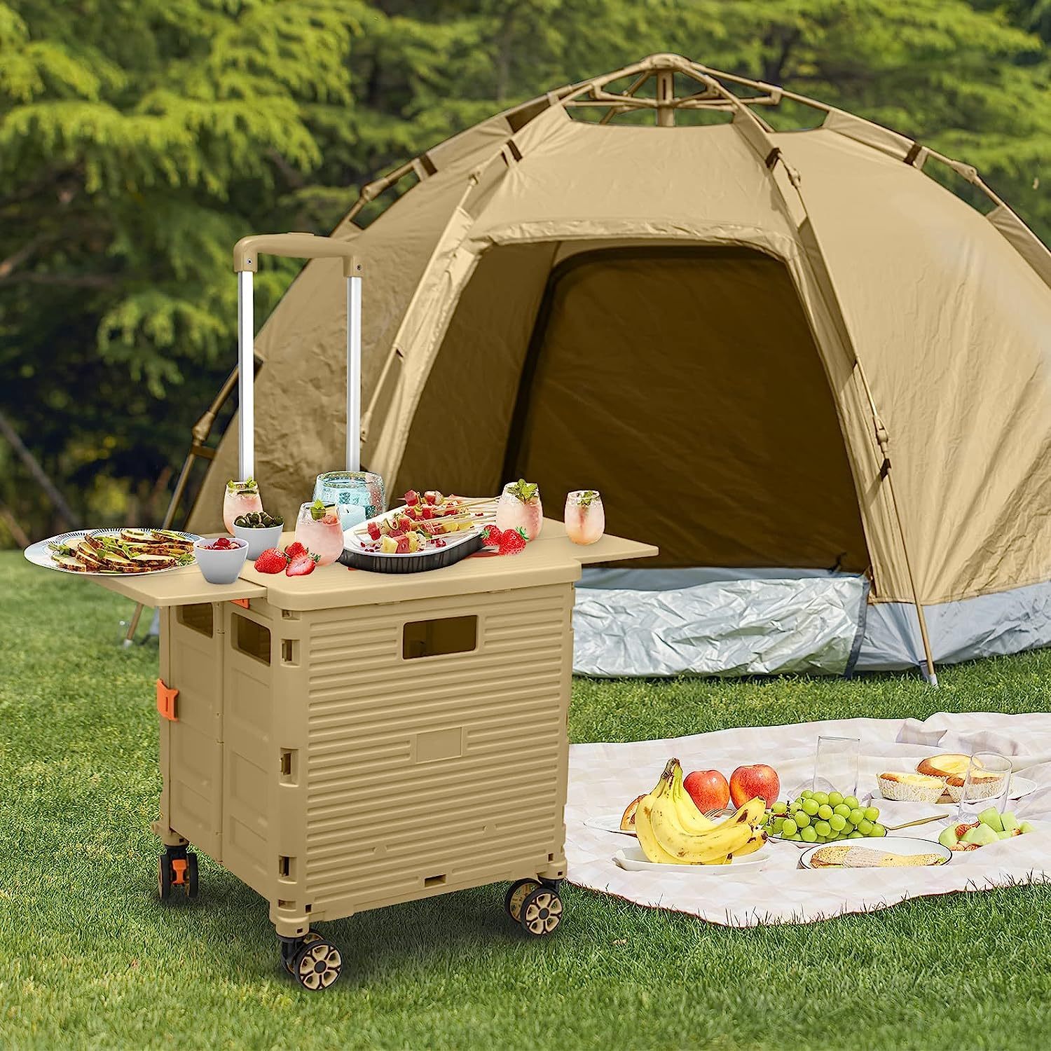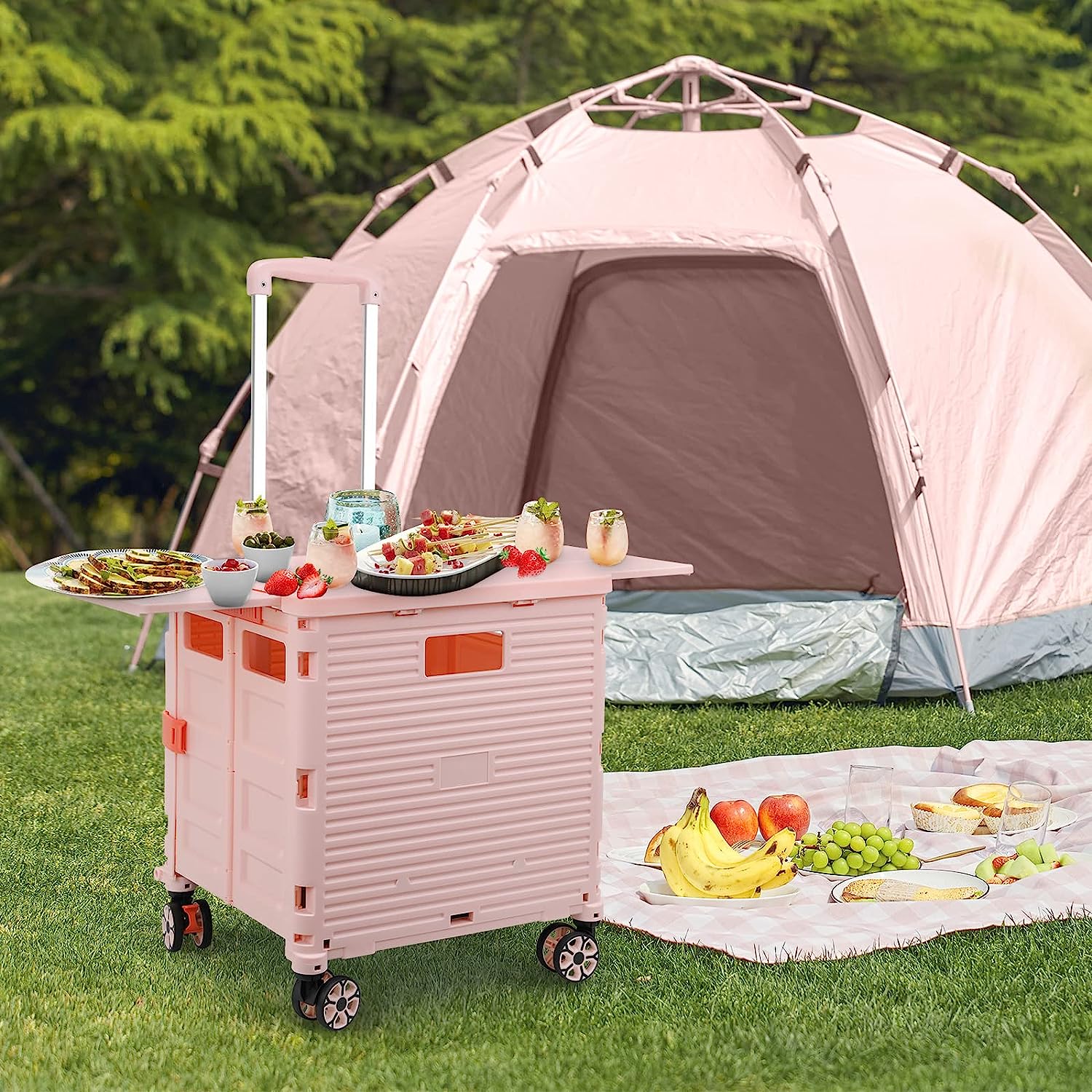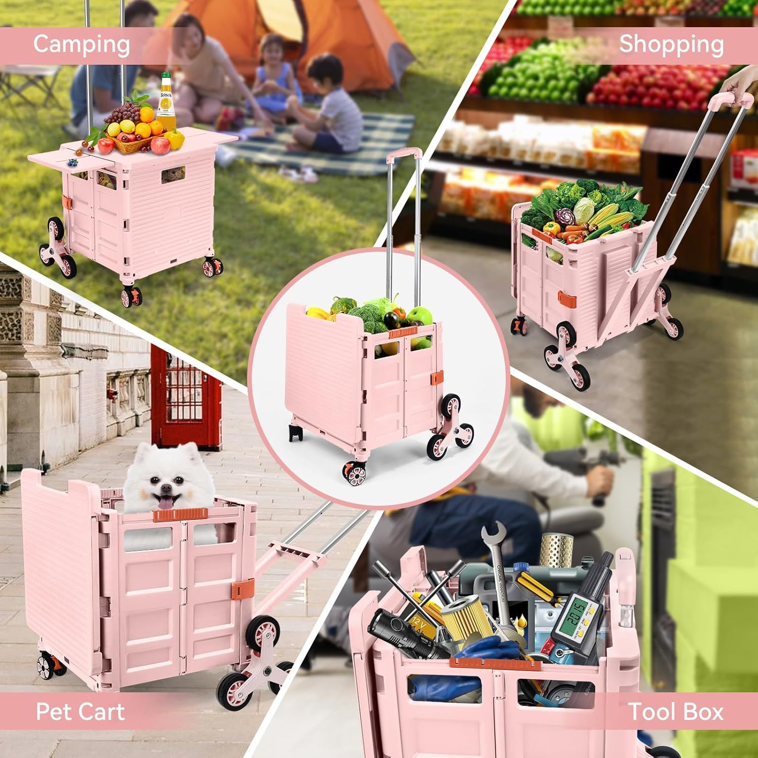 - 【Instala y pliega con facilidad】El diseño portátil hace que el carrito sea fácil de plegar y montar en cuestión de segundos, doblado con un pestillo para mantenerlo cerrado. Mejor más, se puede plegar a 15 x 3 x 20 pulgadas. y peso ligero (9 libras). Simplemente guárdelo en el maletero, cochera, clóset, clóset o cualquier rincón de tu hogar.